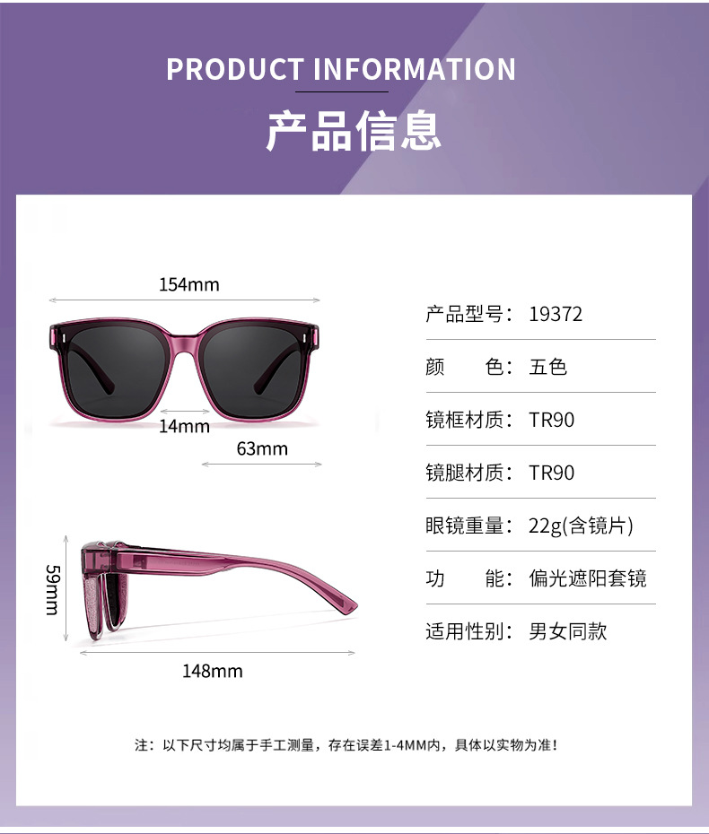 2025 여성용 세련된 편광 선글라스, 고급 19372 남성용 자외선 방지 선글라스 근시 세트 도매