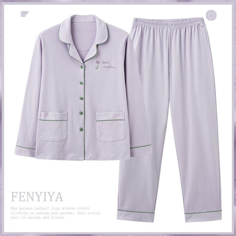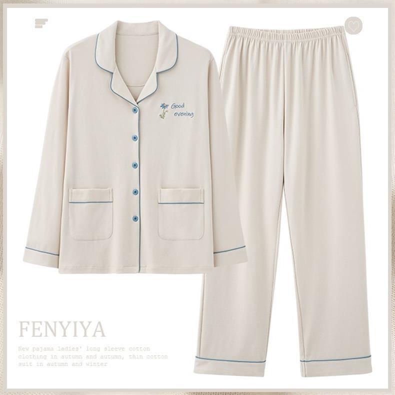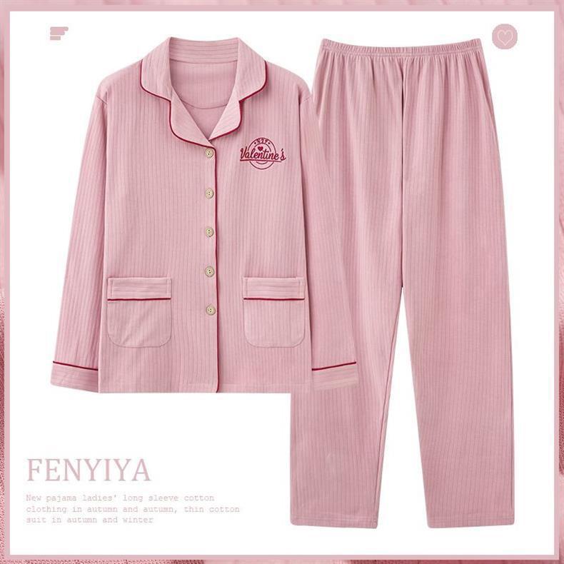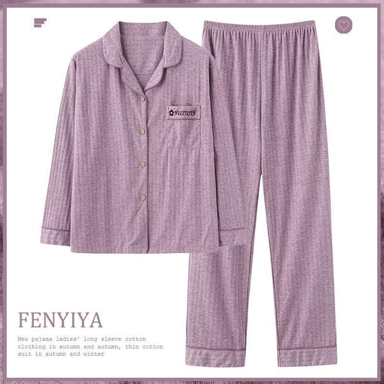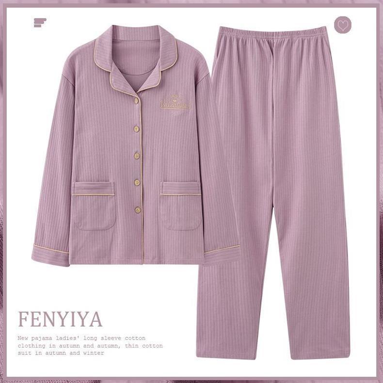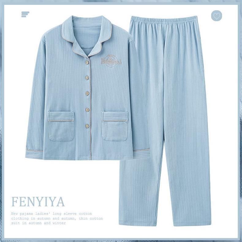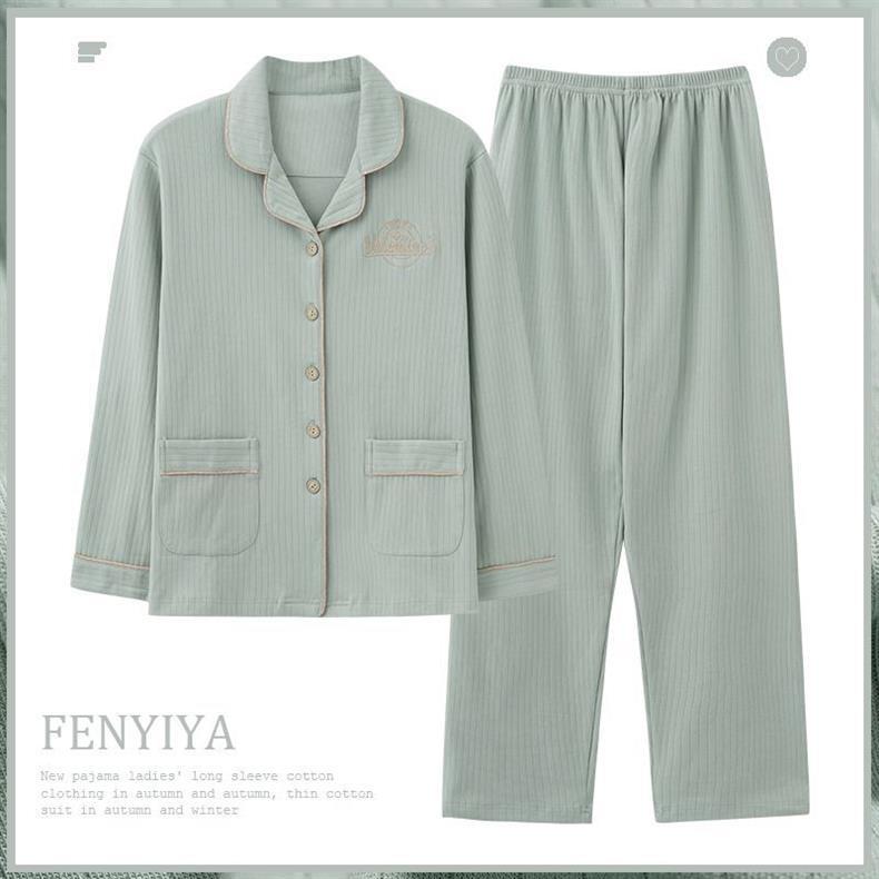 중년 · 노인 엄마 잠옷 여성 봄 · 가을 긴팔 얇은 플러스 사이즈 카디건 홈웨어 세트