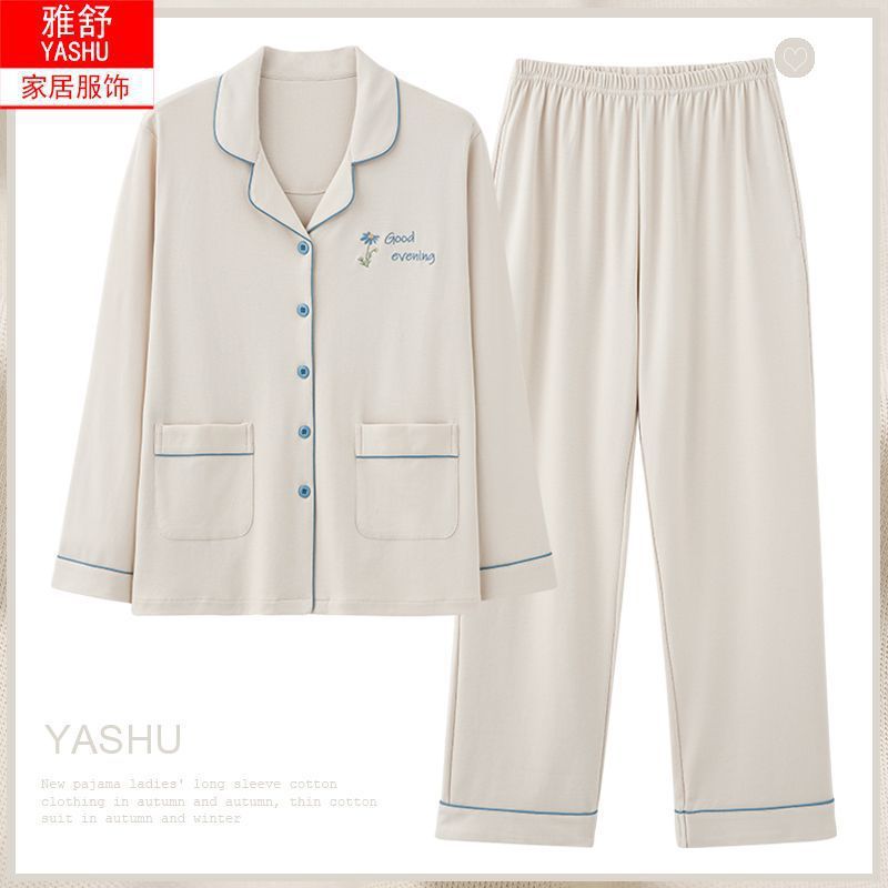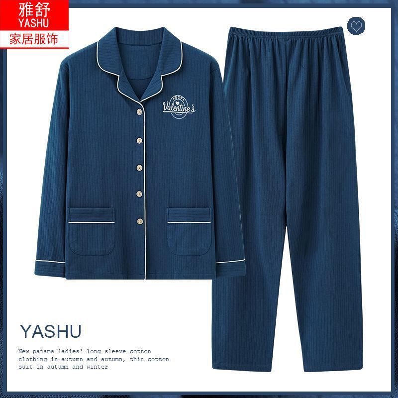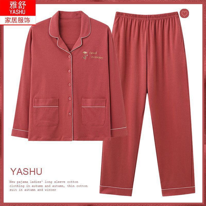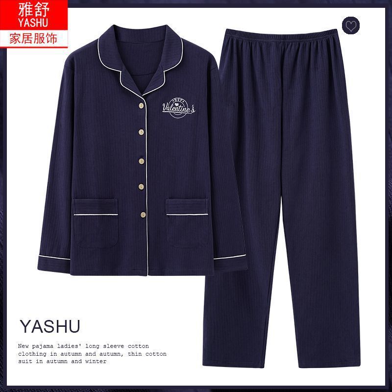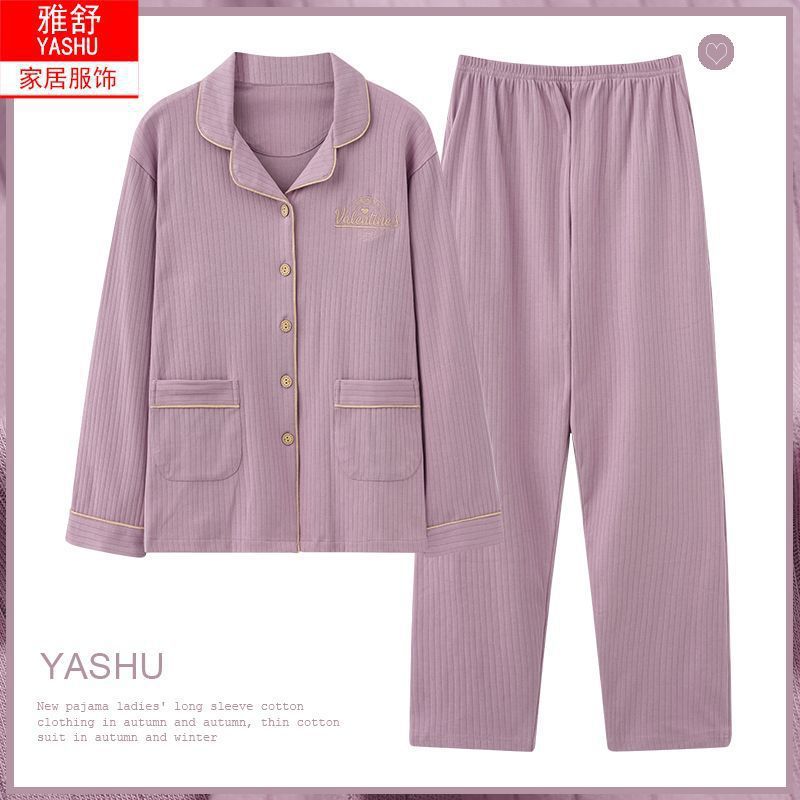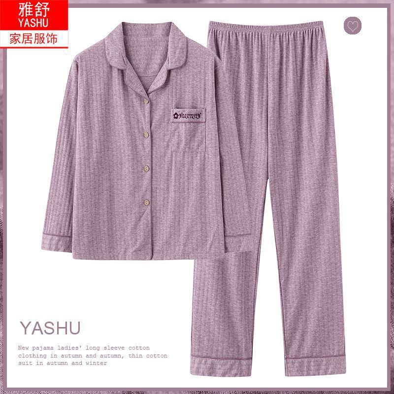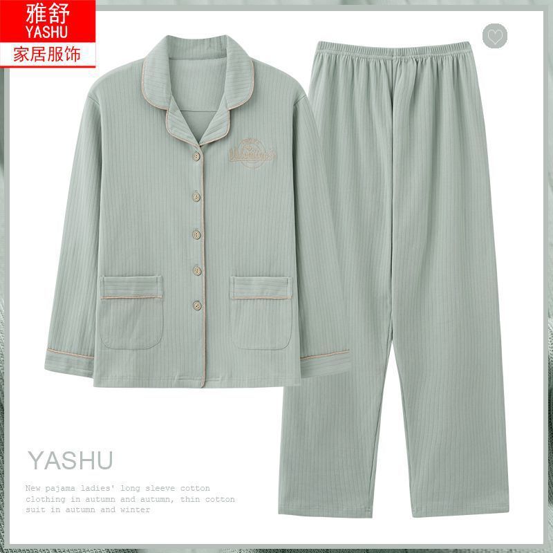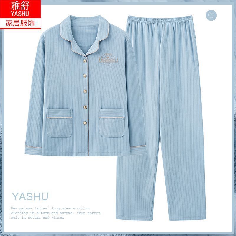 중년 · 노인 엄마 잠옷 여성 봄 · 가을 긴팔 얇은 플러스 사이즈 카디건 홈웨어 세트스토어 가기