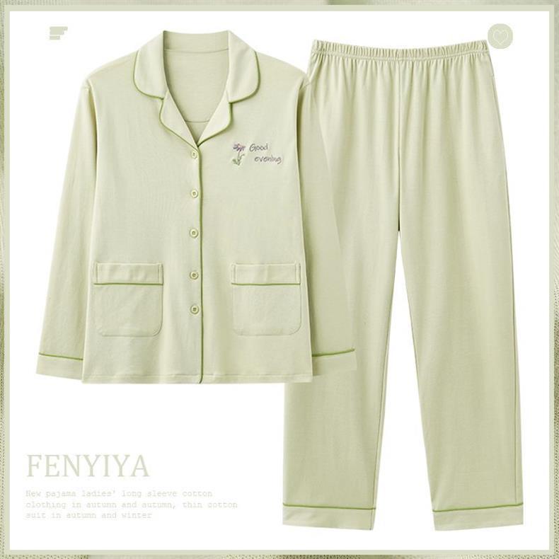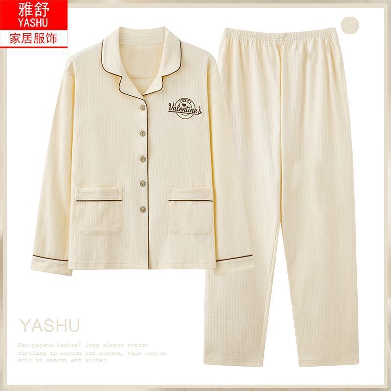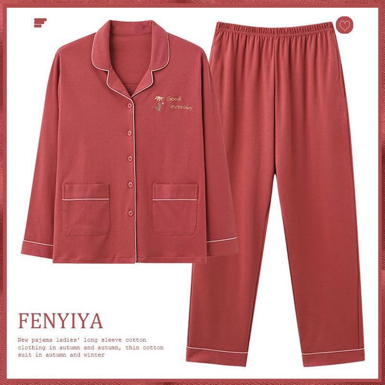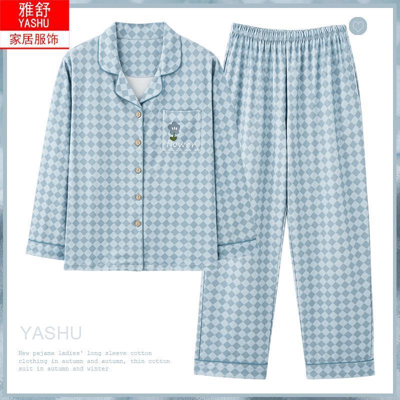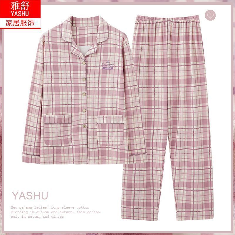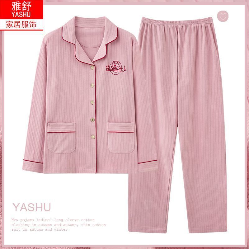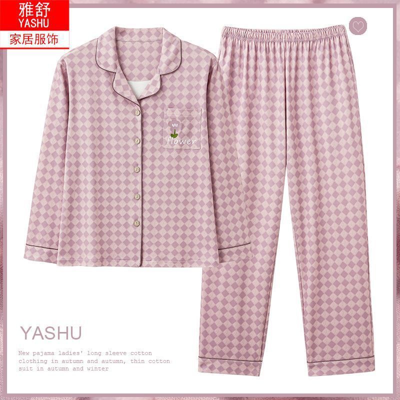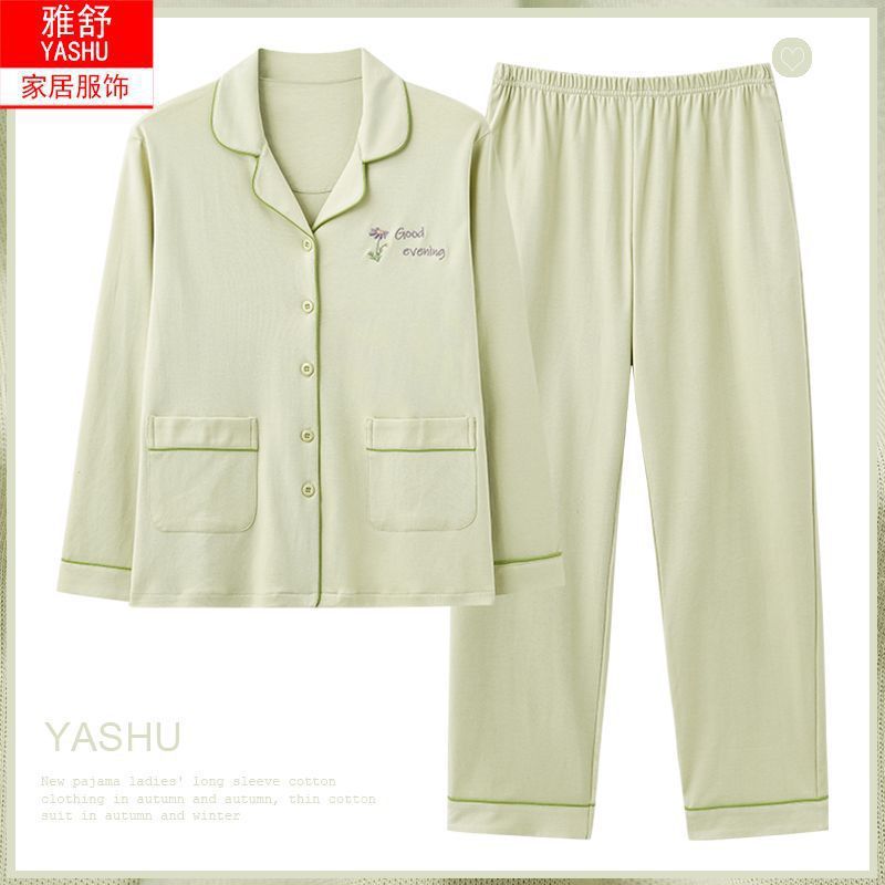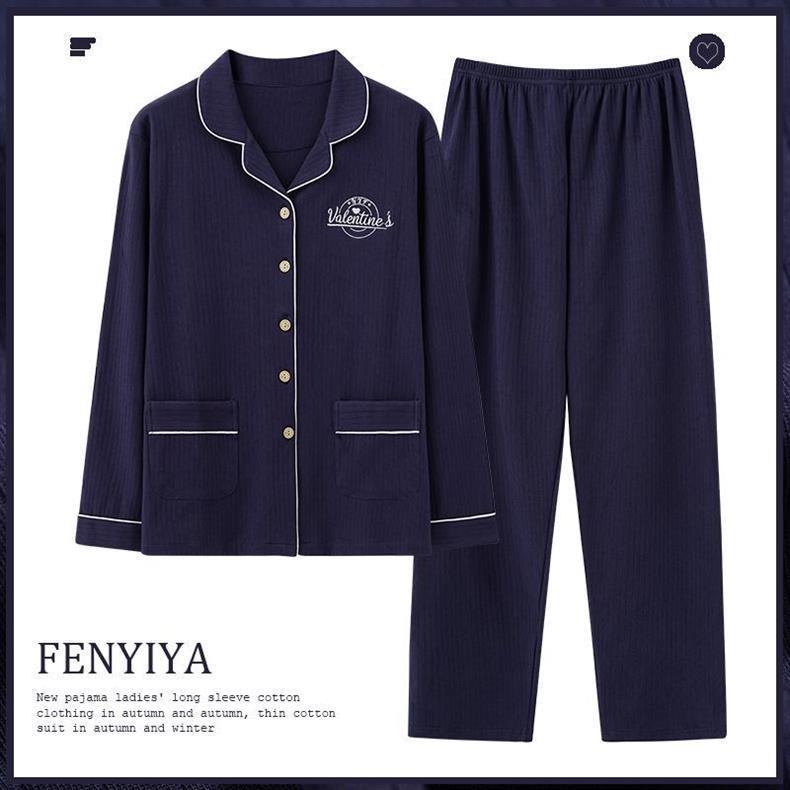 중년 · 노인 엄마 잠옷 여성 봄 · 가을 긴팔 얇은 플러스 사이즈 카디건 홈웨어 세트스토어 가기