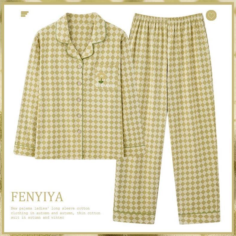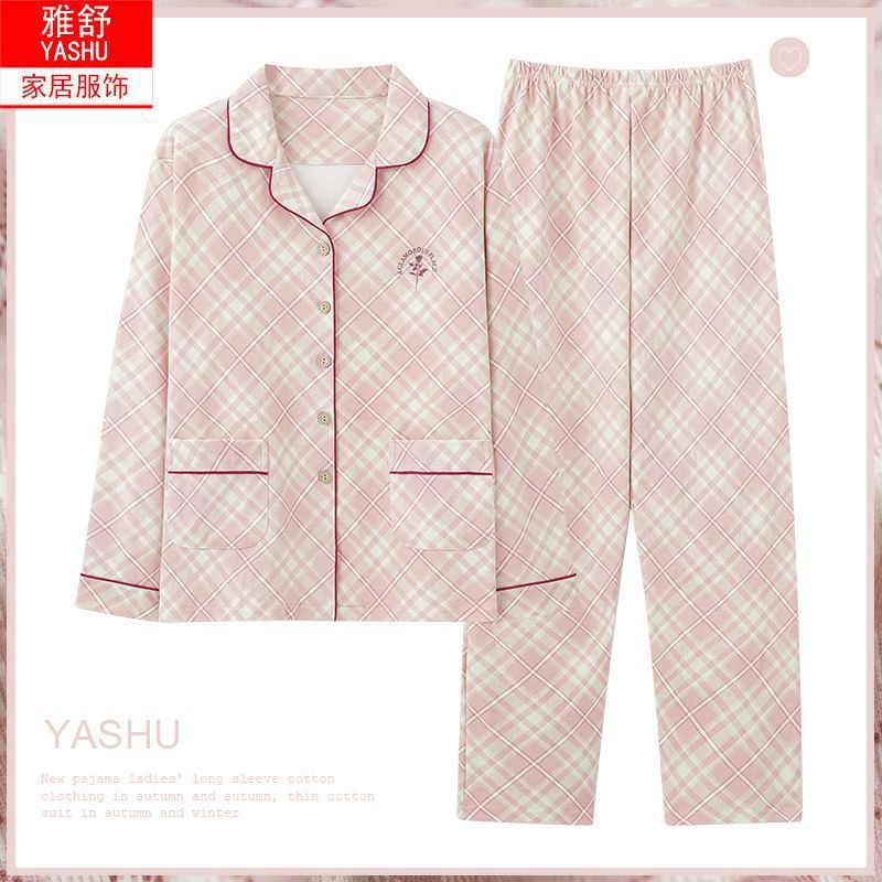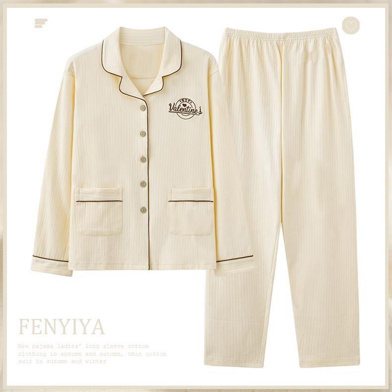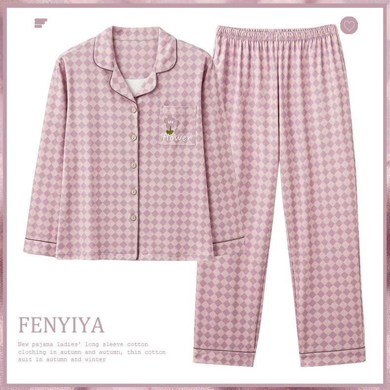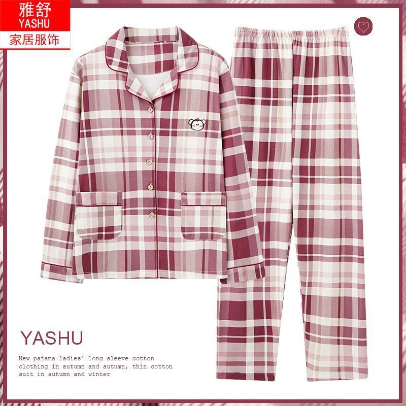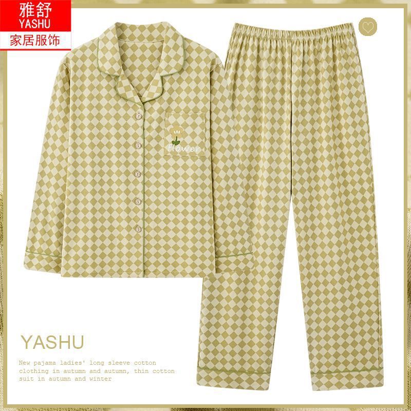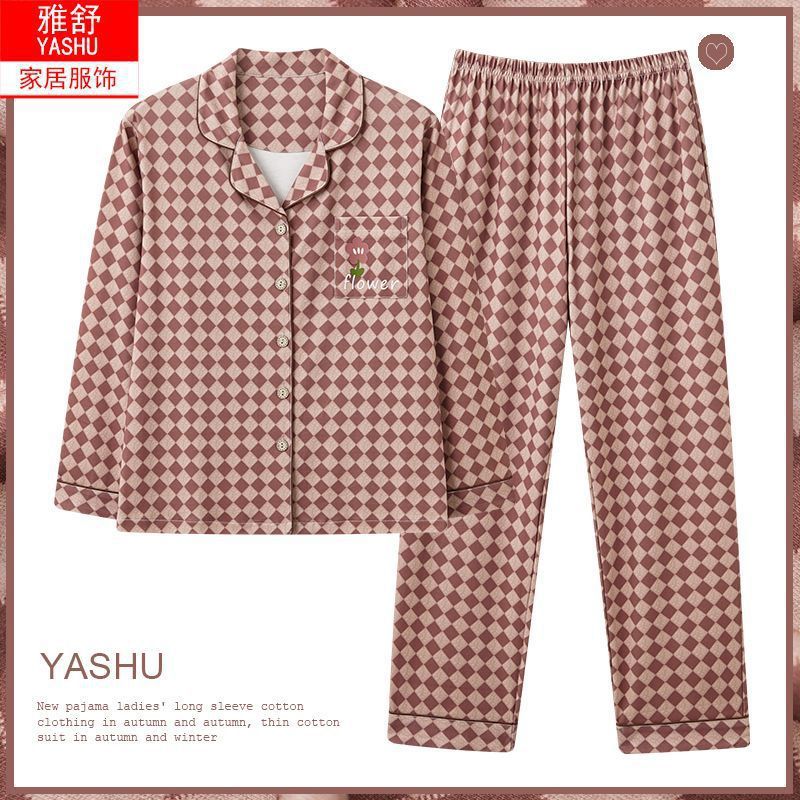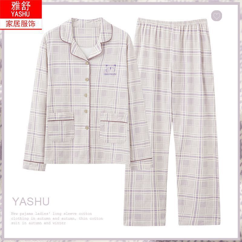 중년 · 노인 엄마 잠옷 여성 봄 · 가을 긴팔 얇은 플러스 사이즈 카디건 홈웨어 세트스토어 가기