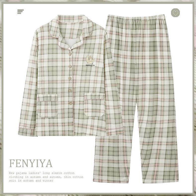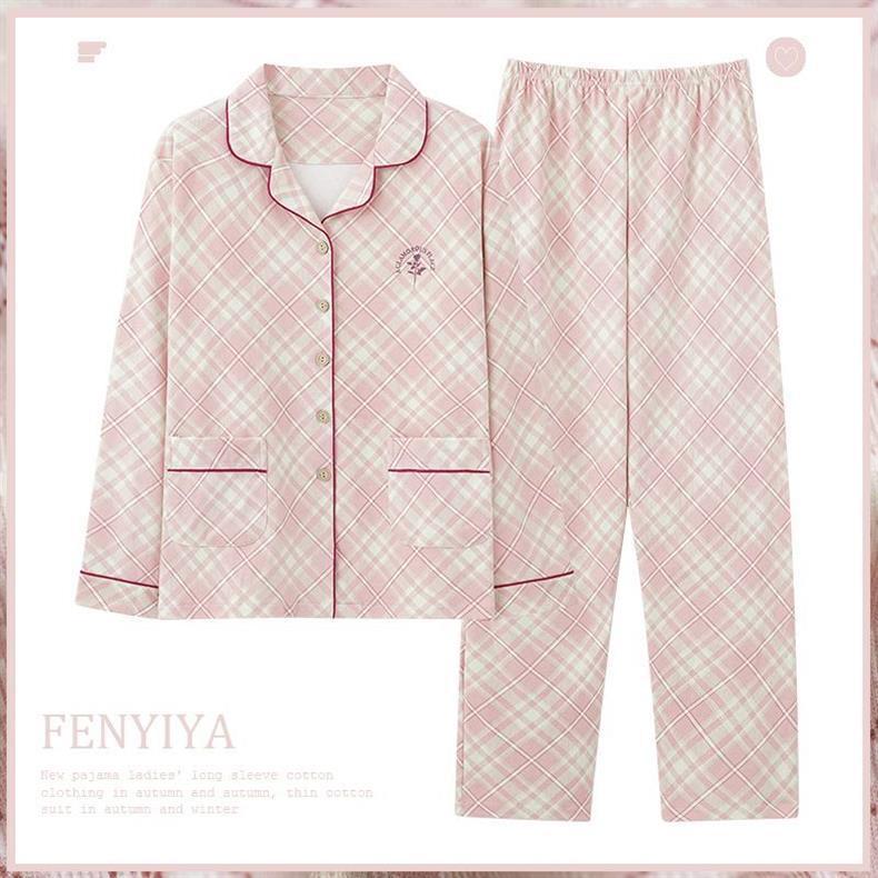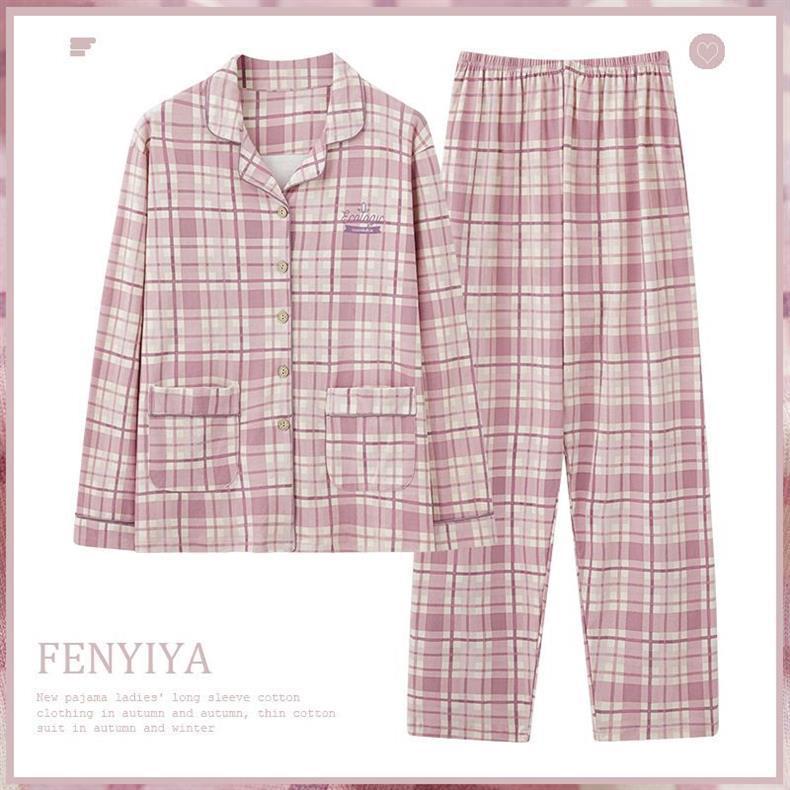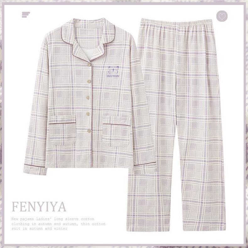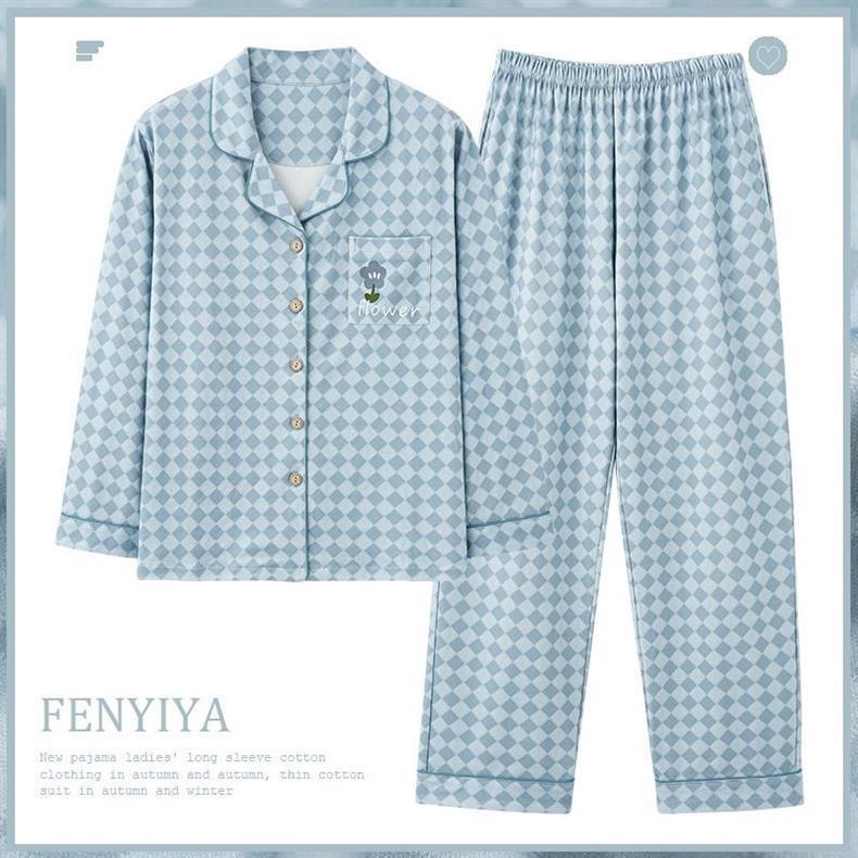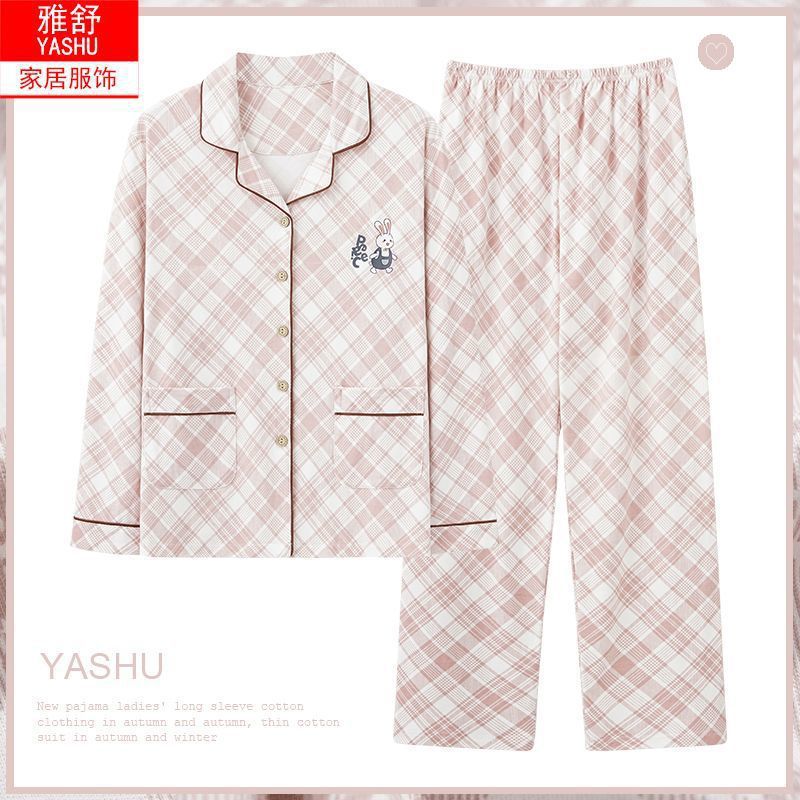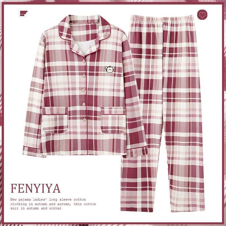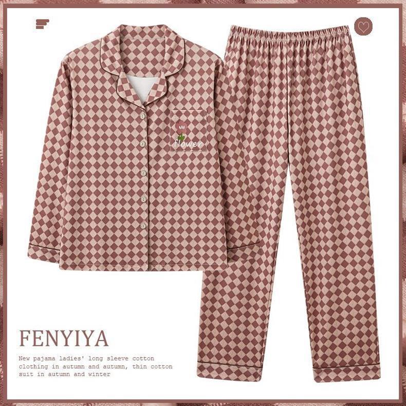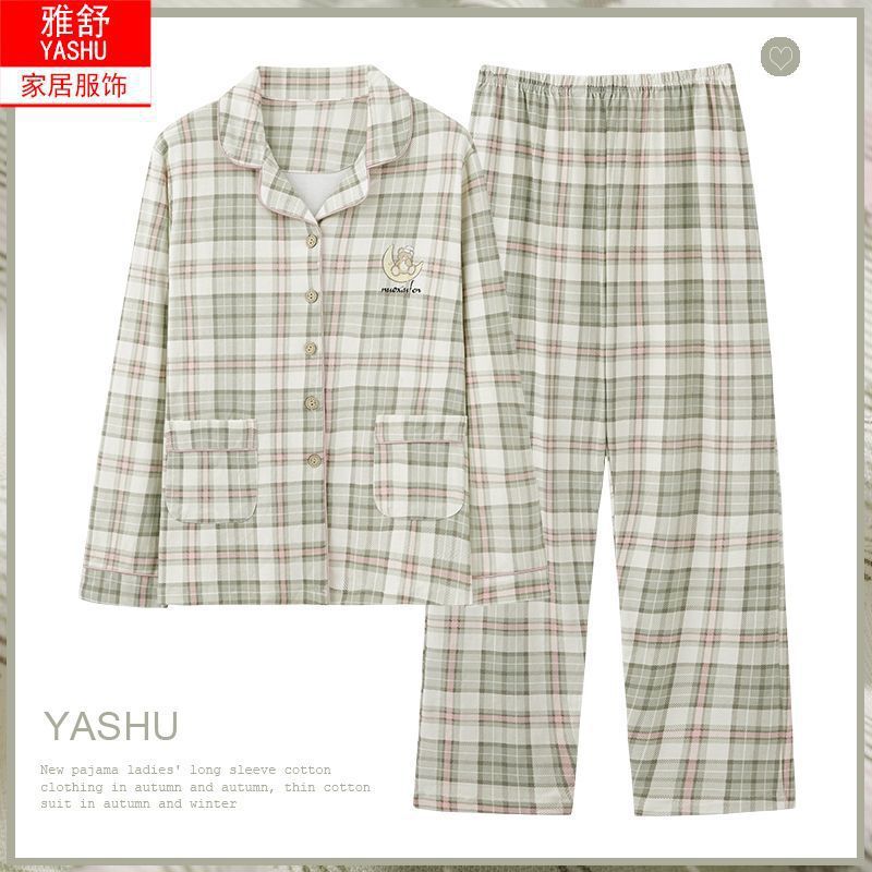 중년 · 노인 엄마 잠옷 여성 봄 · 가을 긴팔 얇은 플러스 사이즈 카디건 홈웨어 세트스토어 가기