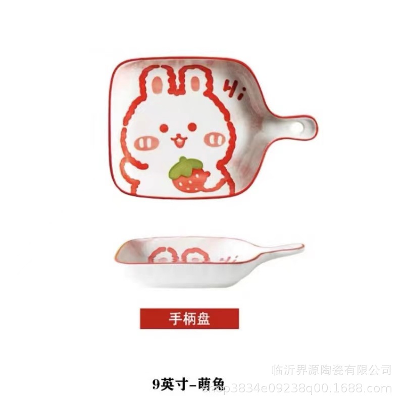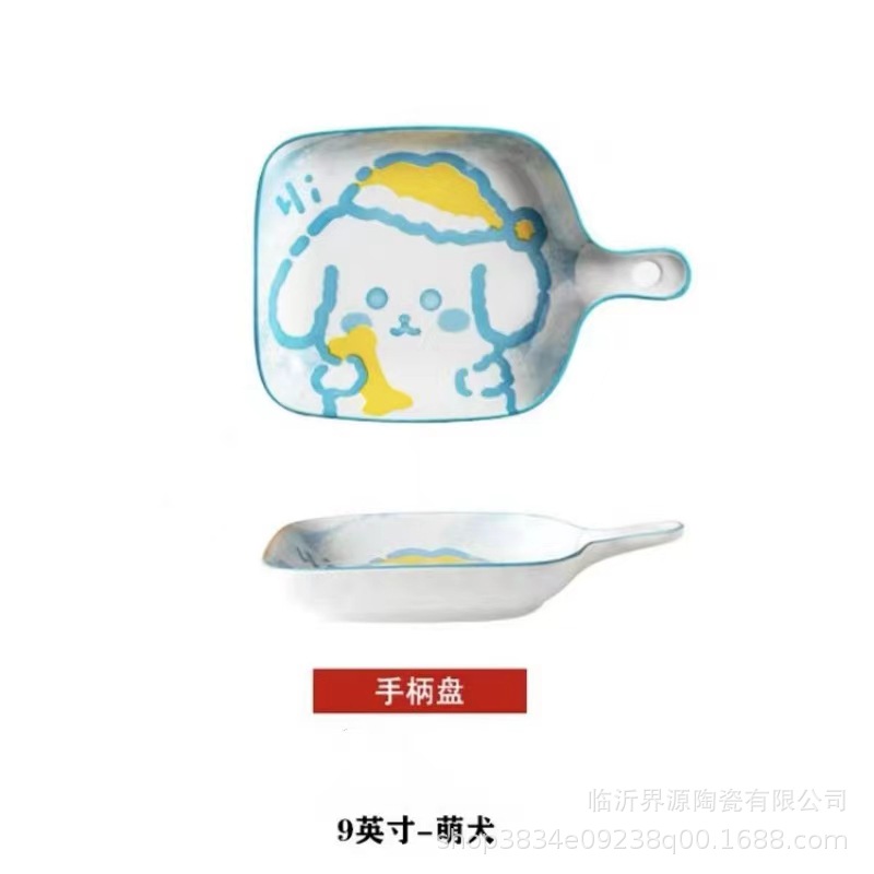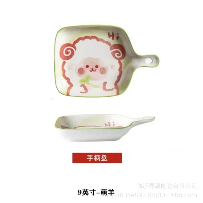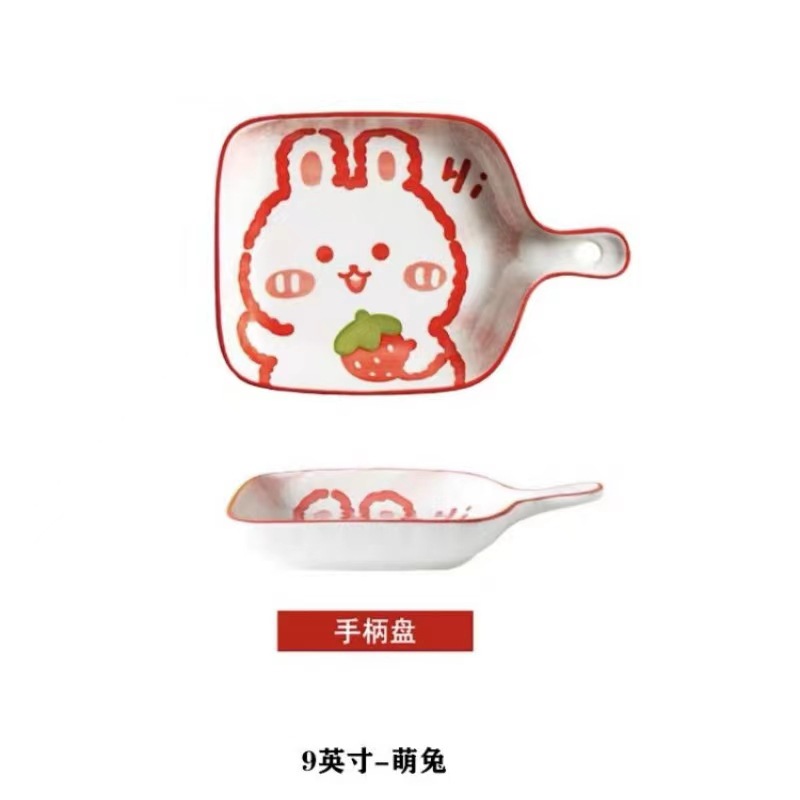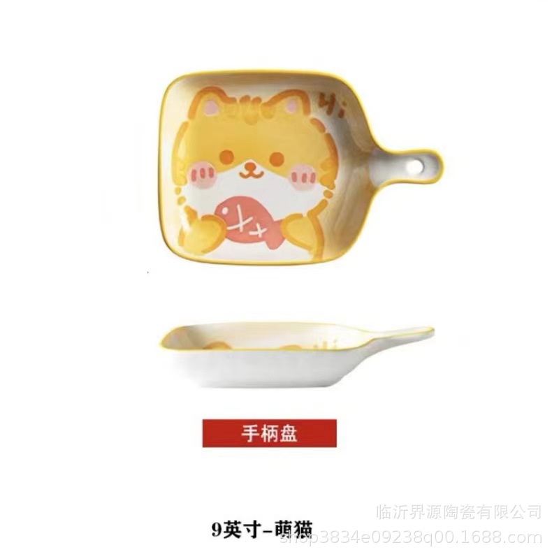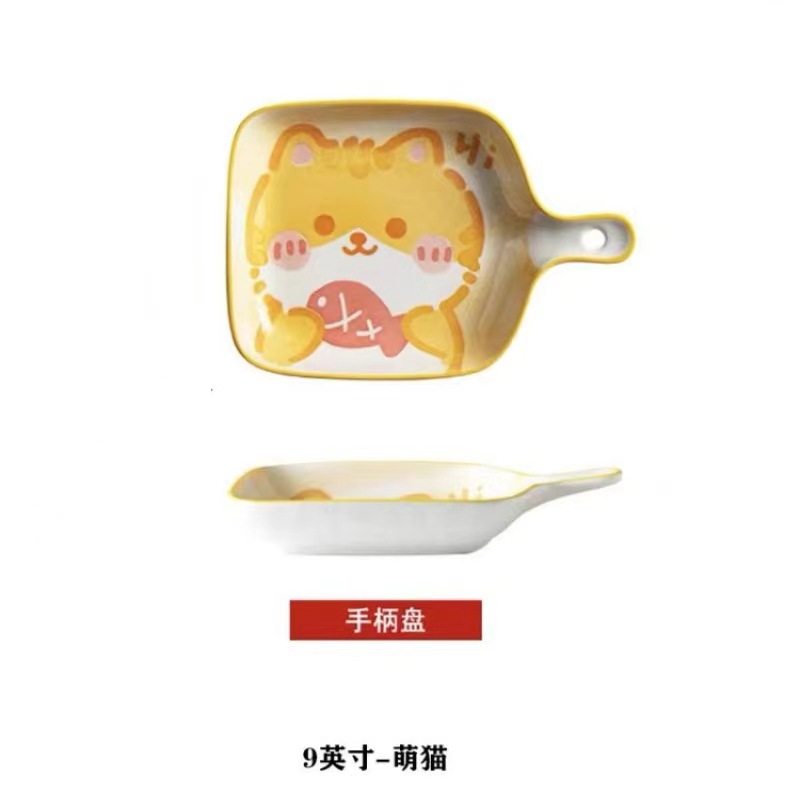 인기있는 북유럽 창조적 인 만화 싱글 핸들 플레이트 구운 쌀 접시 소시지 플레이트 과일 플레이트 전자 레인지 식기 세척기스토어 가기
