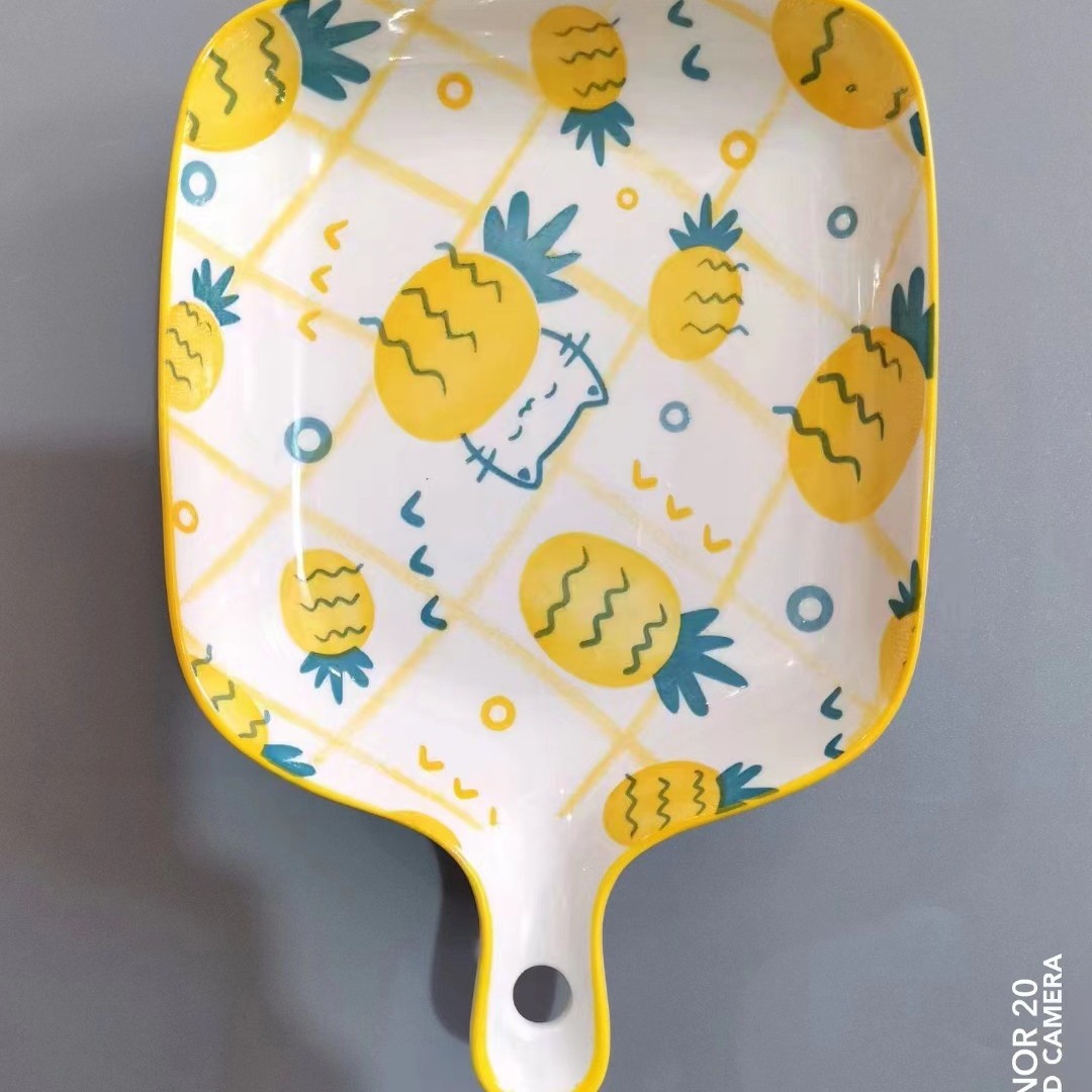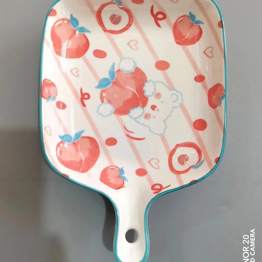 인기있는 북유럽 창조적 인 만화 싱글 핸들 플레이트 구운 쌀 접시 소시지 플레이트 과일 플레이트 전자 레인지 식기 세척기