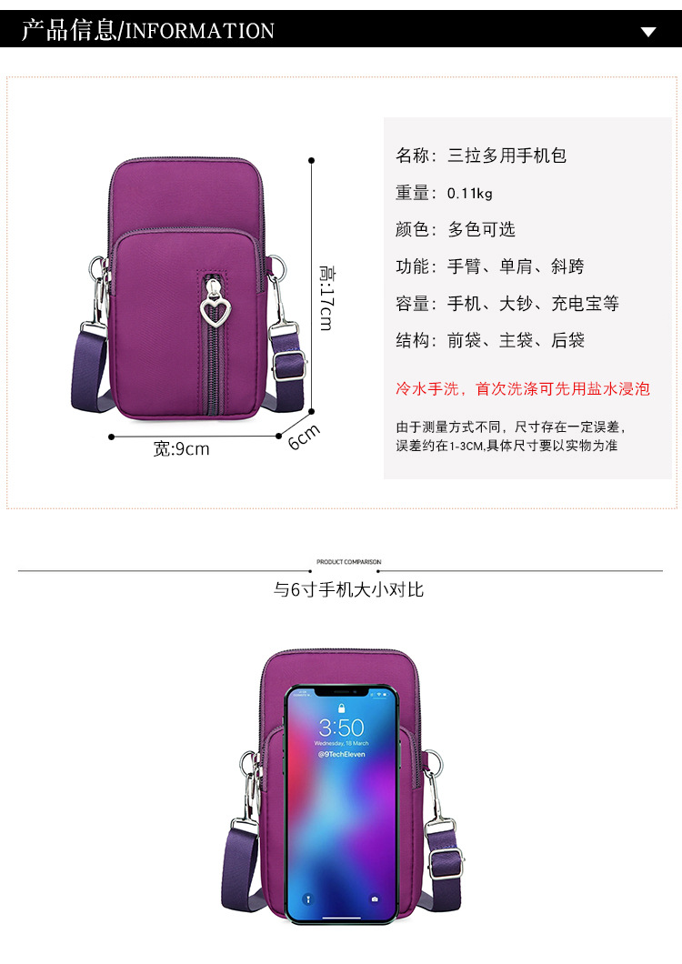 휴대 전화 가방 여성 메신저 가방 새로운 팔 가방 옥스포드 천 미니 가방 휴대 전화 가방 동전 지갑 손목 가방