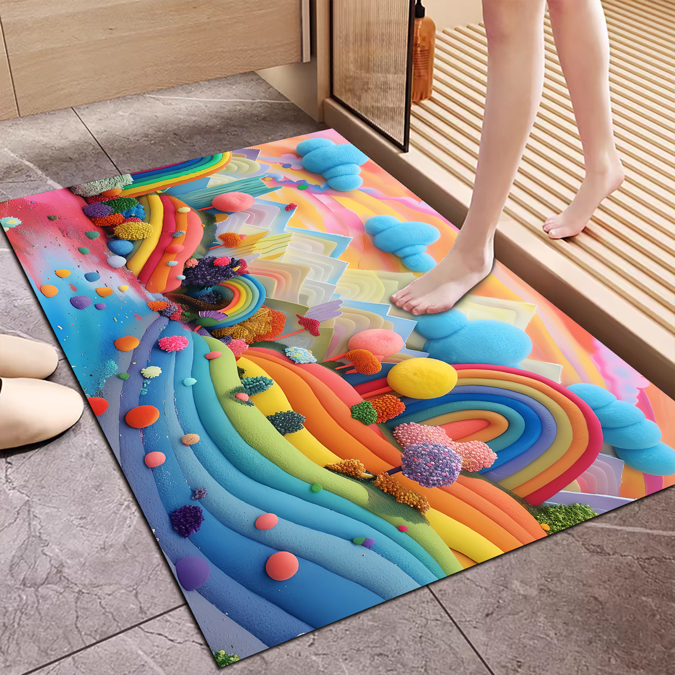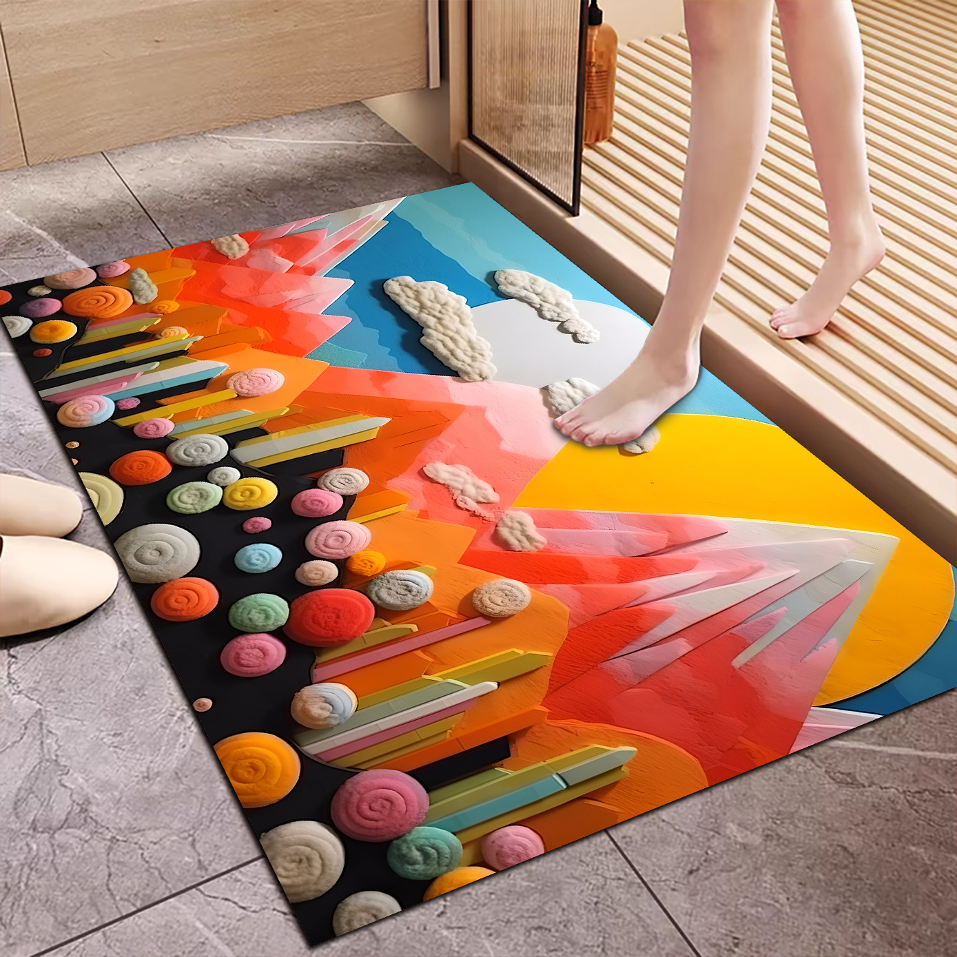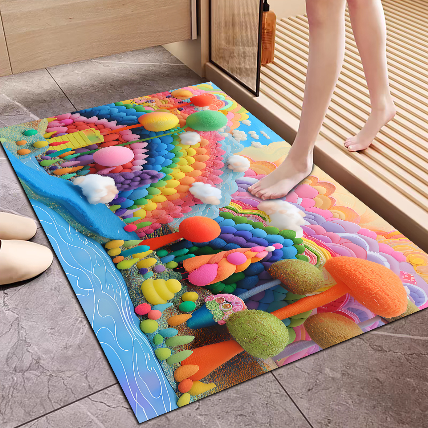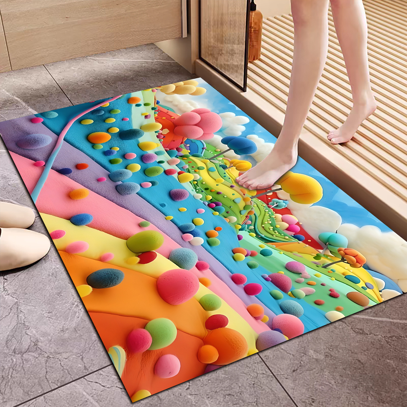 3D 입체 양모 공 규조토 진흙 바닥 매트 욕실 흡수성 미끄럼 방지 발 매트 기술 천 카펫 욕실 매트 레인보우