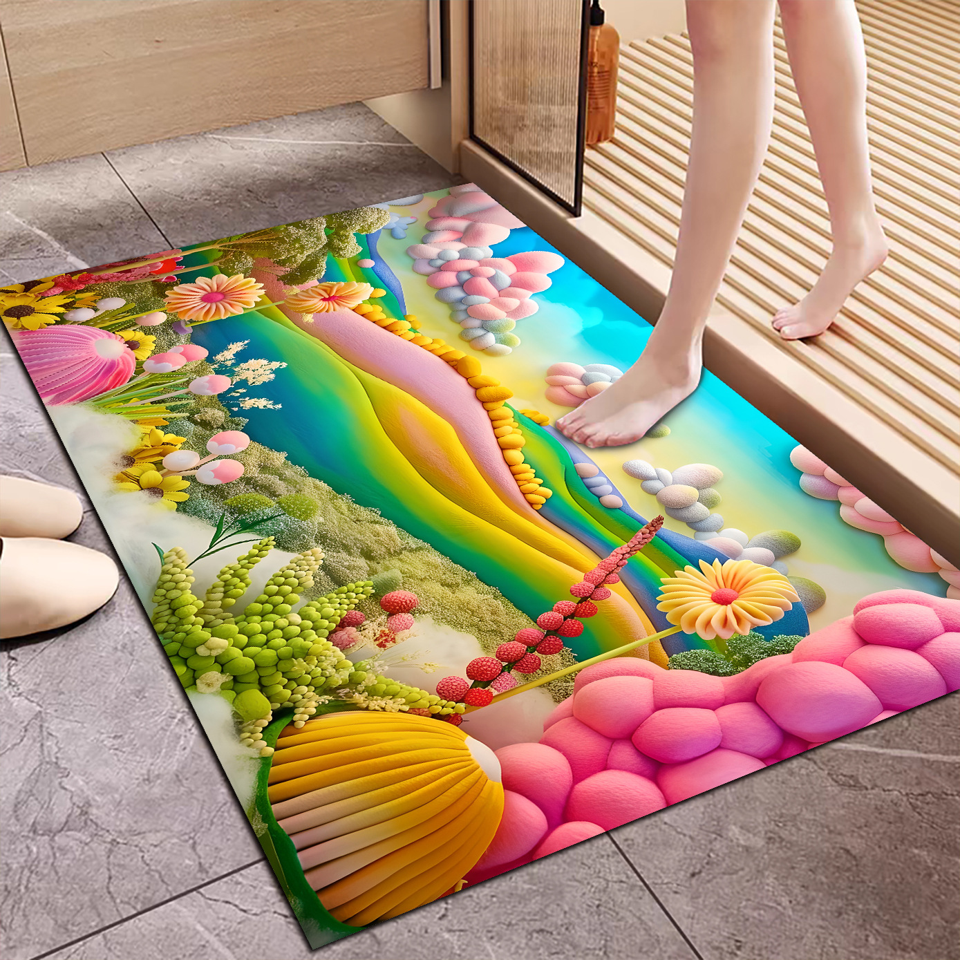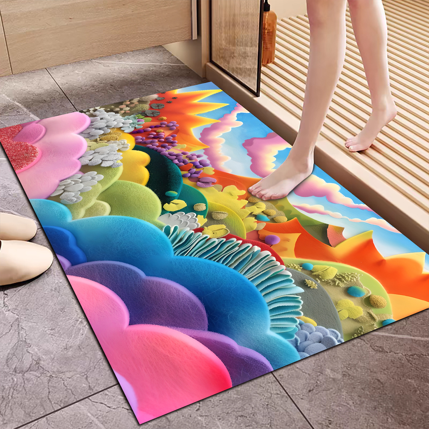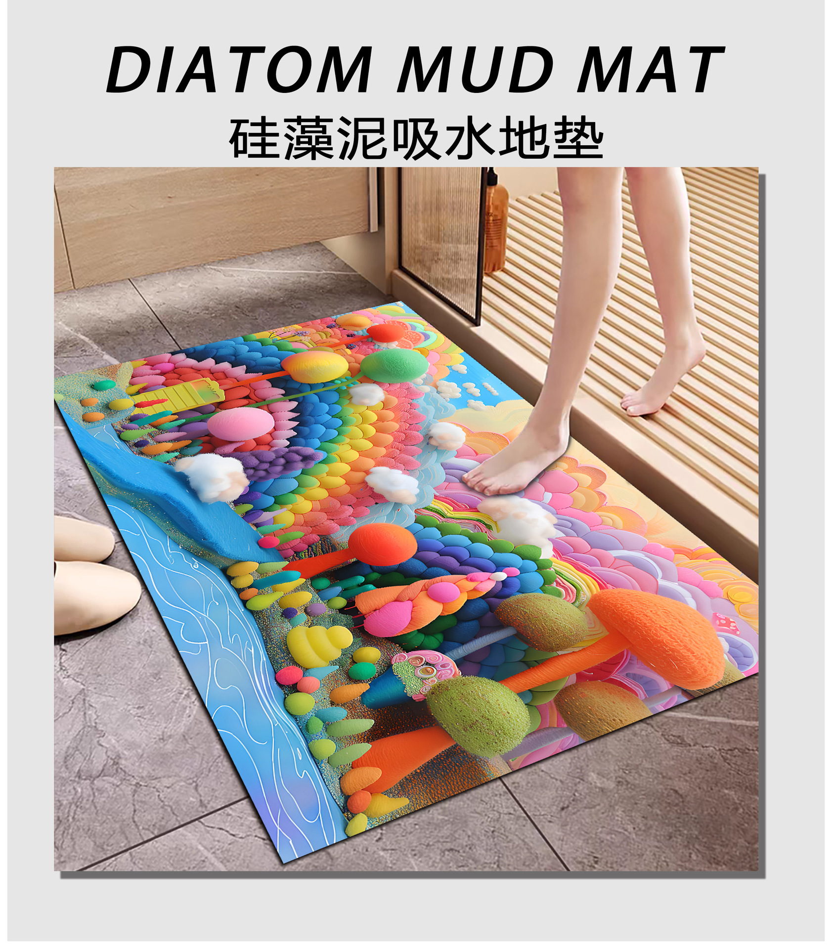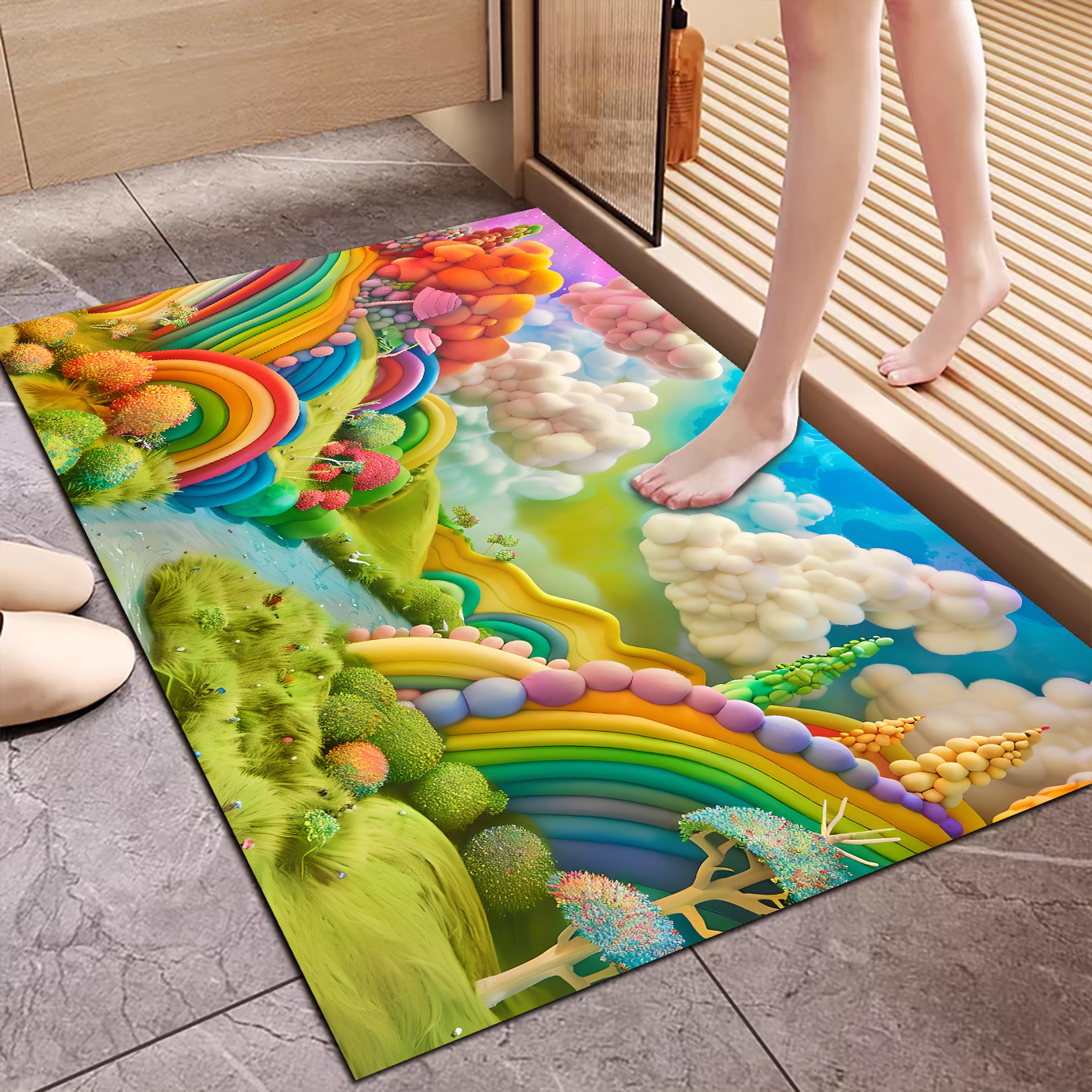 3D 입체 양모 공 규조토 진흙 바닥 매트 욕실 흡수성 미끄럼 방지 발 매트 기술 천 카펫 욕실 매트 레인보우