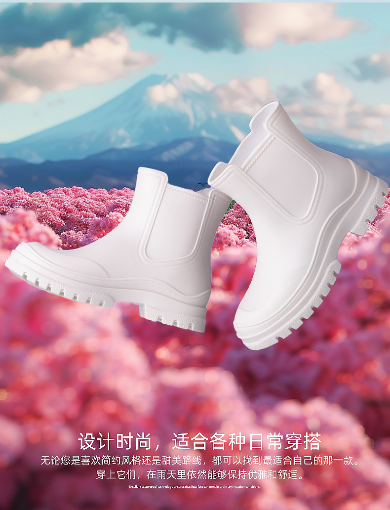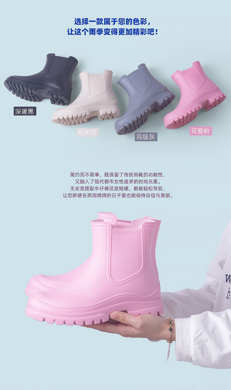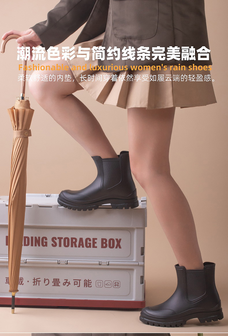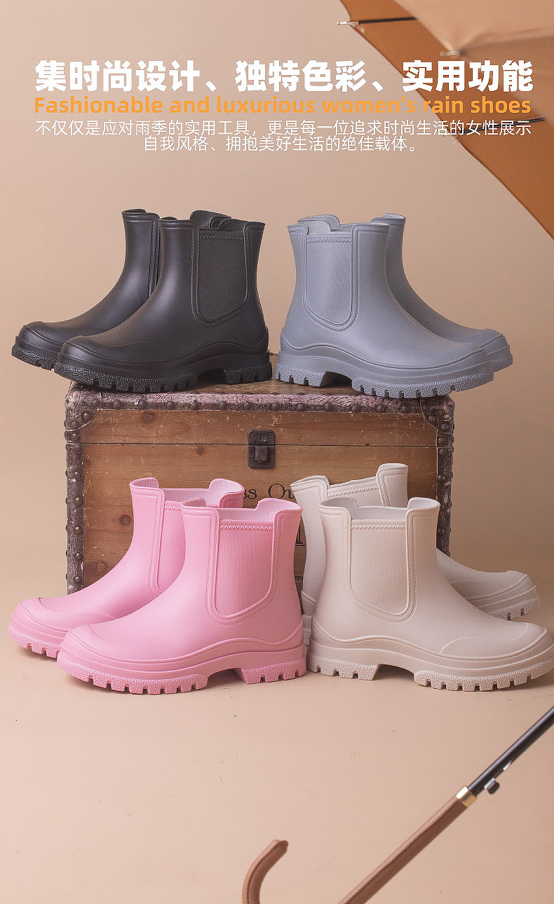국경 간 재고 여성의 새로운 비 신발 및 부츠 야외 작업 고무 신발 경량 미끄럼 방지 주방 오버 슈즈 원피스 배달스토어 가기