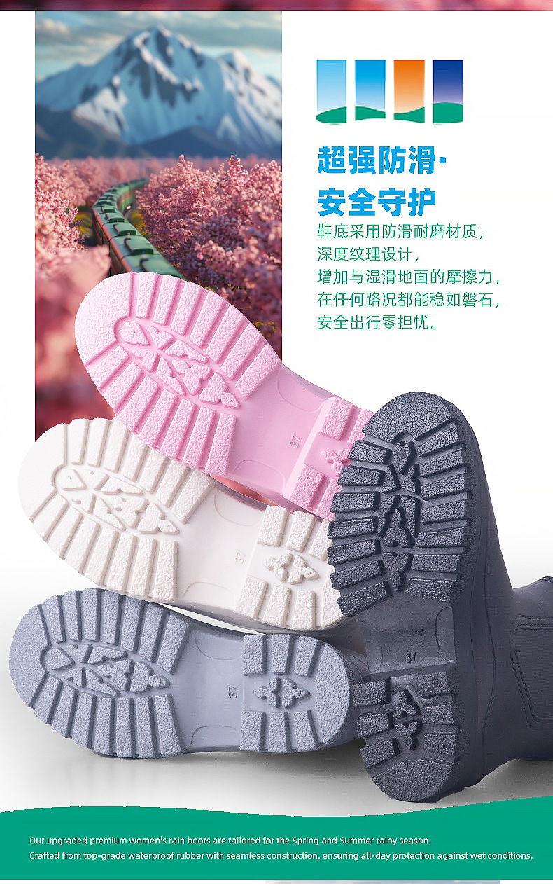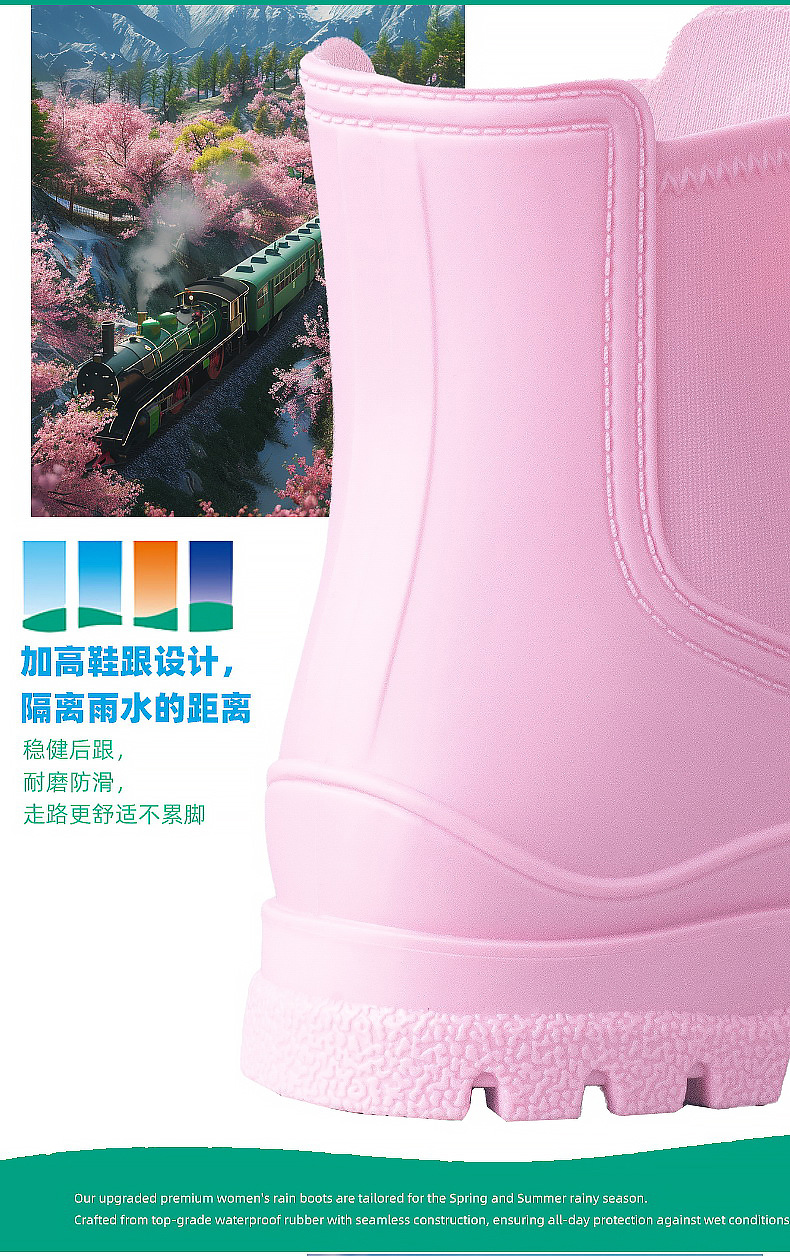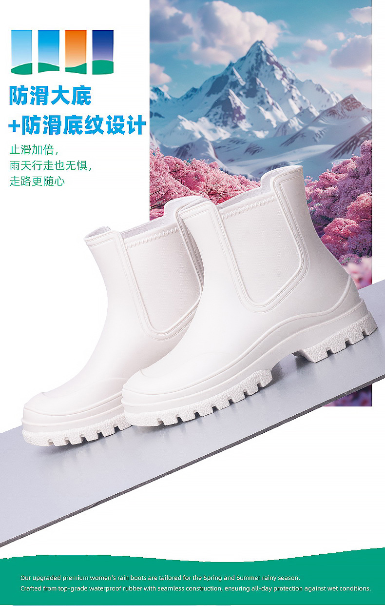 국경 간 재고 여성의 새로운 비 신발 및 부츠 야외 작업 고무 신발 경량 미끄럼 방지 주방 오버 슈즈 원피스 배달