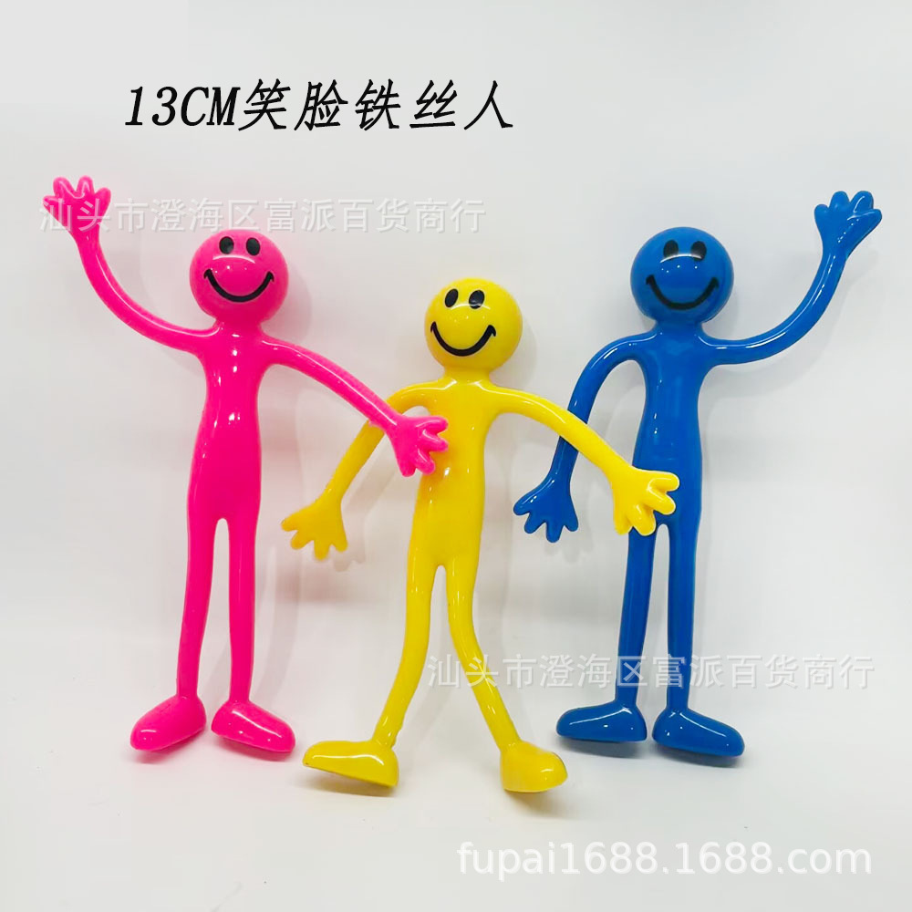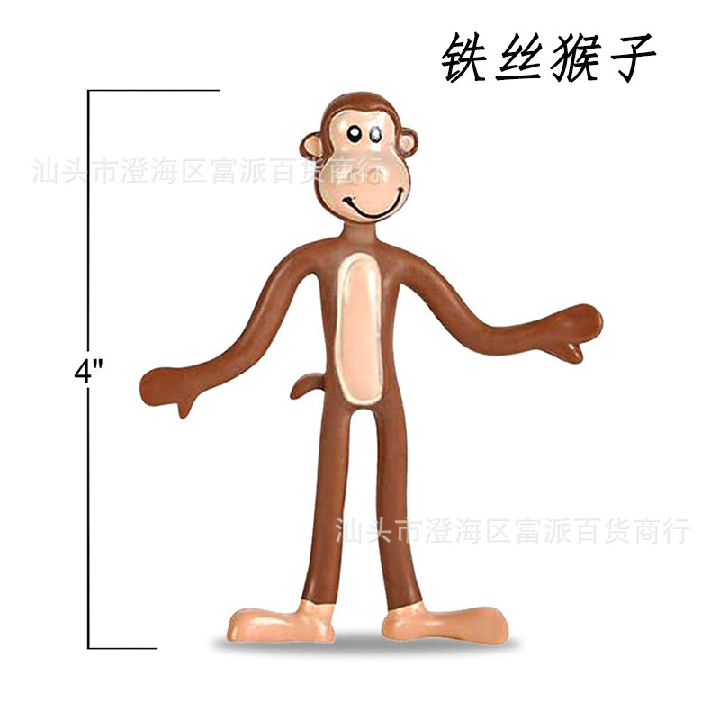 국경 13CM 유연한 웃는 얼굴 철 와이어 PVC 유연한 접착제 철 와이어 원숭이 개구리 인형 재미 감압 장난감