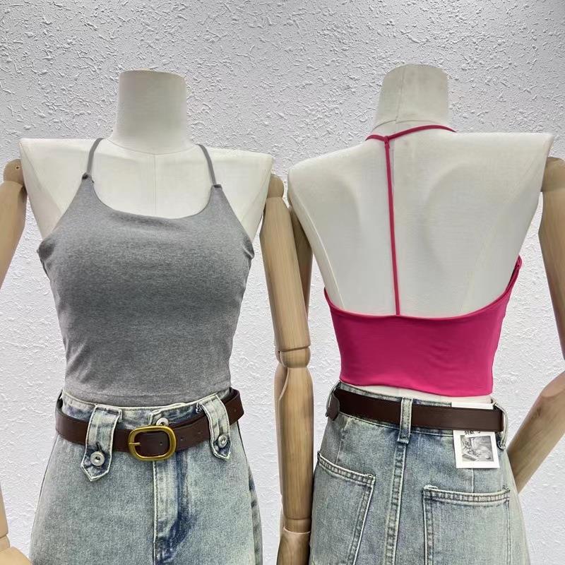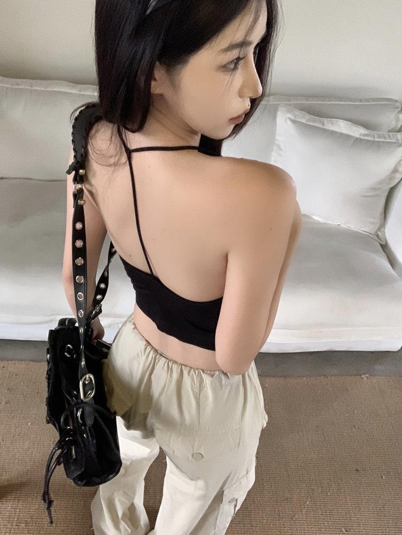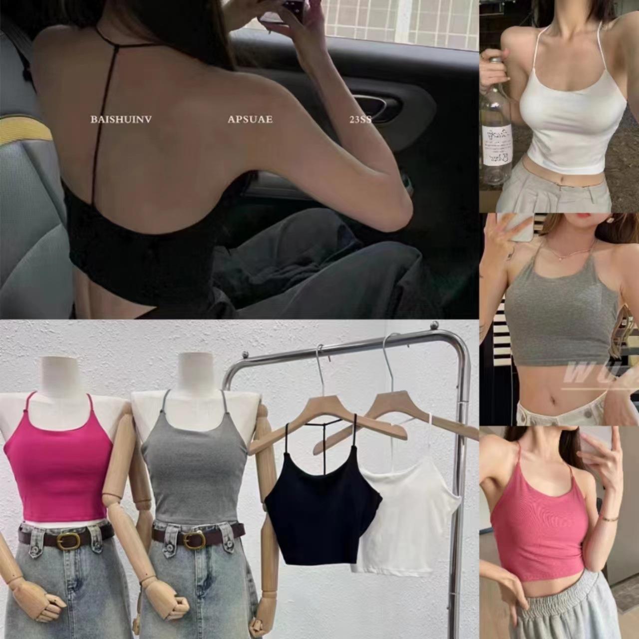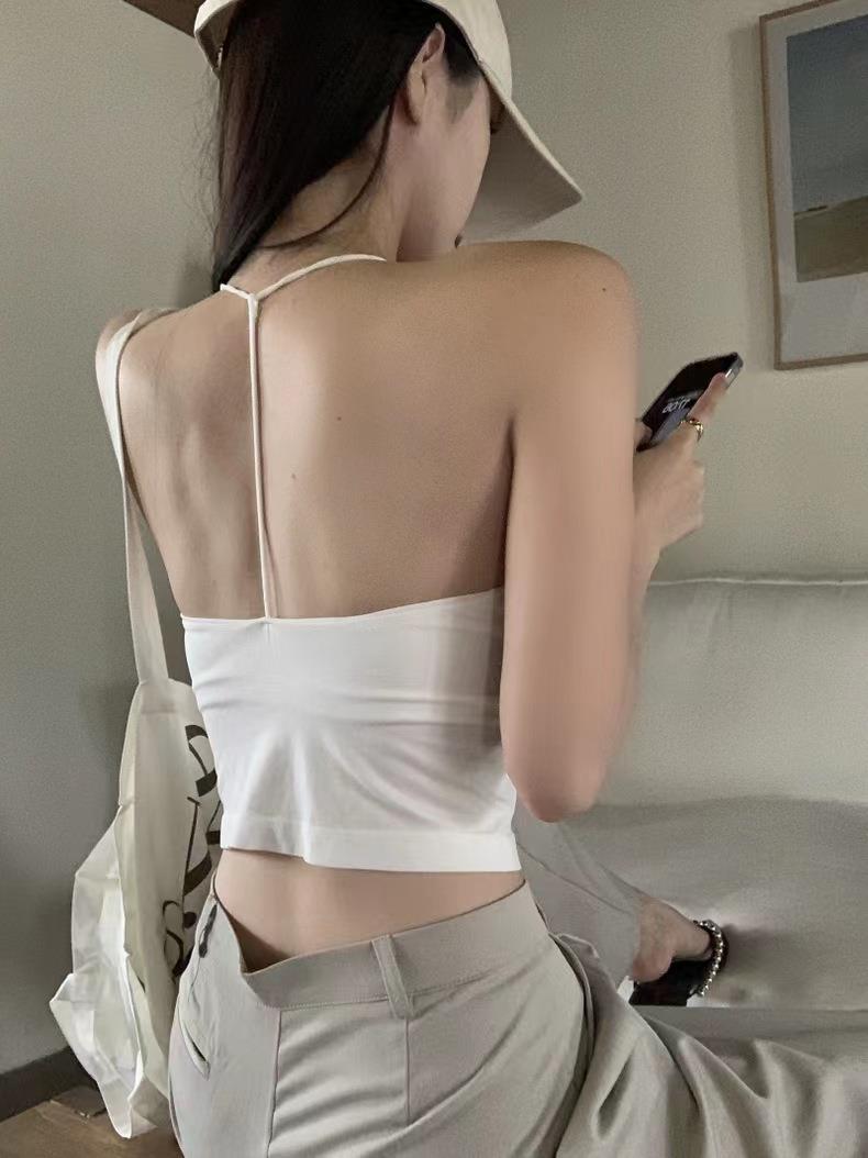 한국 스타일 순수한 소원 목에 매달린 얇은 카미 솔 조끼 여자 섹시한 뜨거운 여자 가슴 패드와 백리스 내부 입고 아름다운 뒤로 싸인 가슴 여자스토어 가기