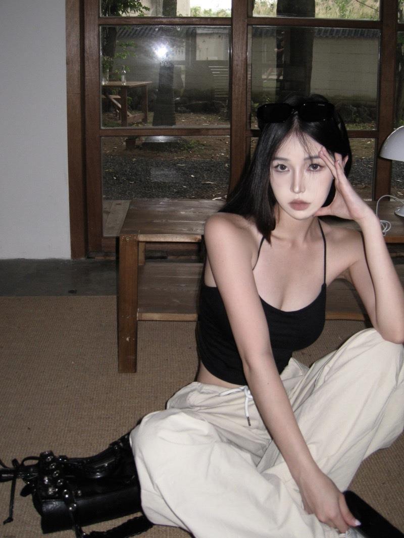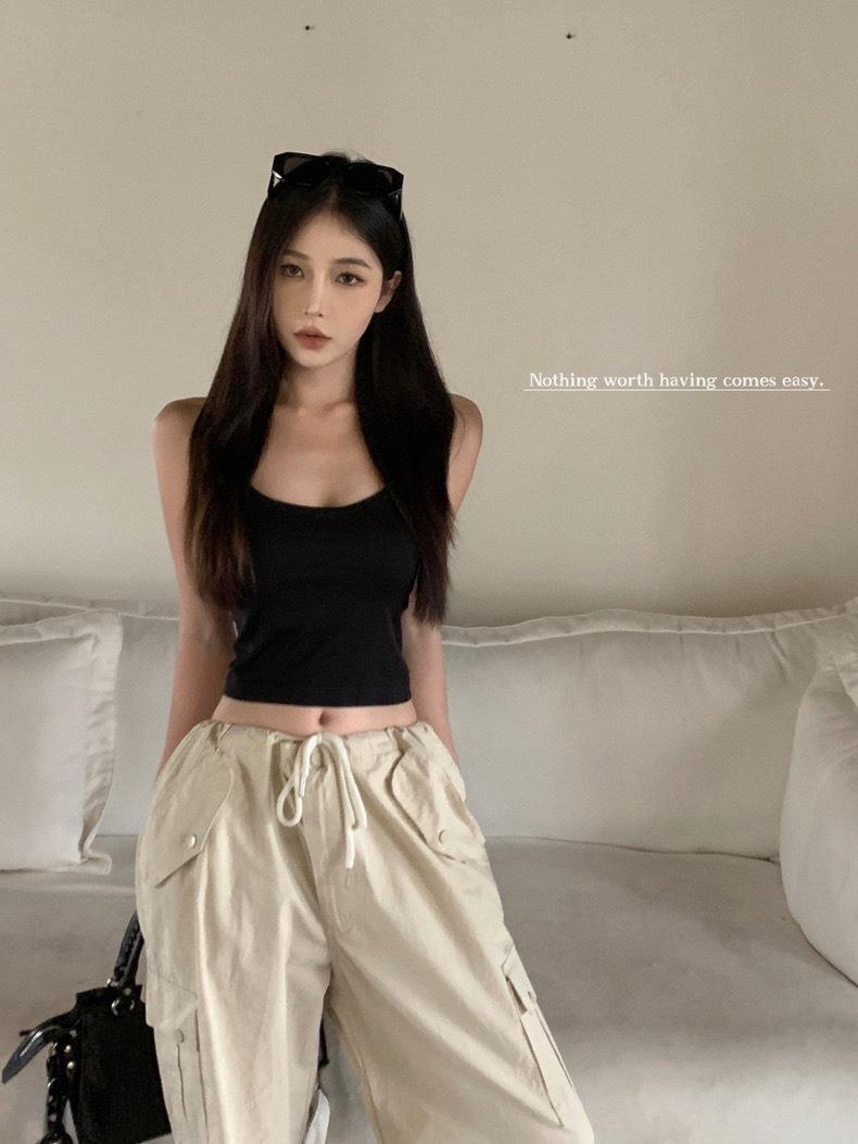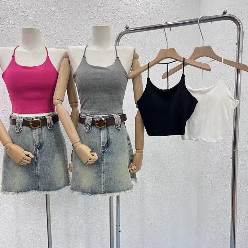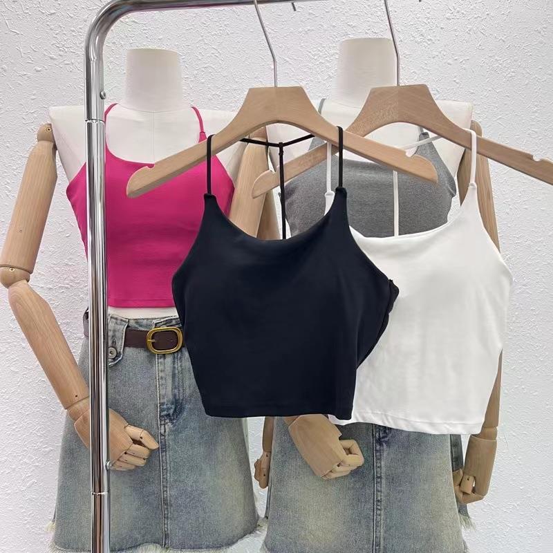 한국 스타일 순수한 소원 목에 매달린 얇은 카미 솔 조끼 여자 섹시한 뜨거운 여자 가슴 패드와 백리스 내부 입고 아름다운 뒤로 싸인 가슴 여자스토어 가기
