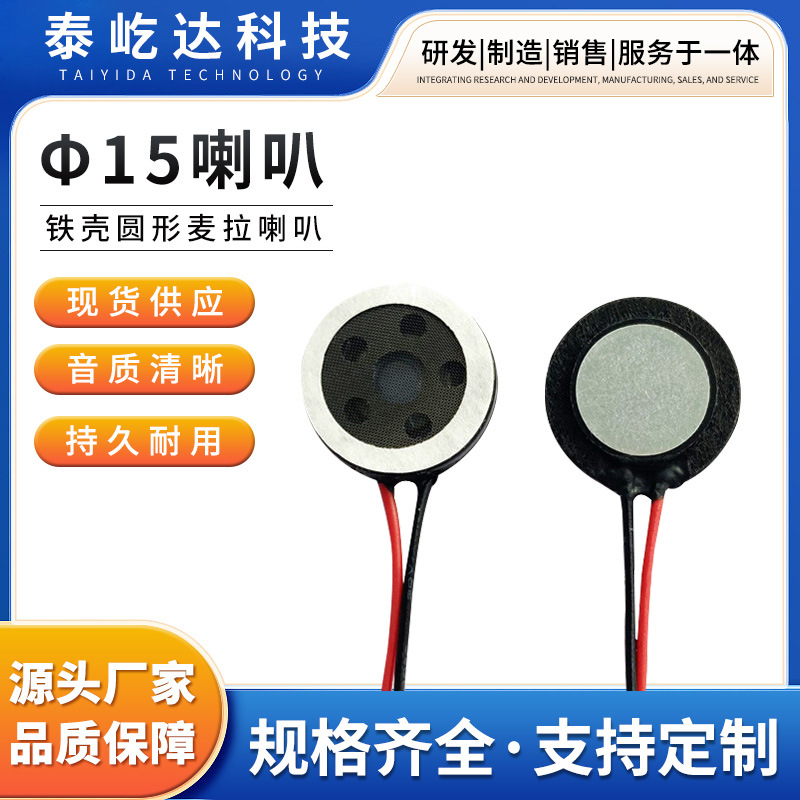 제조업체 15mm 스피커, 중저음 게임기 장난감용 유선 스피커, 0.5W 플라스틱 쉘 원형 마일라 스피커 도매스토어 가기