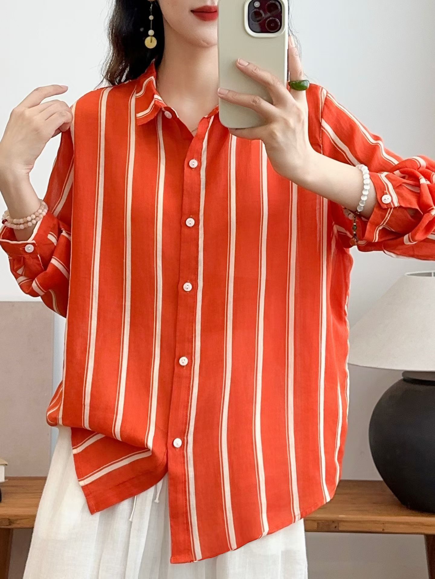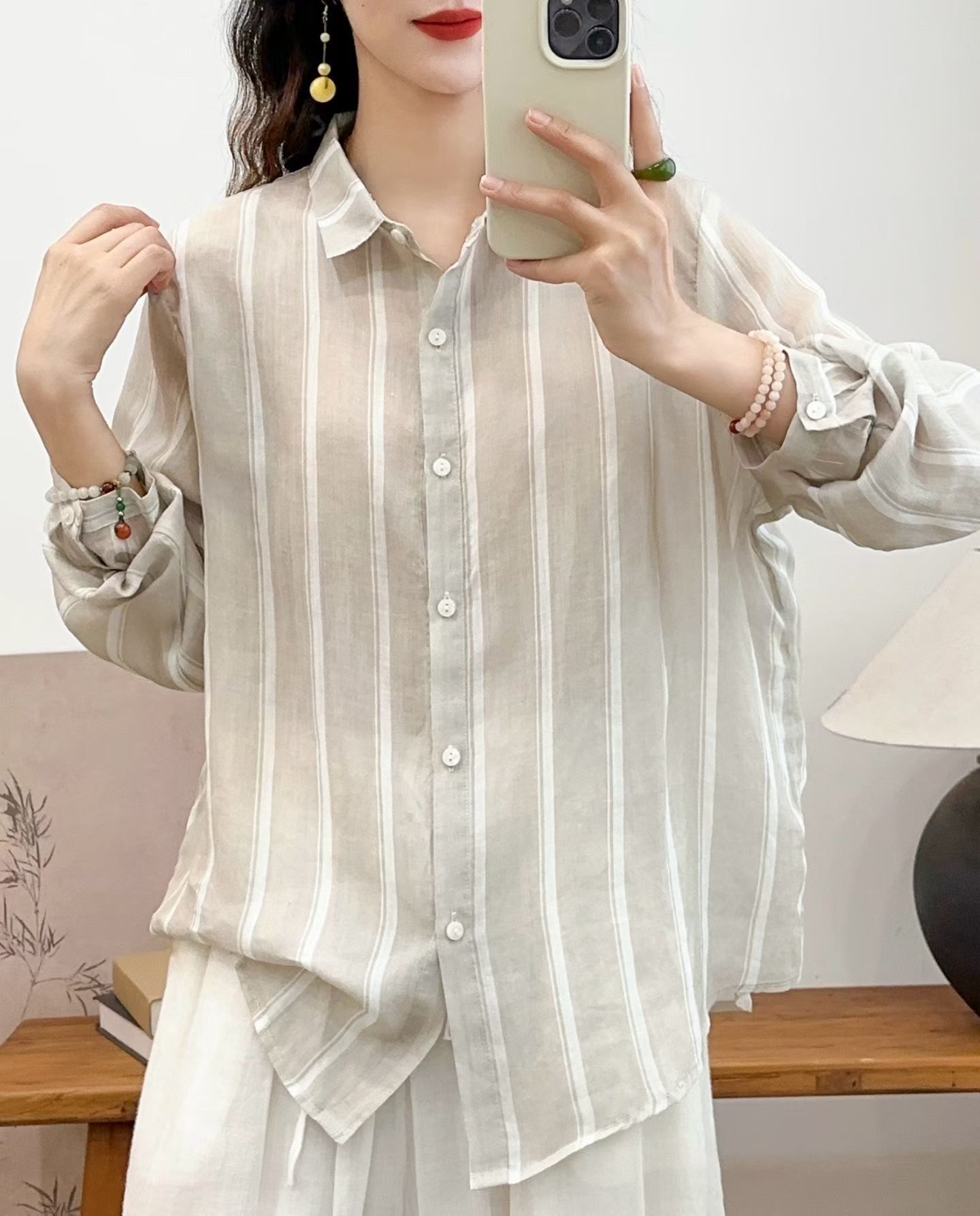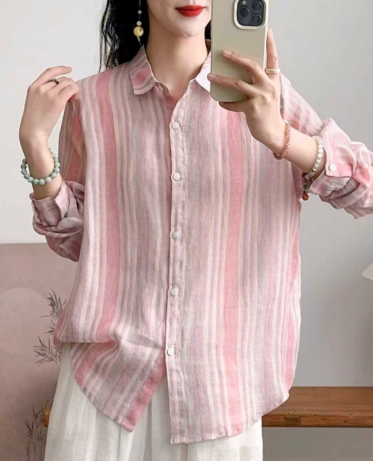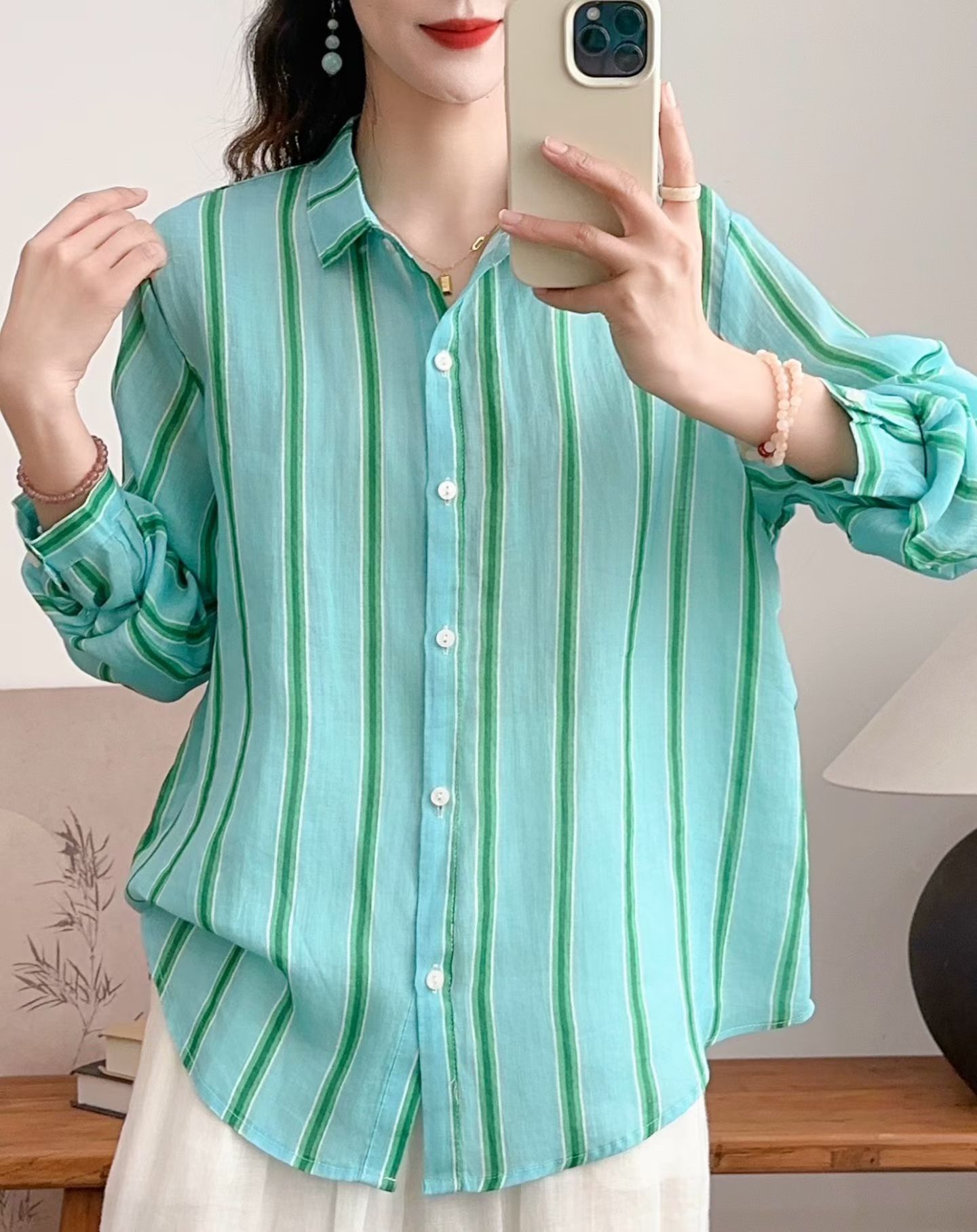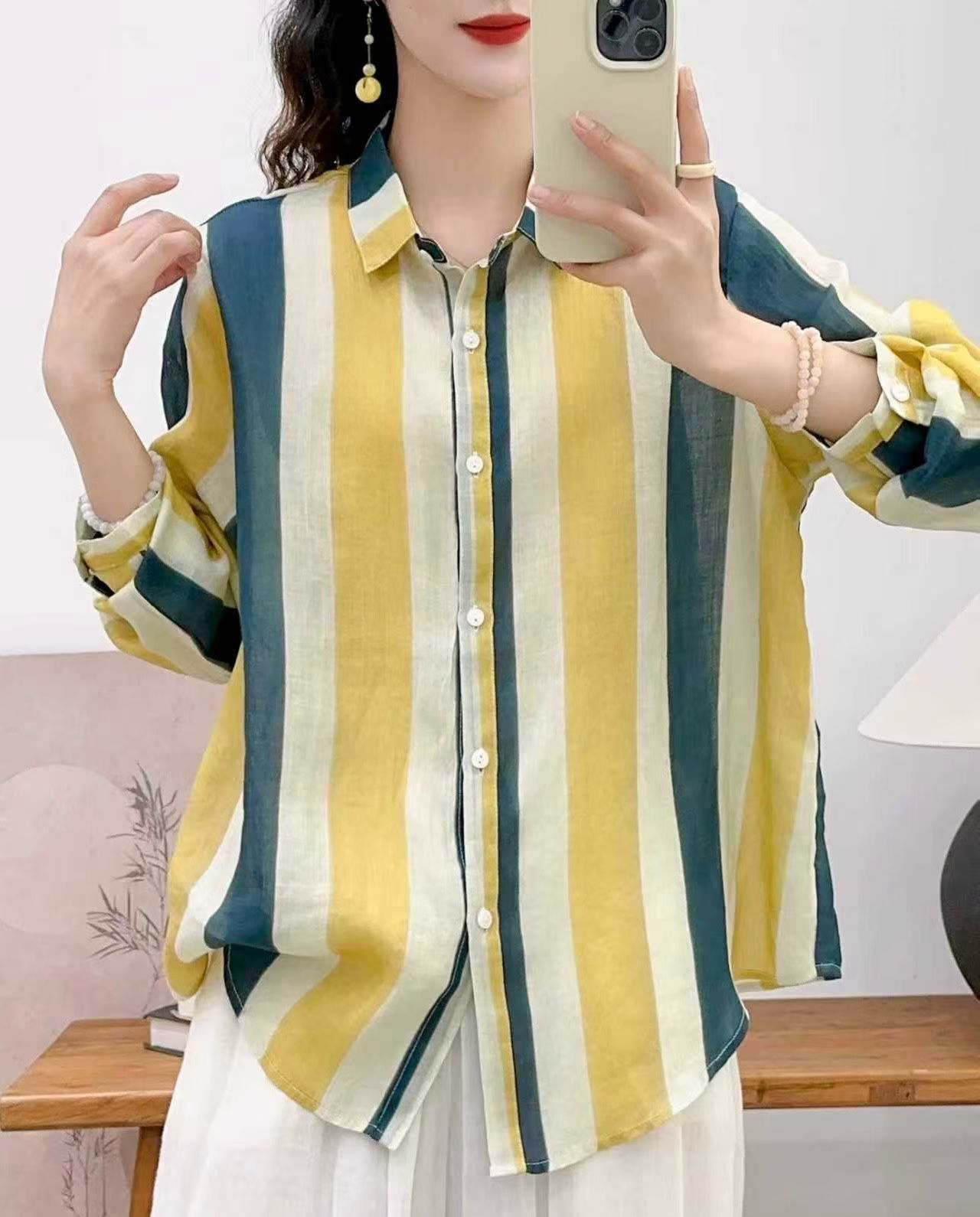 모리 소녀 예술적 라미 인쇄 셔츠 긴팔 여성용 옷깃 꽃 탑베이스 셔츠 라미 셔츠 탑 여성 의류스토어 가기