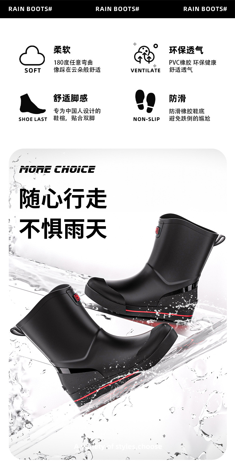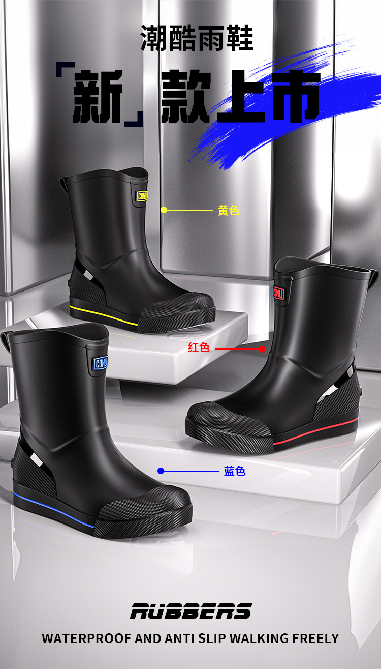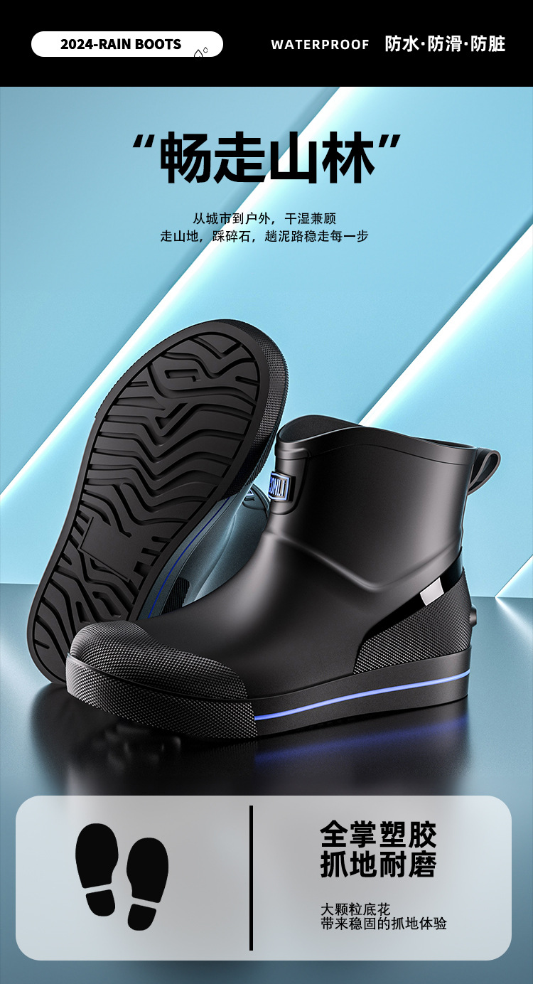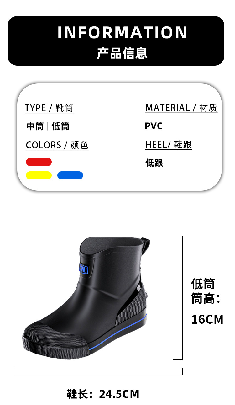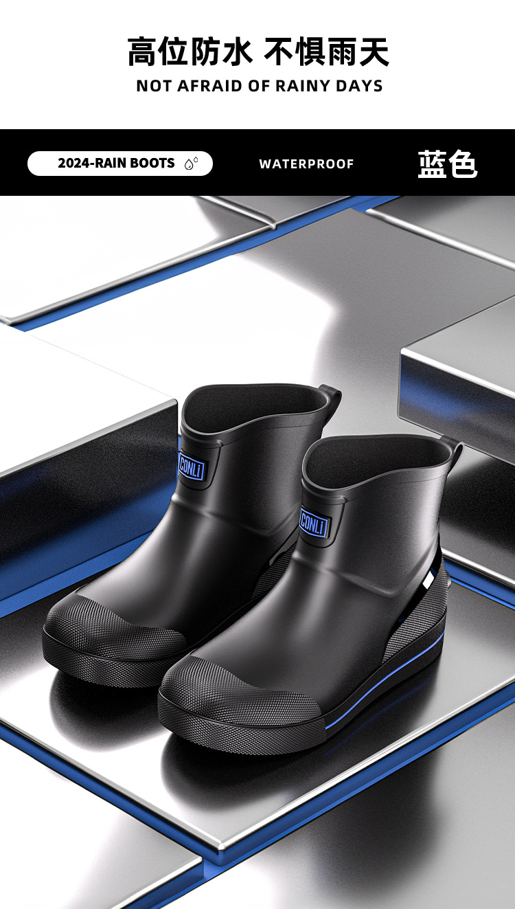 패션 짧은 장화 남성 사계절 작업 신발 낮은 최고 미끄럼 방지 주방 신발 내마모성 고무 신발 낚시 신발 방수 신발