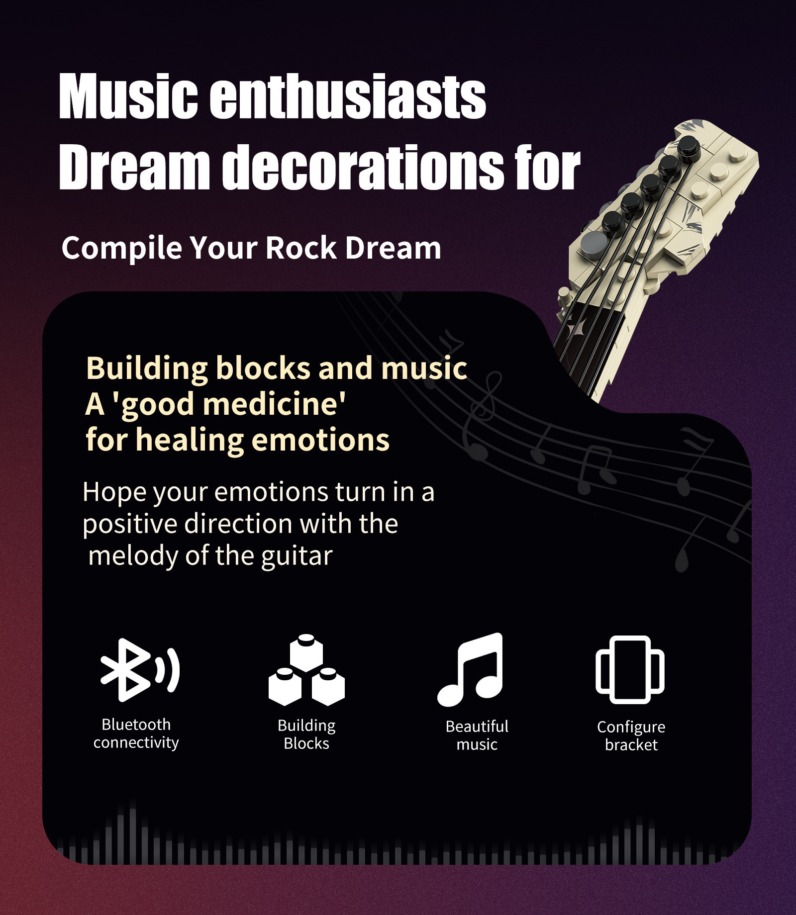 국경 조립 기타 빌딩 블록은 블루투스 오디오 홈 장식 창조적 인 작은 입자 조립 장난감에 연결할 수 있습니다스토어 가기