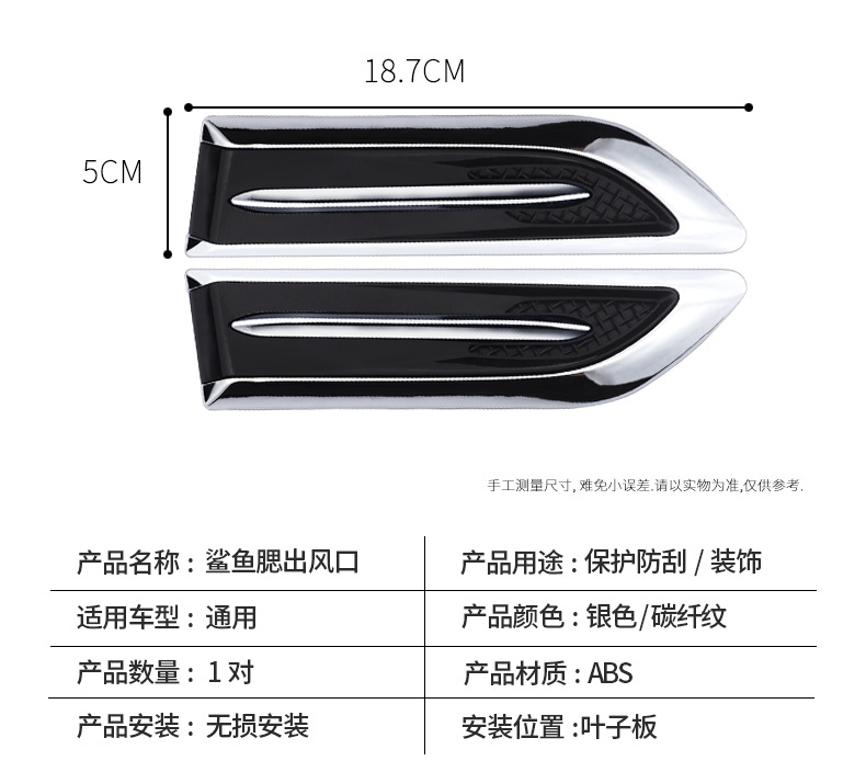 자동차 수정 상어 턱 사이드 윙 에어 아울렛 자동차 바디 에어 콘센트 3D 맞춤형 자동차 스티커 장식 스티커 블레이드 펜더