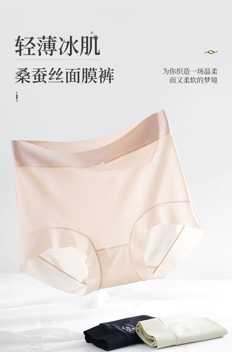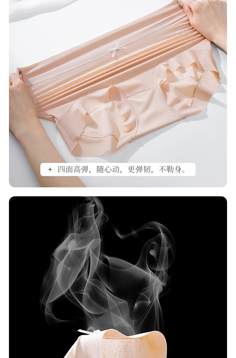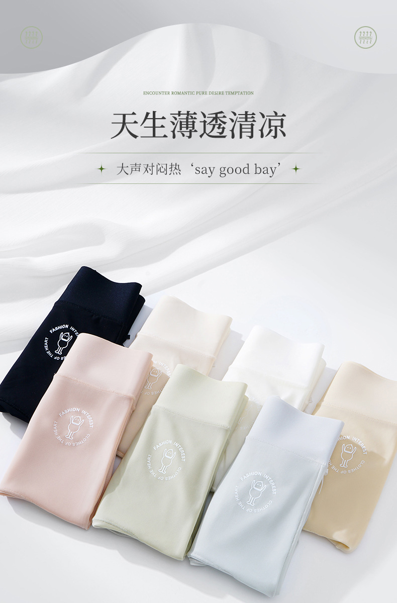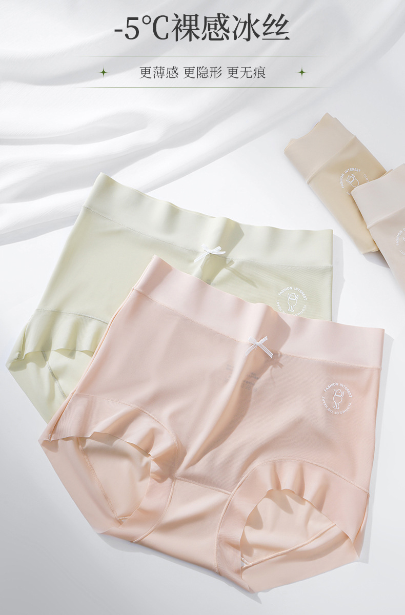 여름 속옷 여성의 얇은 아이스 실크 빠른 건조 원활한 속옷 중간 허리 통기성 소녀 실크 가랑이 초박형 마스크 반바지