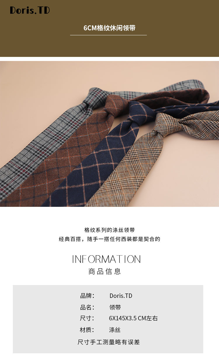 공장 재고 도매 6CM 격자 무늬 캐주얼 넥타이 다목적 대학 스타일 국경 전자 상거래 공급 젊은 남성 한국 스타일