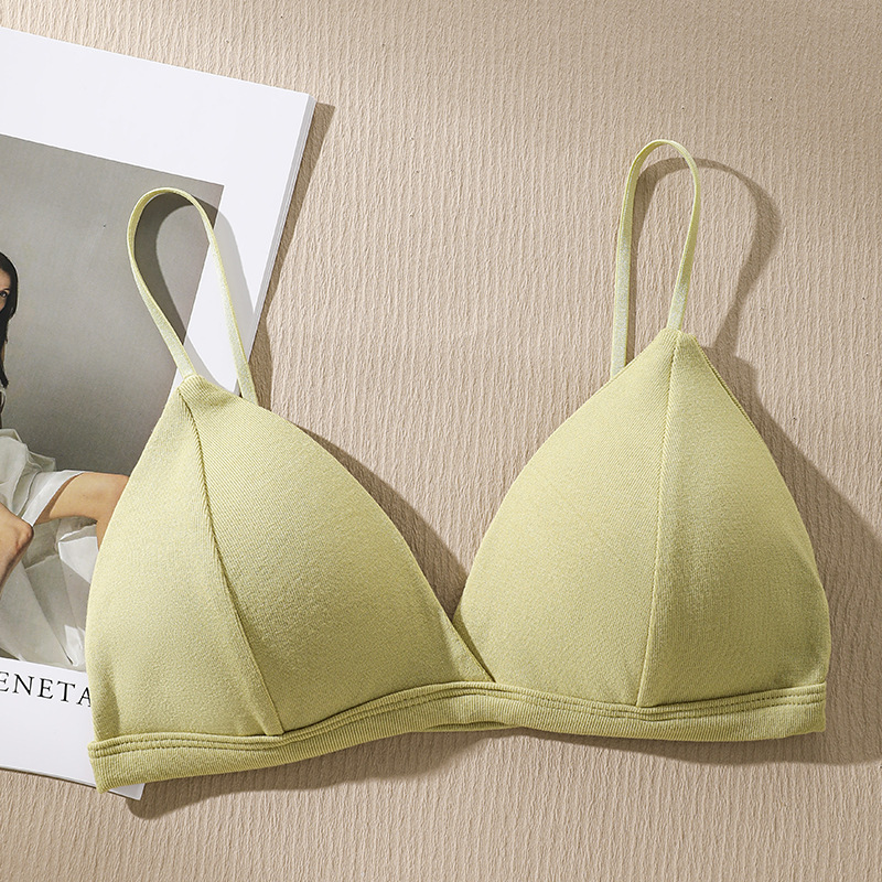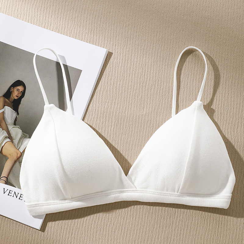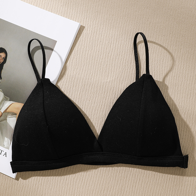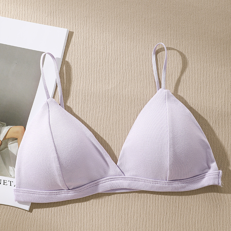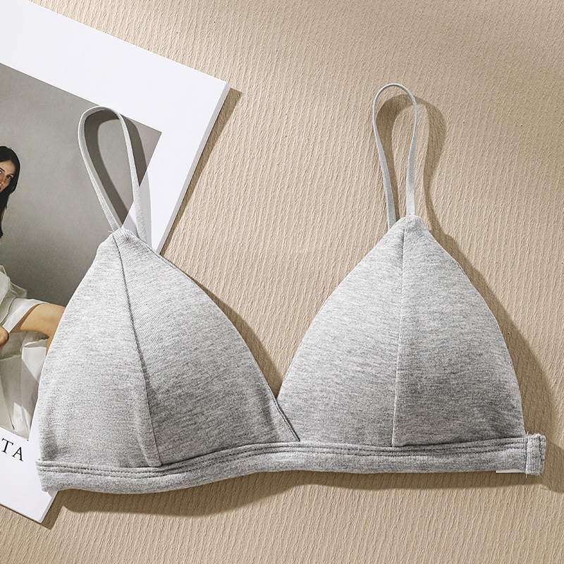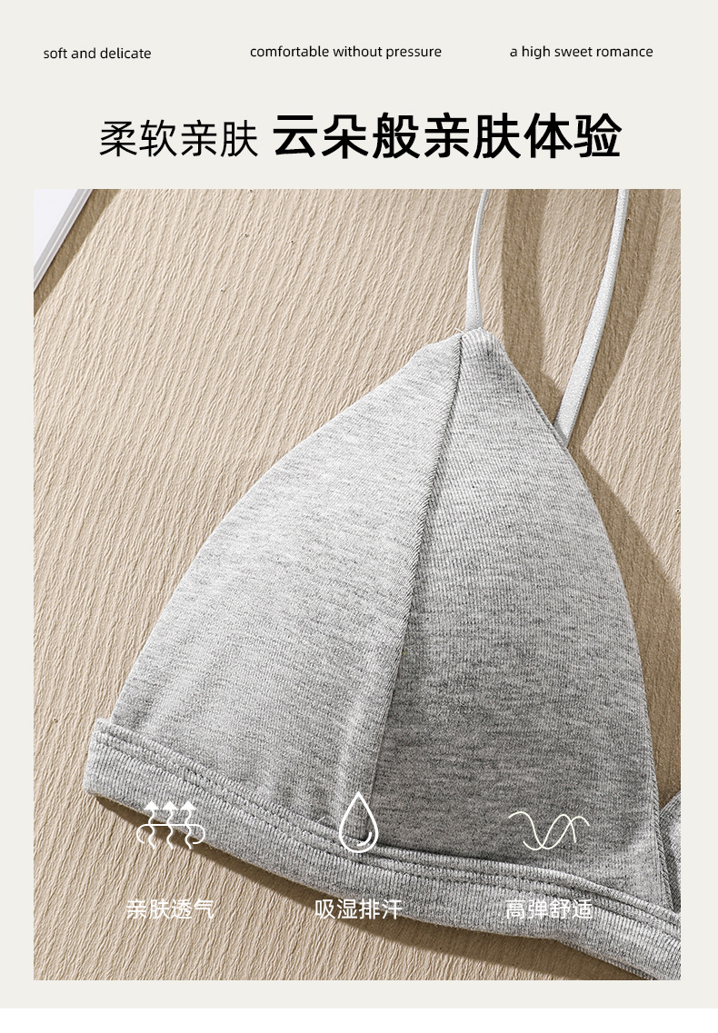 새로운 프랑스 스타일의 무선 삼각형 컵 슬링 소녀 섹시한 속옷 학생 스타일 얇은 어깨 끈 아름다움 다시 유럽과 미국의 인기