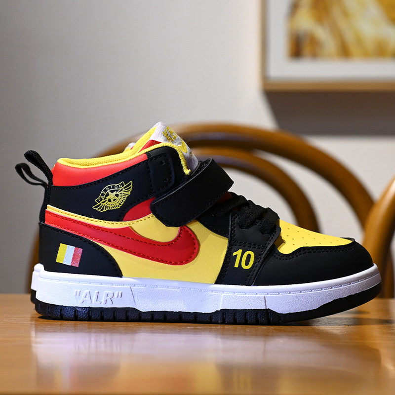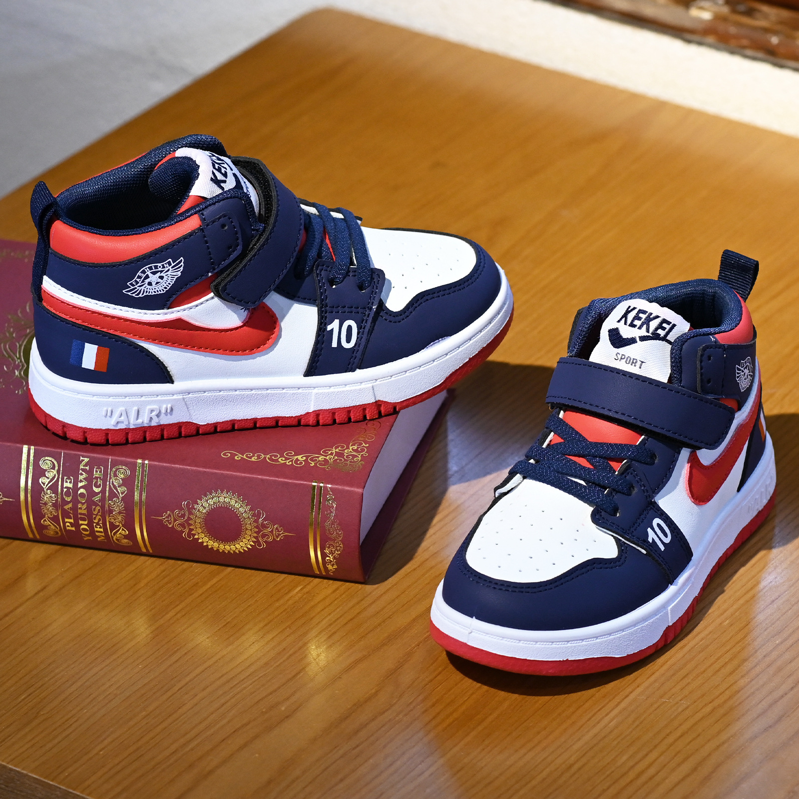 2024 새로운 어린이 농구 신발 봄과 가을 아기 운동화 부드러운 바닥 내마모성 보드 신발 하이 탑 트렌디 한 aj 어린이 신발
