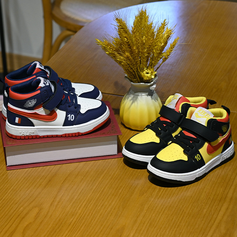 2024 새로운 어린이 농구 신발 봄과 가을 아기 운동화 부드러운 바닥 내마모성 보드 신발 하이 탑 트렌디 한 aj 어린이 신발스토어 가기