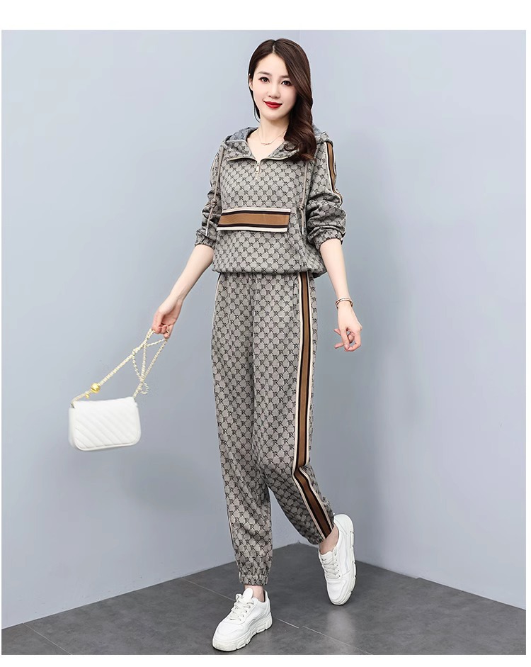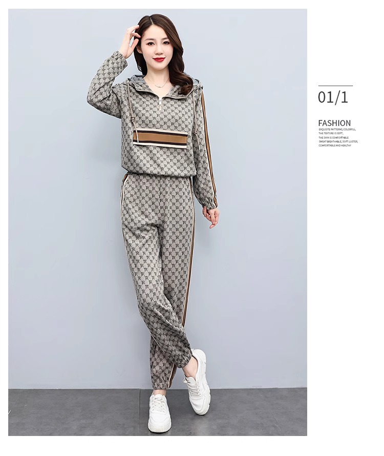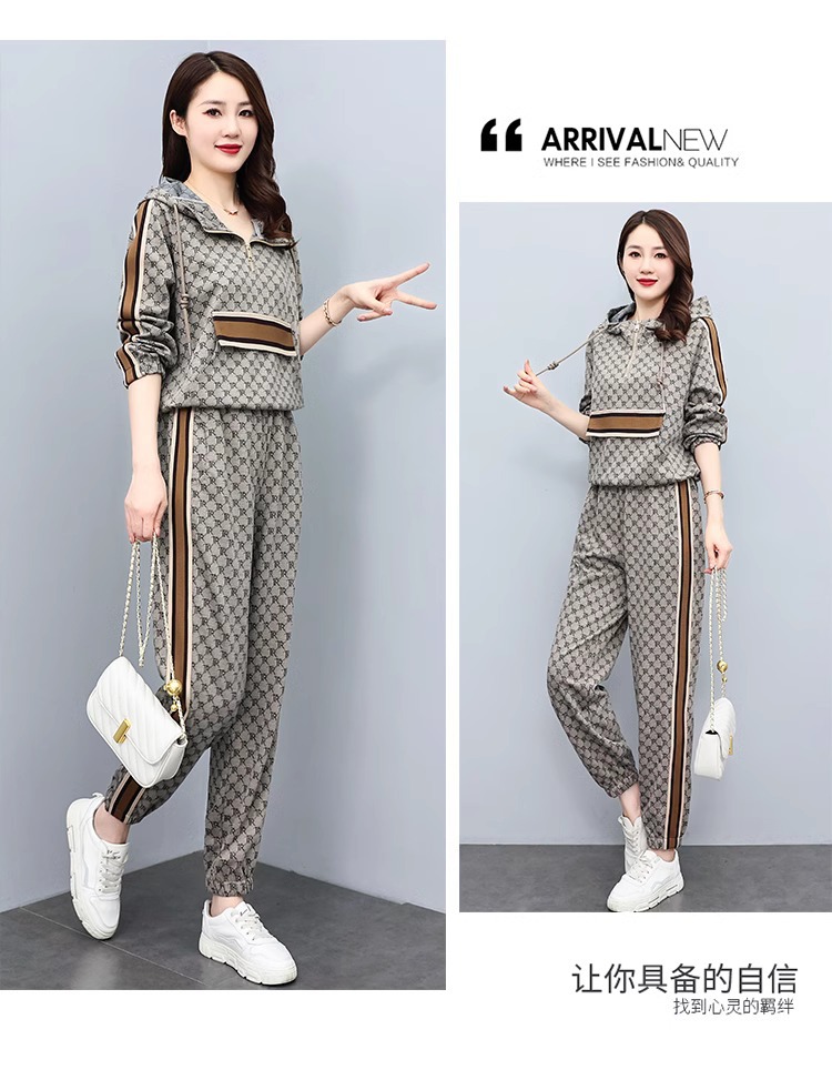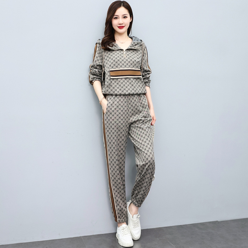 스포츠웨어 세트 여성 2024 봄과 가을 새로운 작은 스웨터 느슨한 나이 감소 패션 서양식 캐주얼 투피스 세트