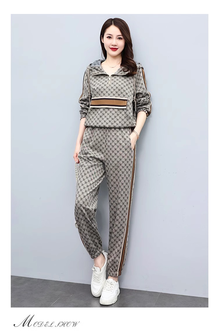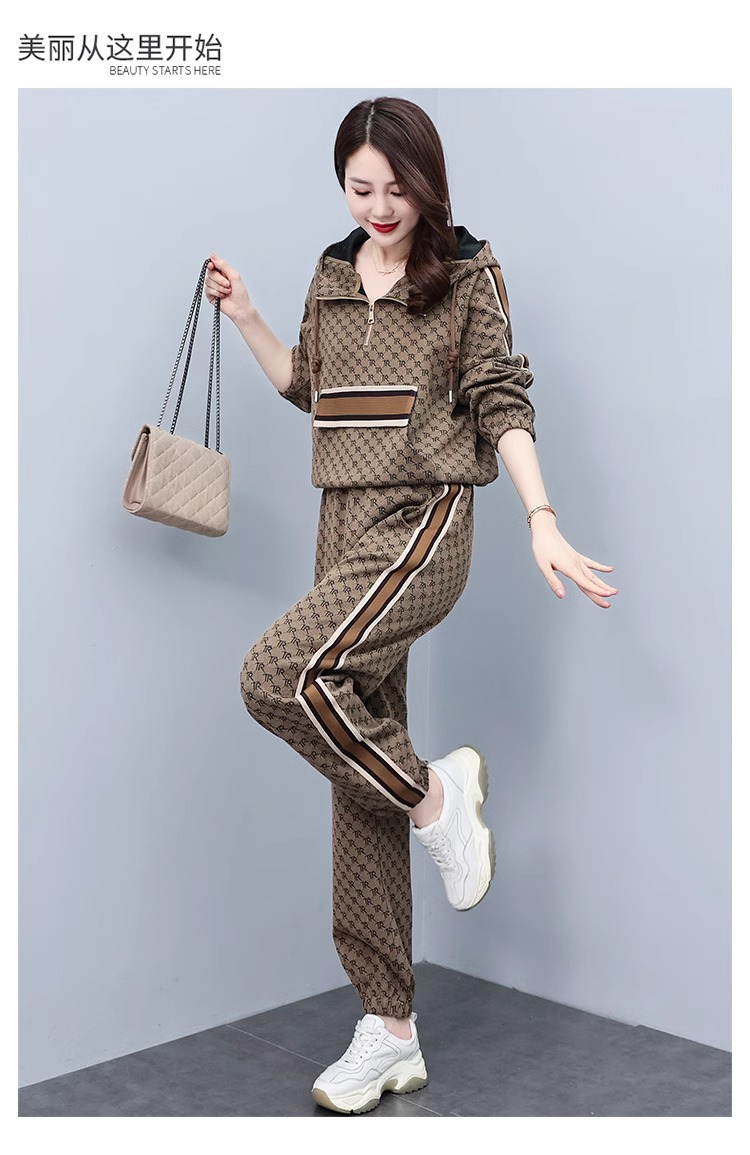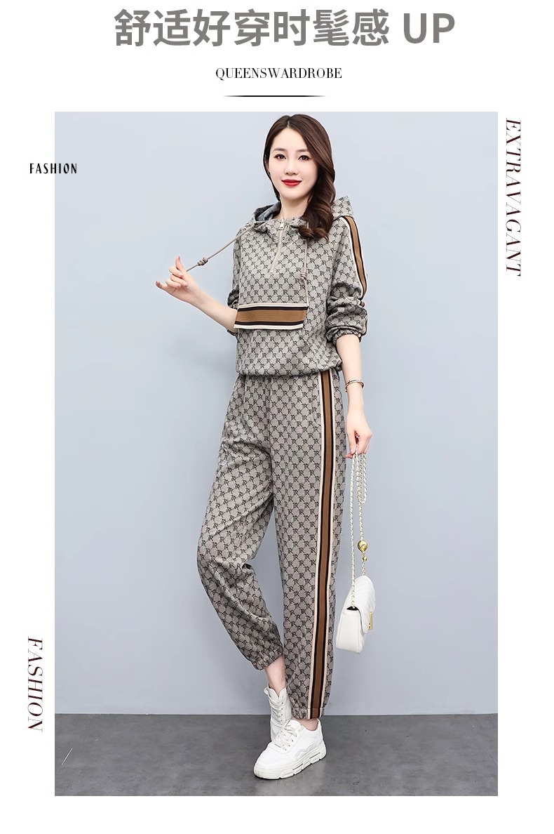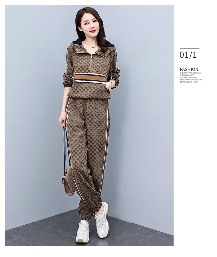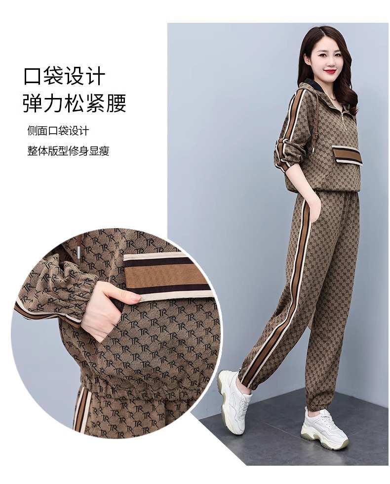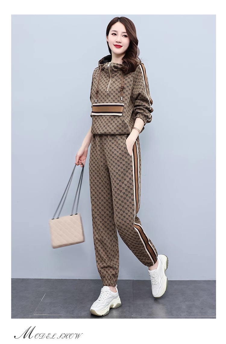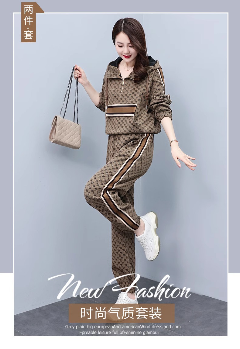 스포츠웨어 세트 여성 2024 봄과 가을 새로운 작은 스웨터 느슨한 나이 감소 패션 서양식 캐주얼 투피스 세트스토어 가기