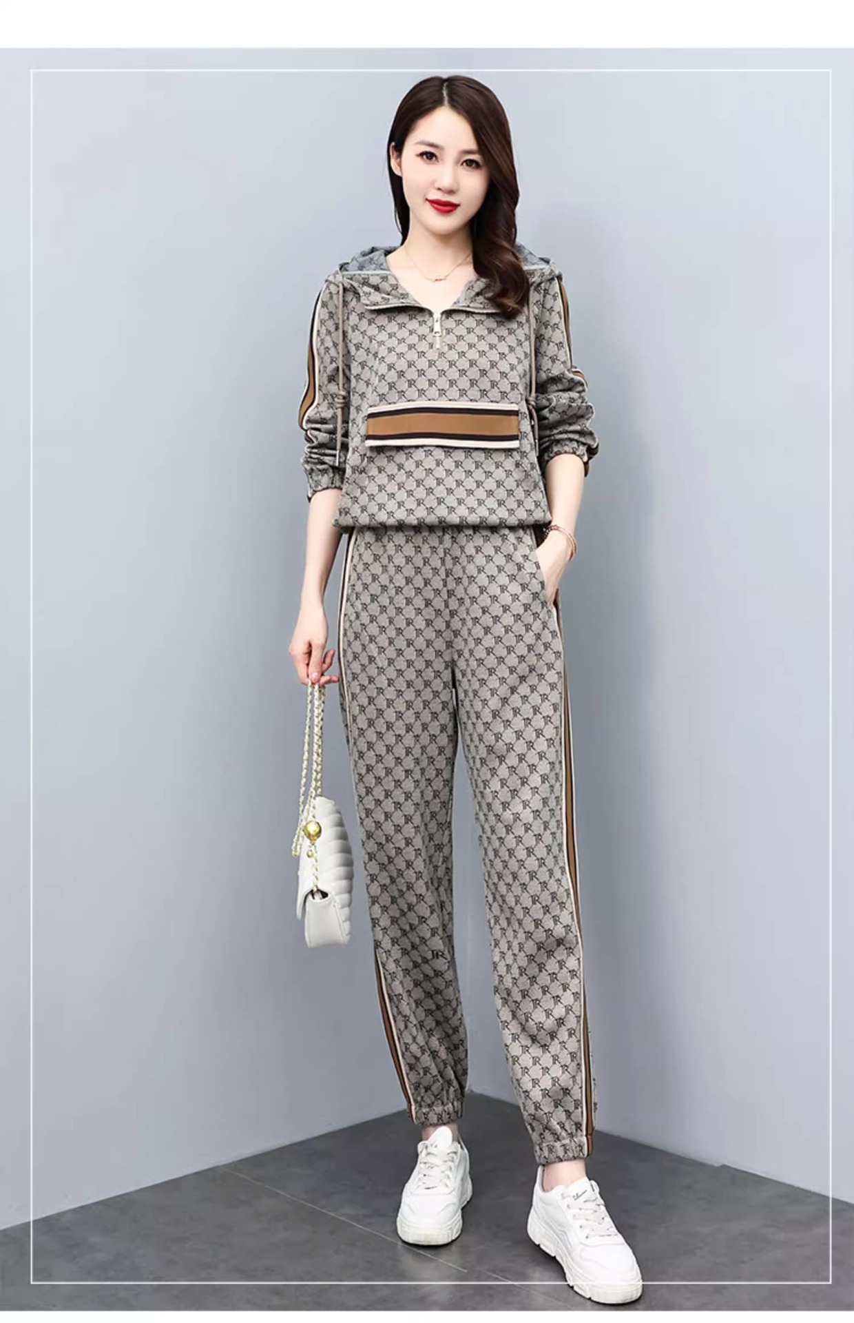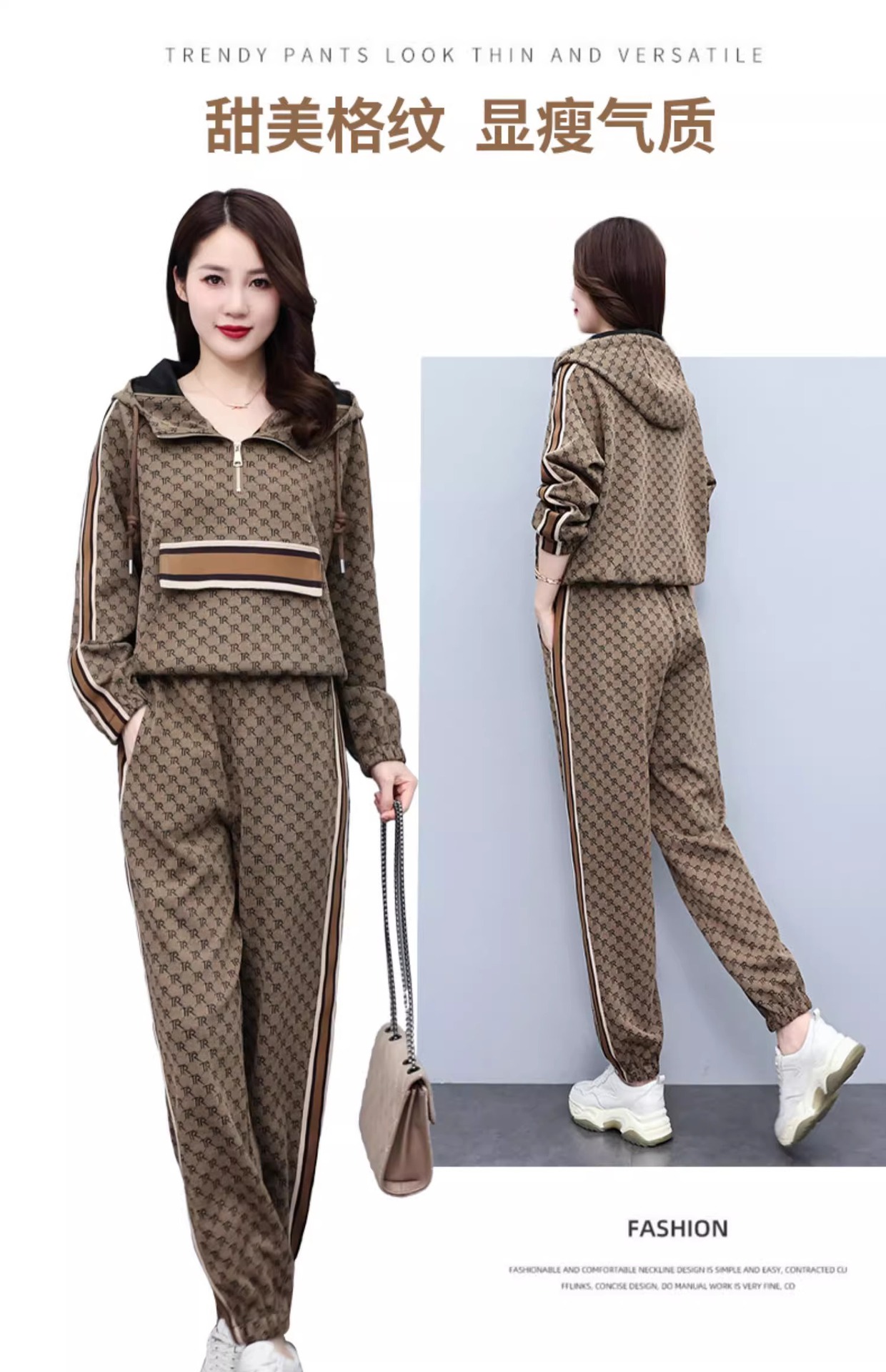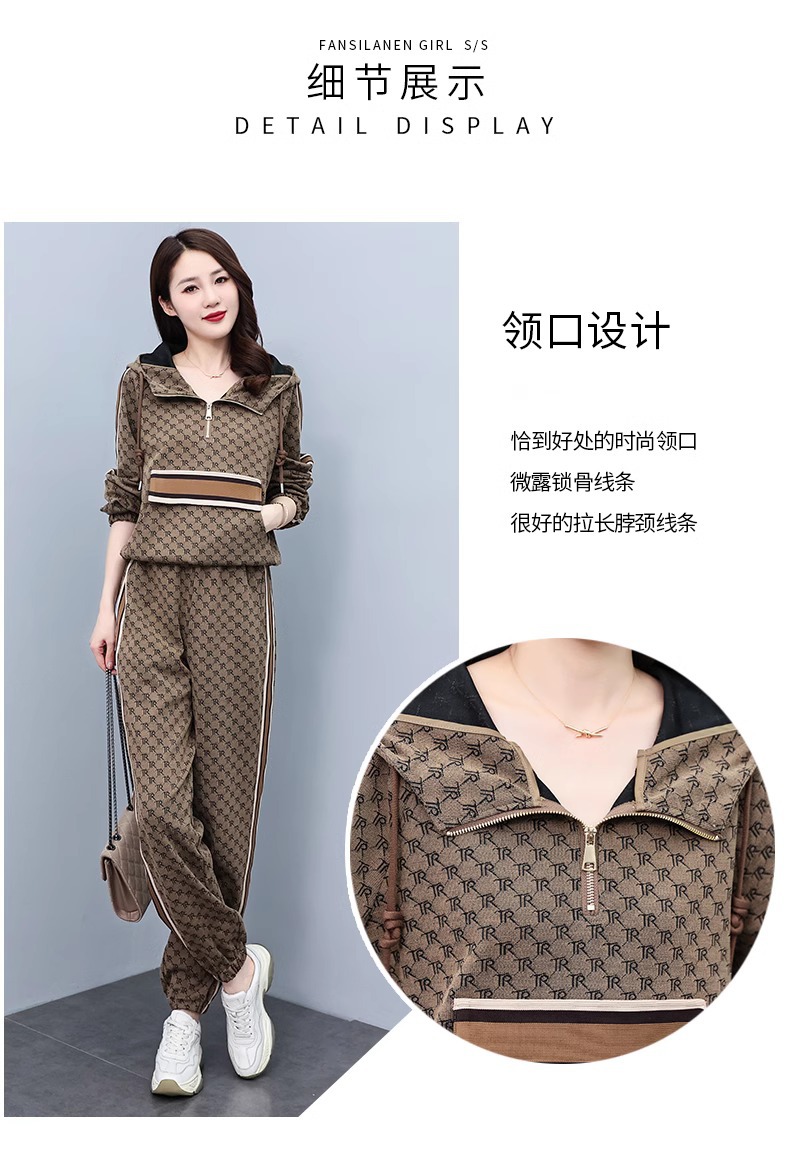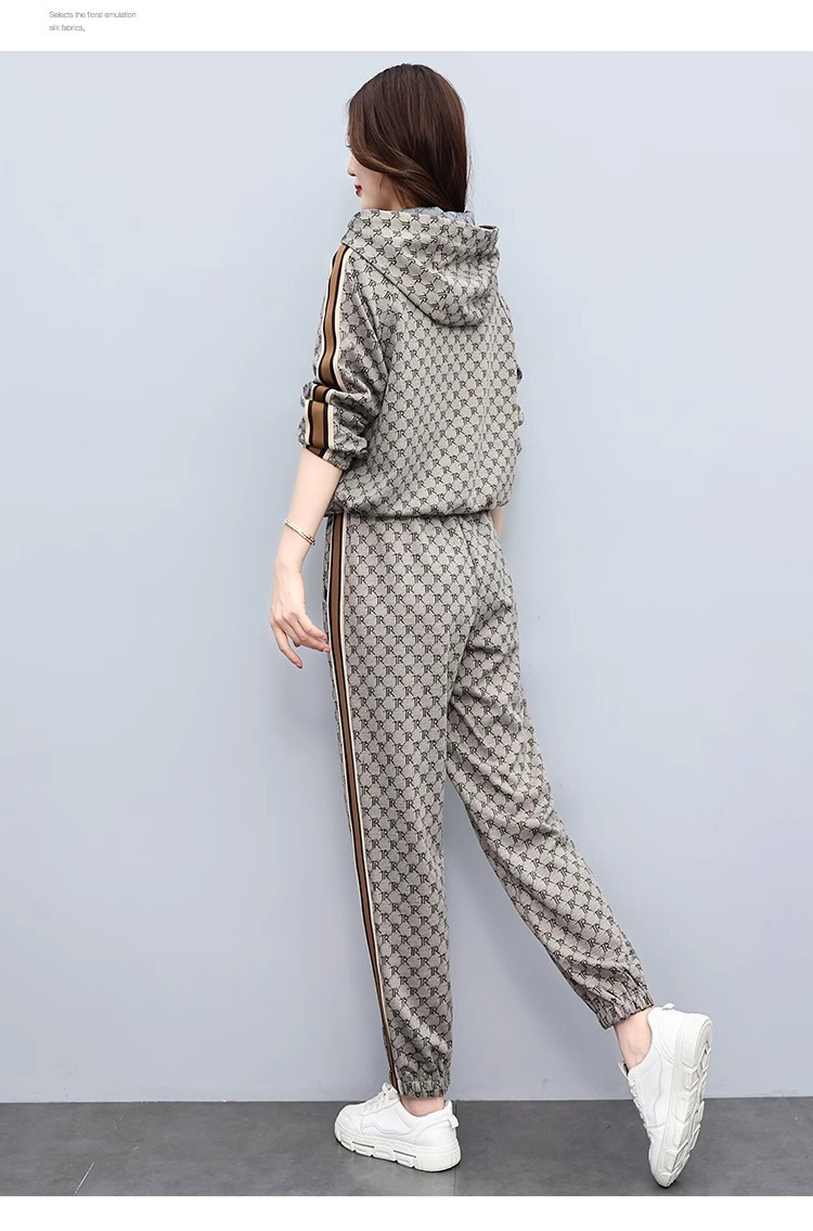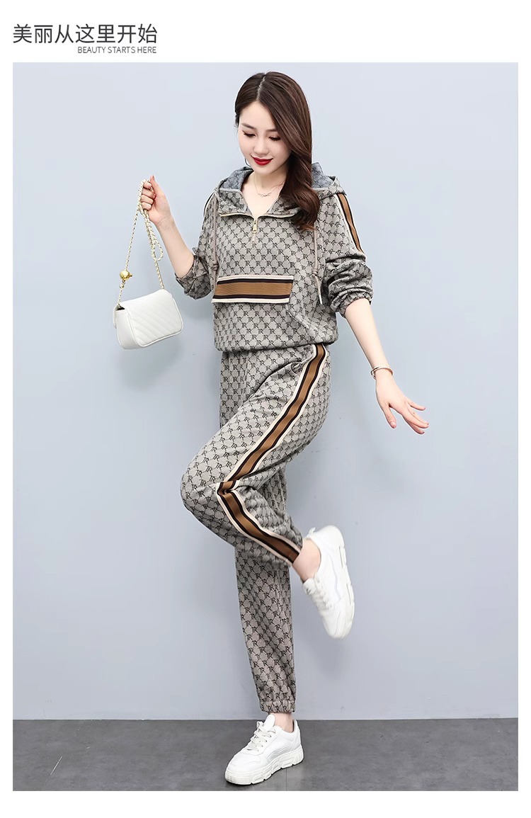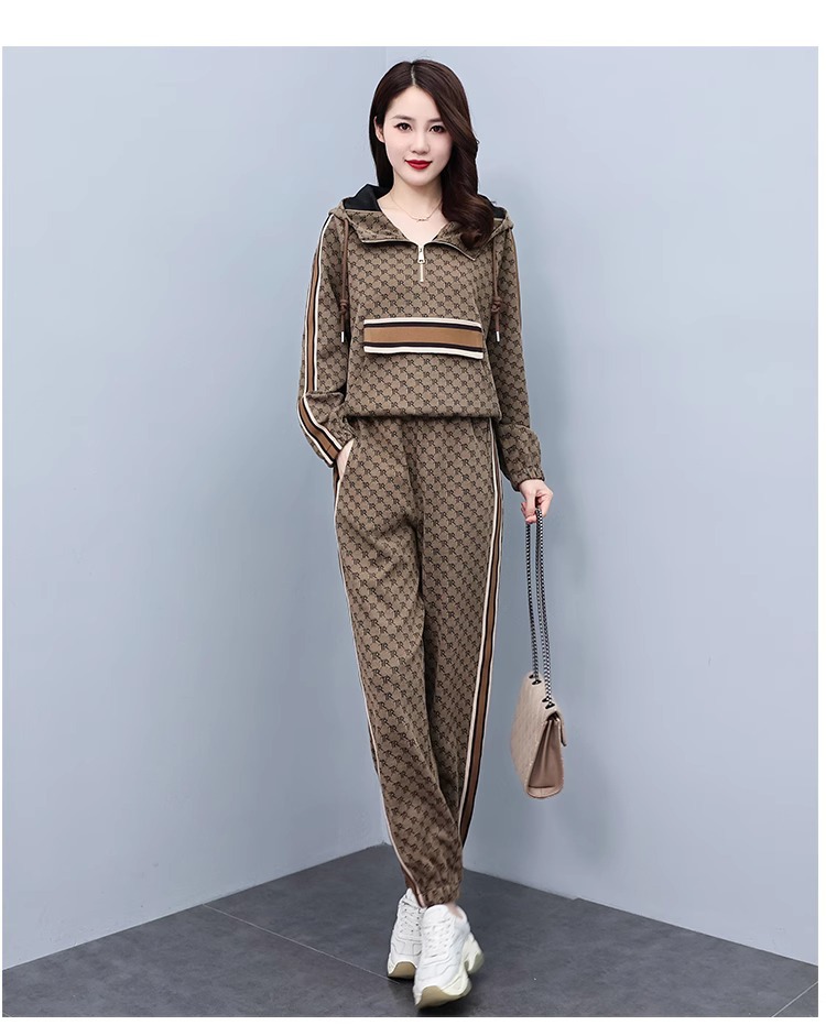 스포츠웨어 세트 여성 2024 봄과 가을 새로운 작은 스웨터 느슨한 나이 감소 패션 서양식 캐주얼 투피스 세트스토어 가기