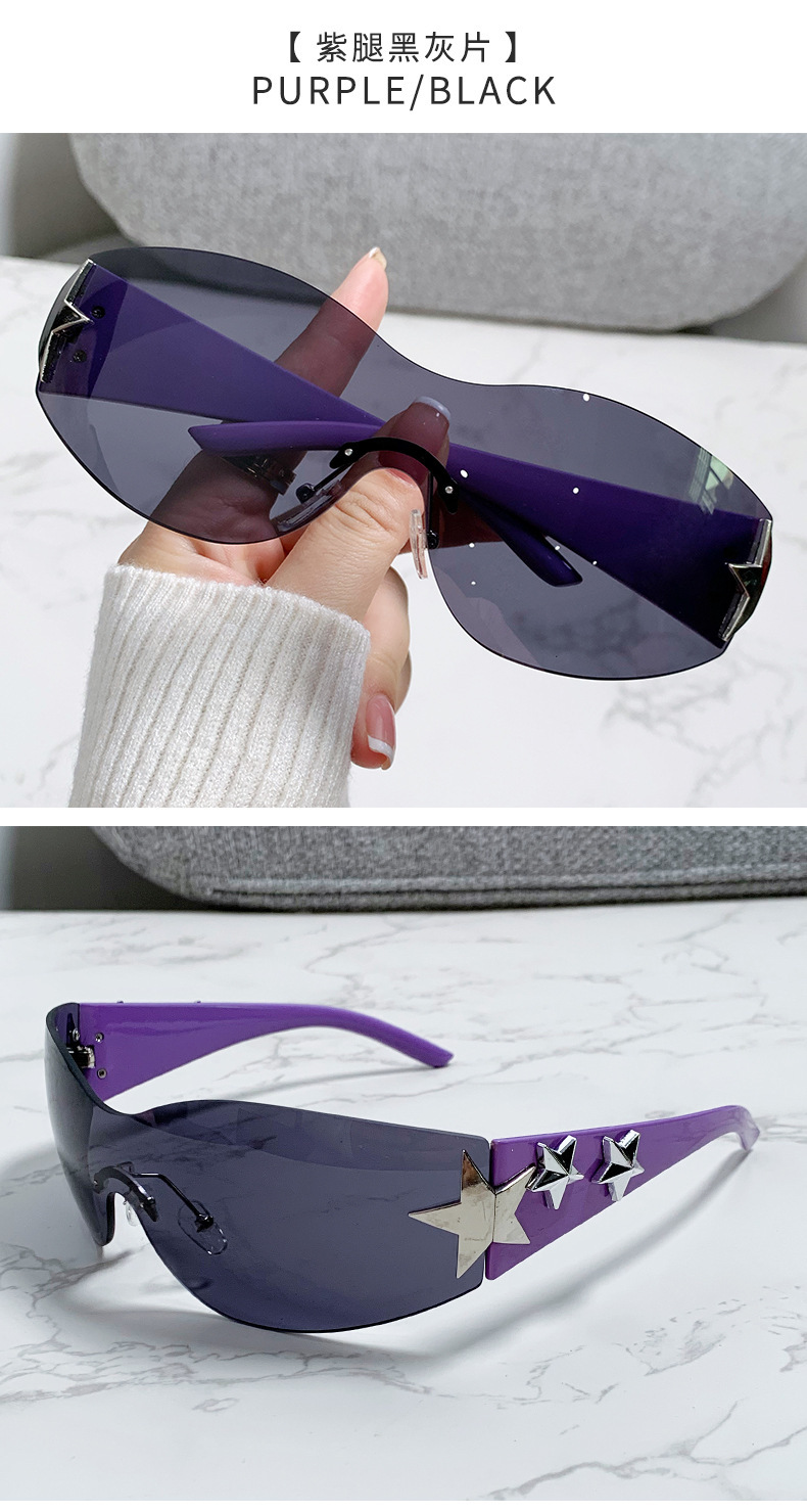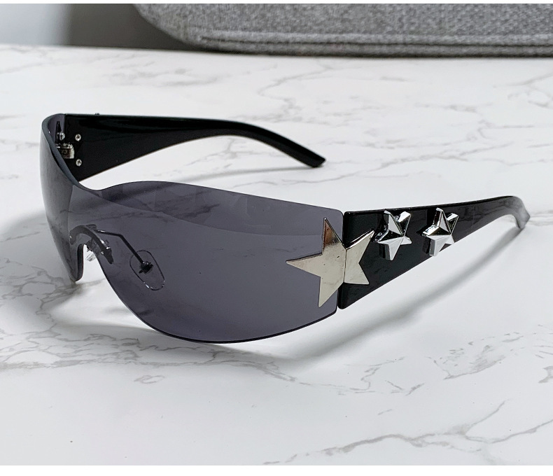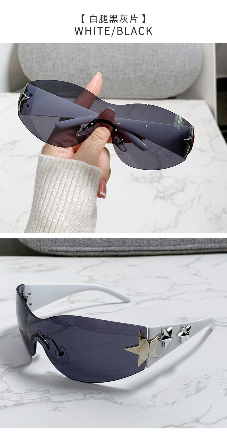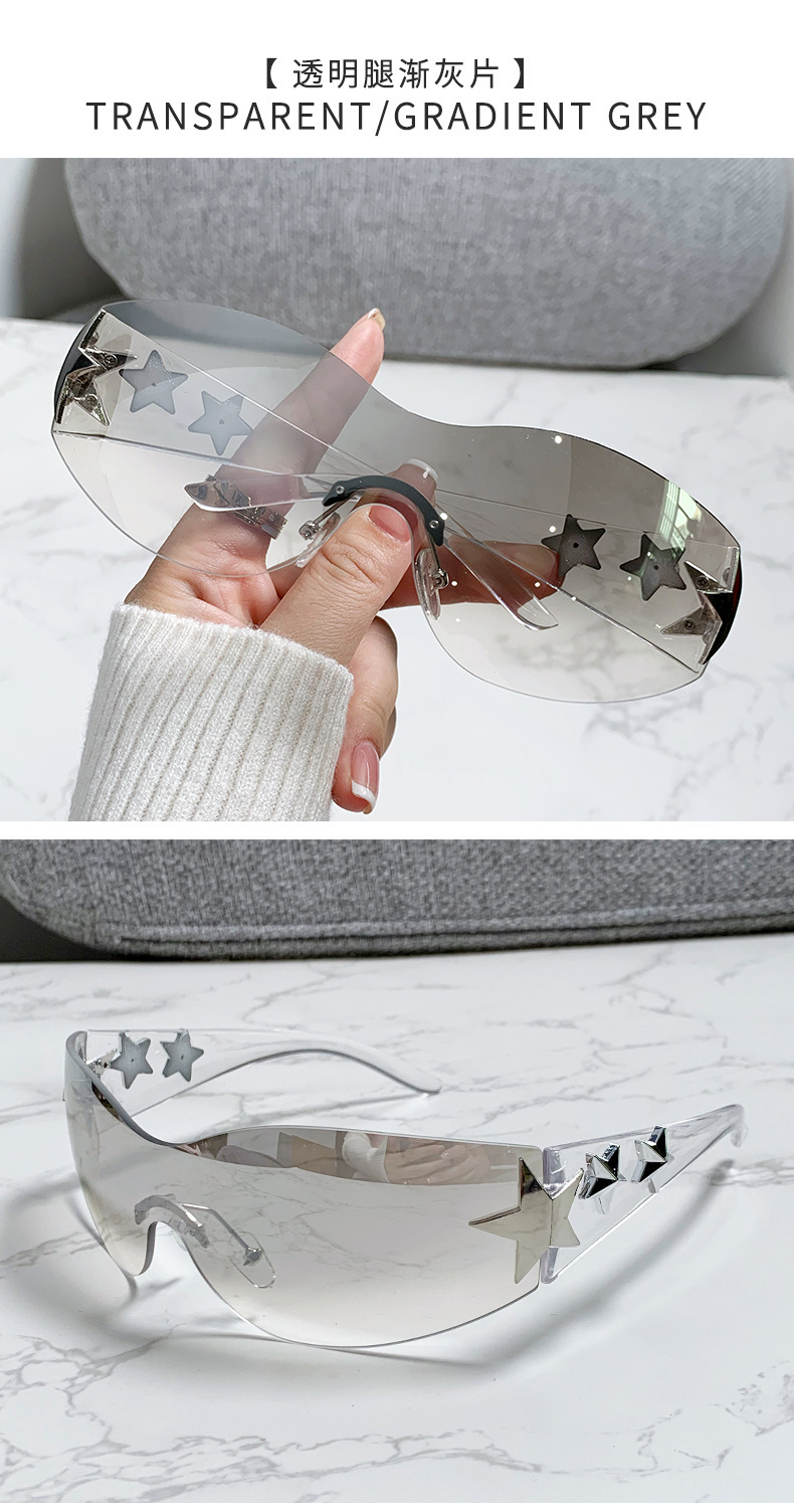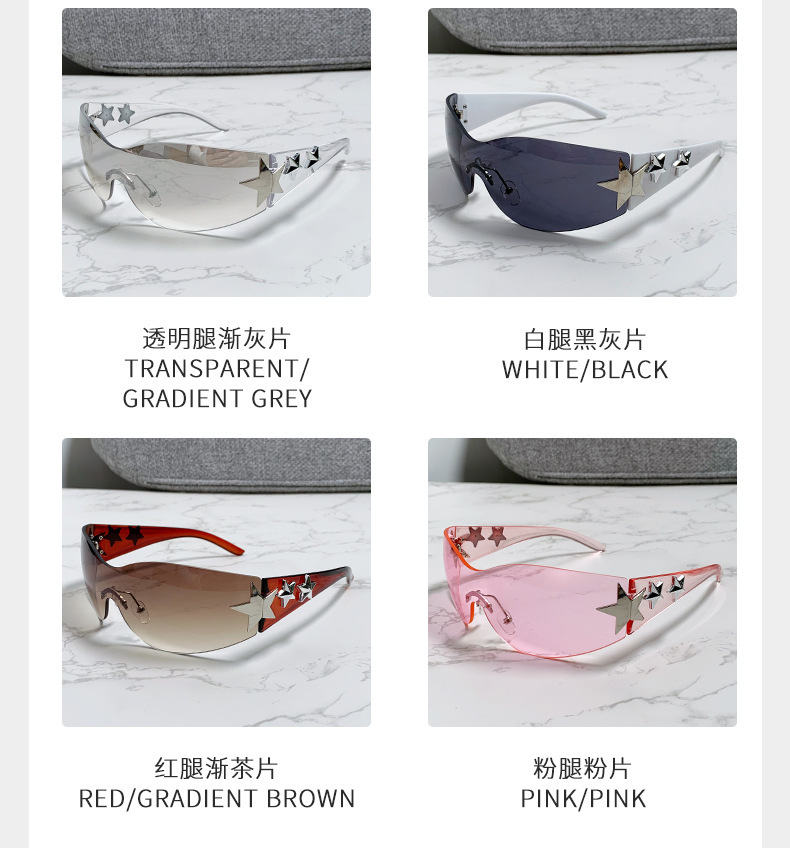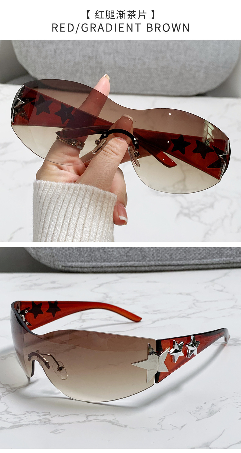 유럽과 미국의 5 개 별 y2g 안경 원피스 대형 프레임 선글라스 크로스 보더 새로운 맞춤형 프레임없는 야외 승마 선글라스