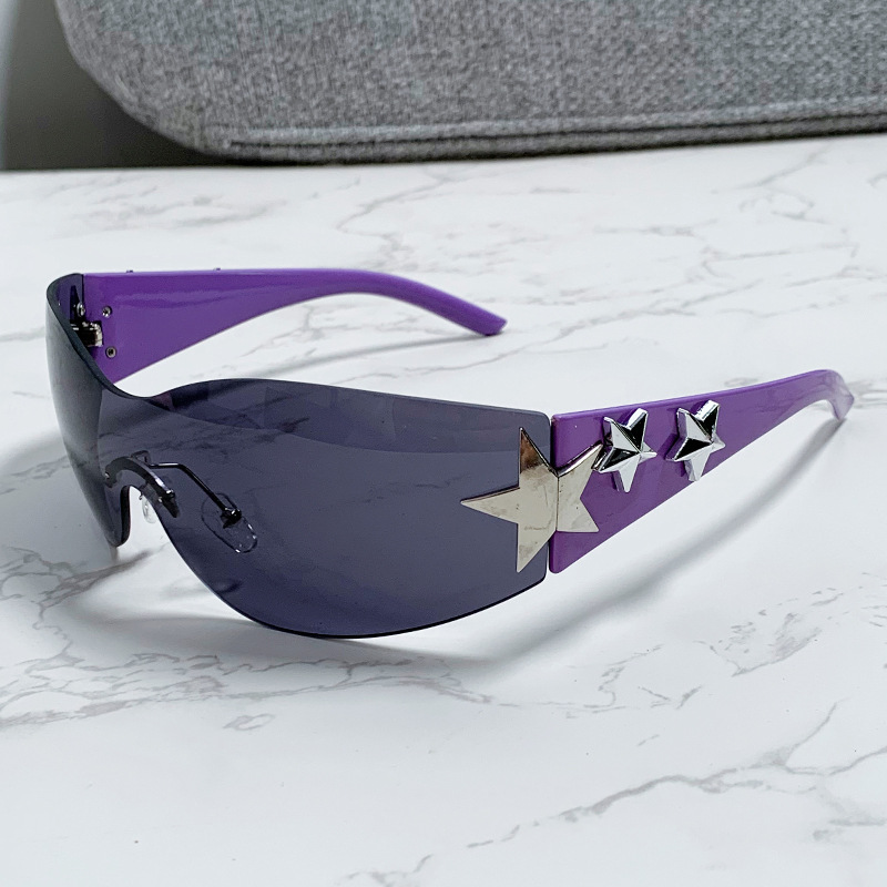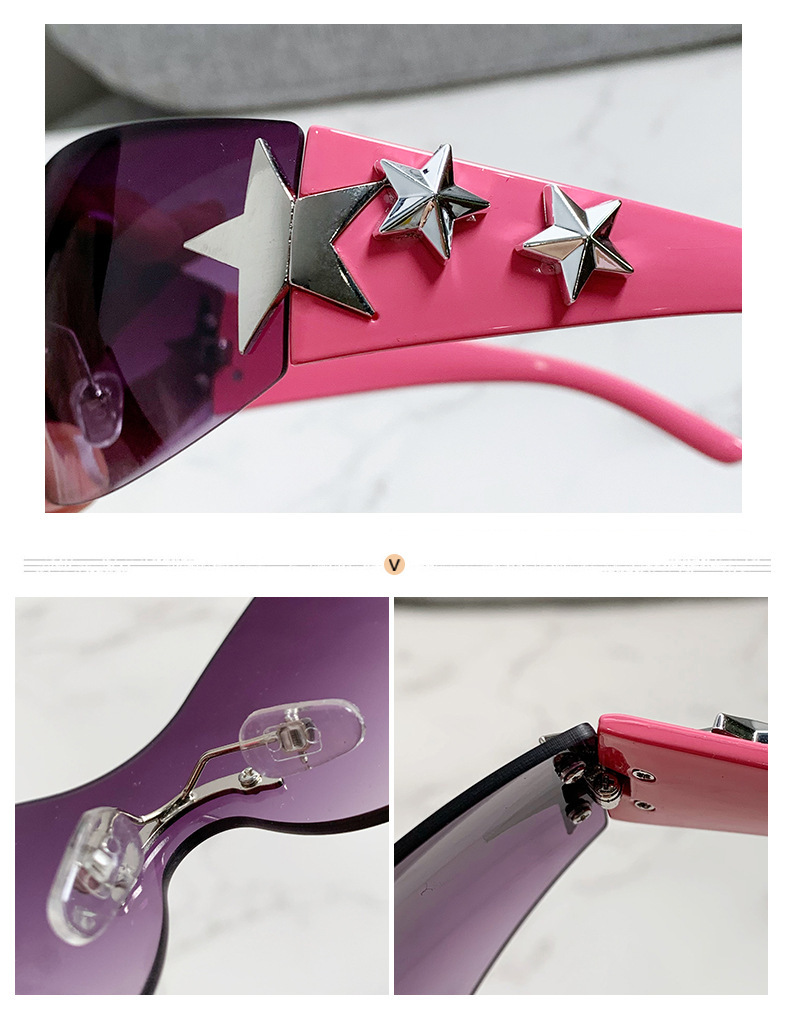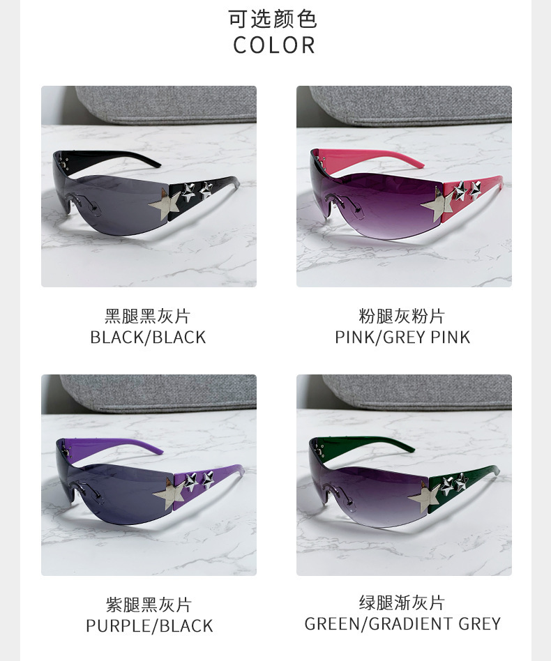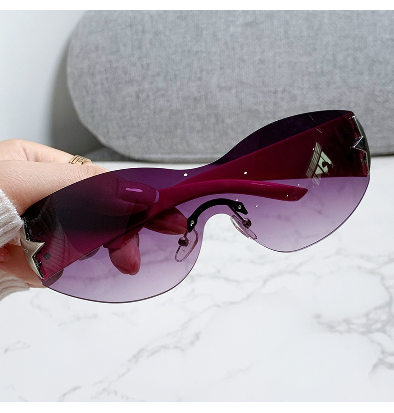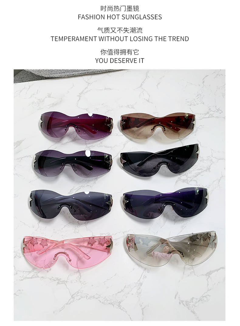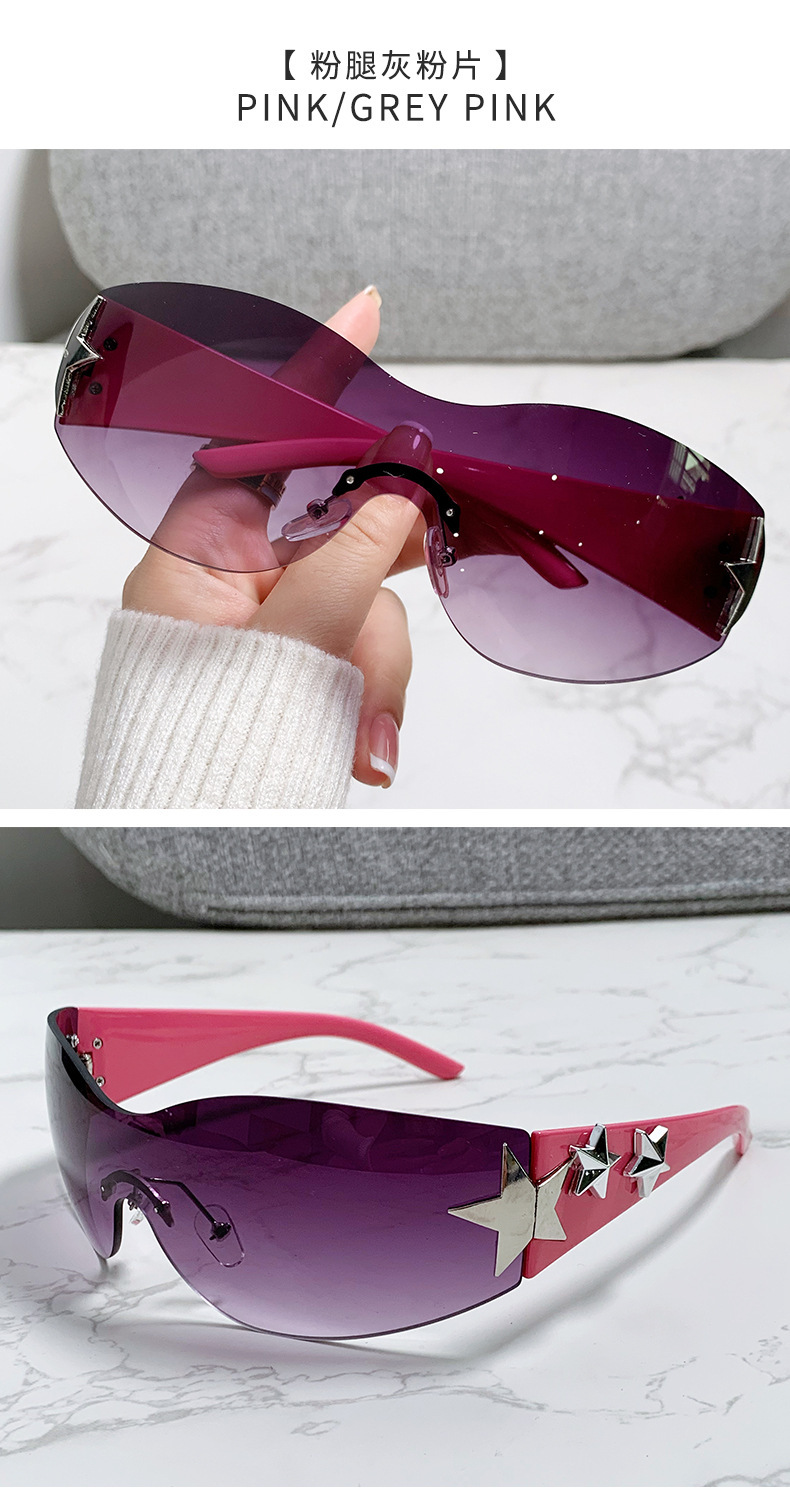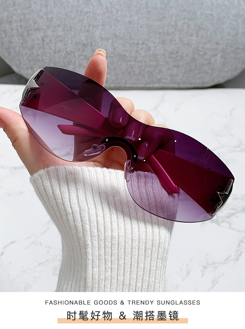 유럽과 미국의 5 개 별 y2g 안경 원피스 대형 프레임 선글라스 크로스 보더 새로운 맞춤형 프레임없는 야외 승마 선글라스