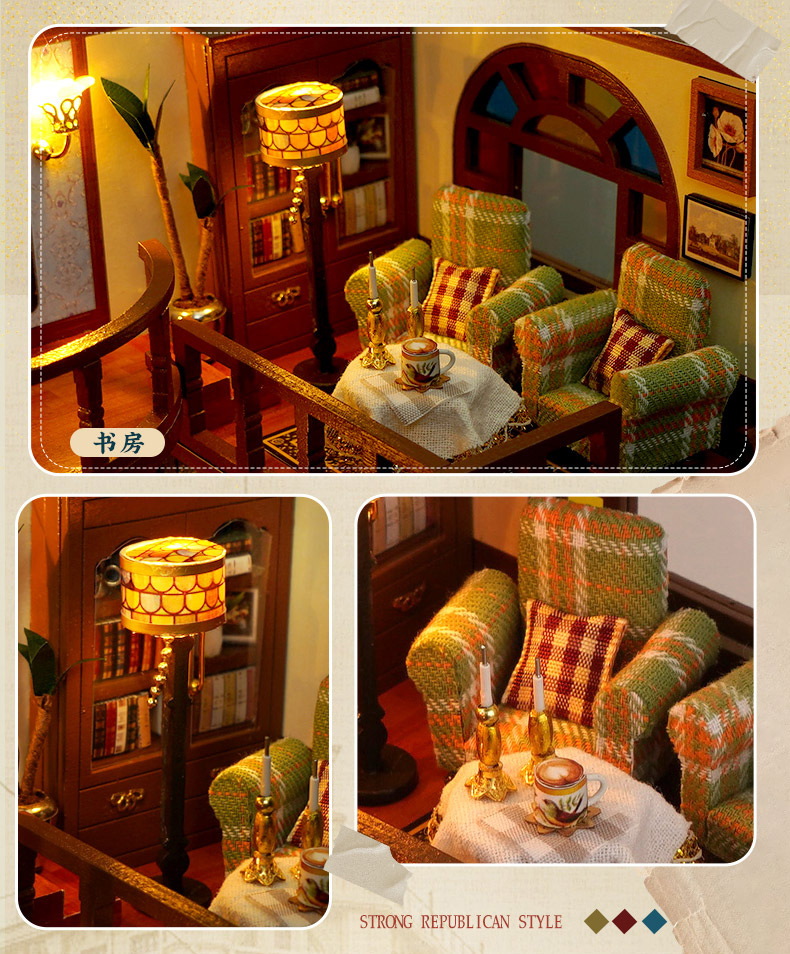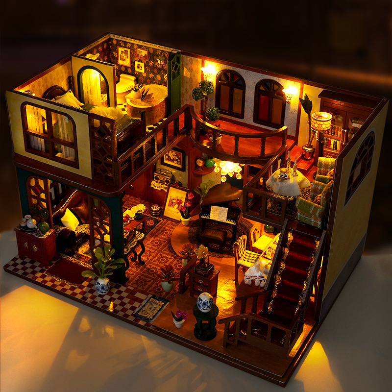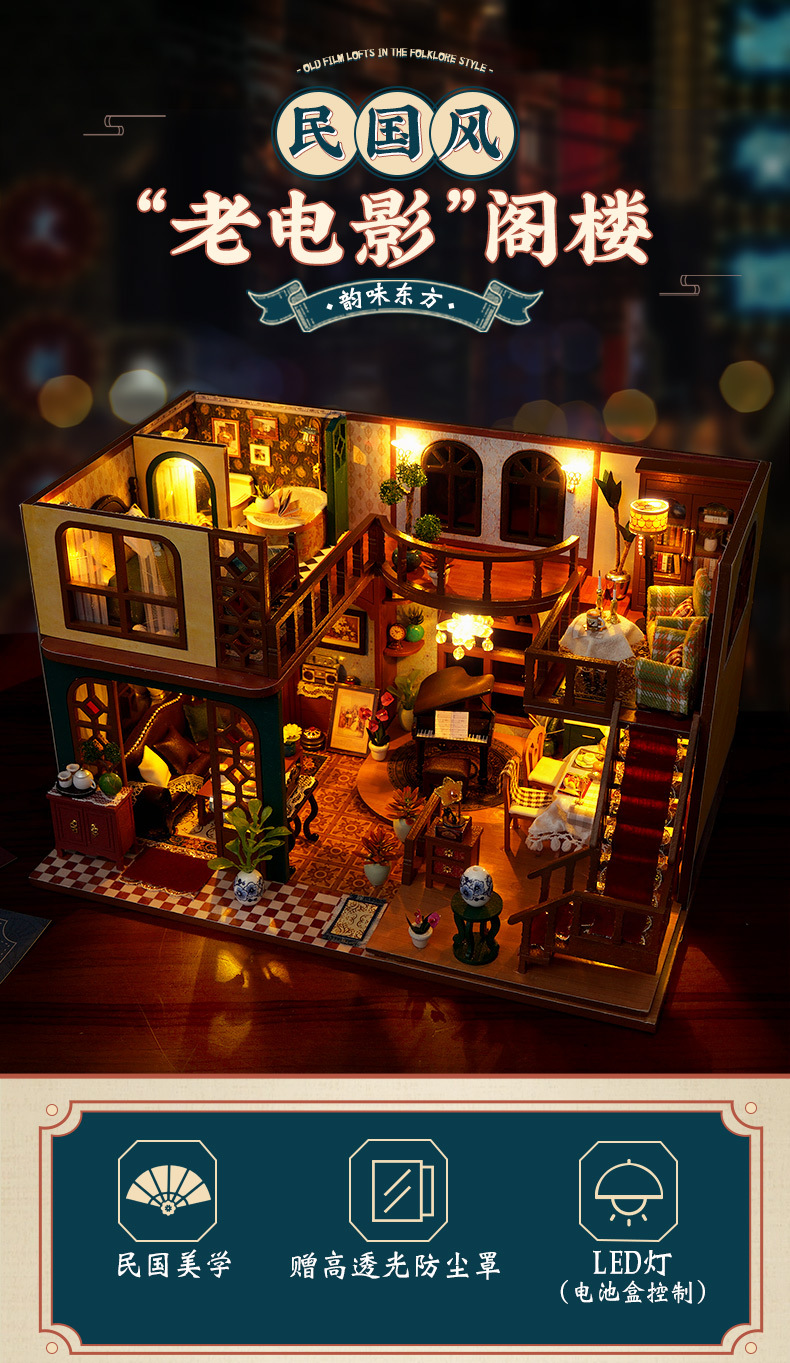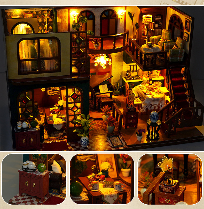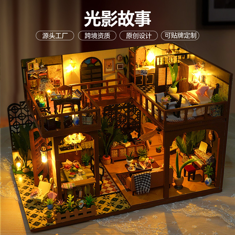 DIY 소형 주택, 중화민국 스타일 복고풍 조립식 빌라 모델, 다락방 중국식 건축 모델 하우스 장난감, 수제 선물
