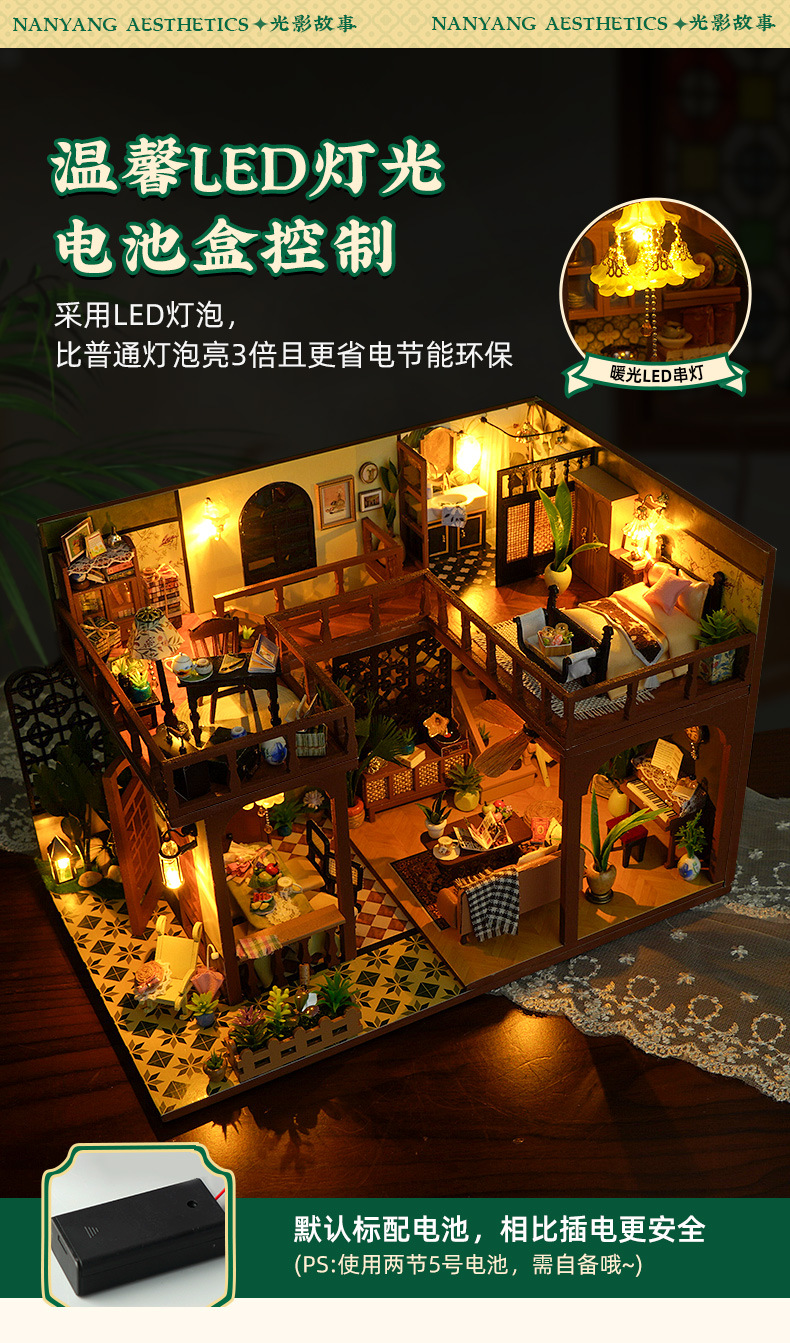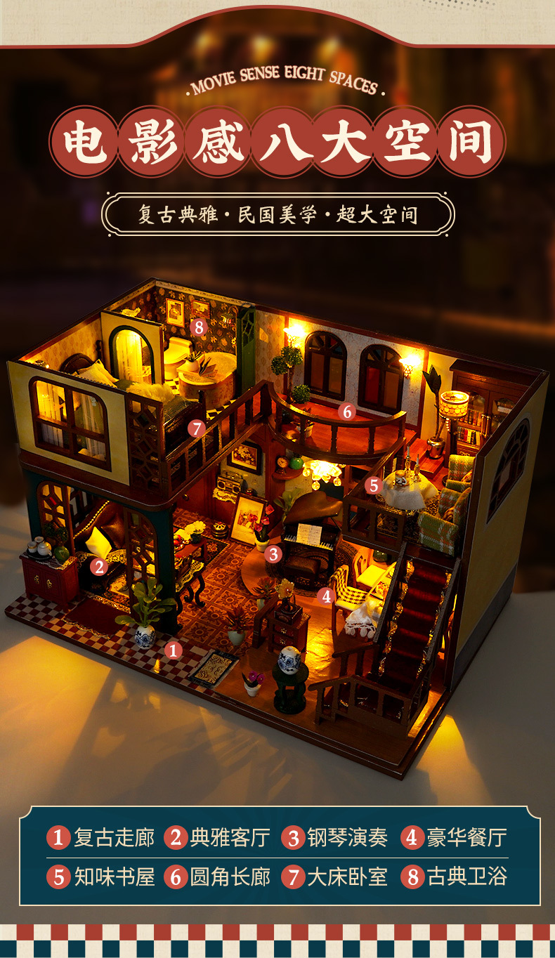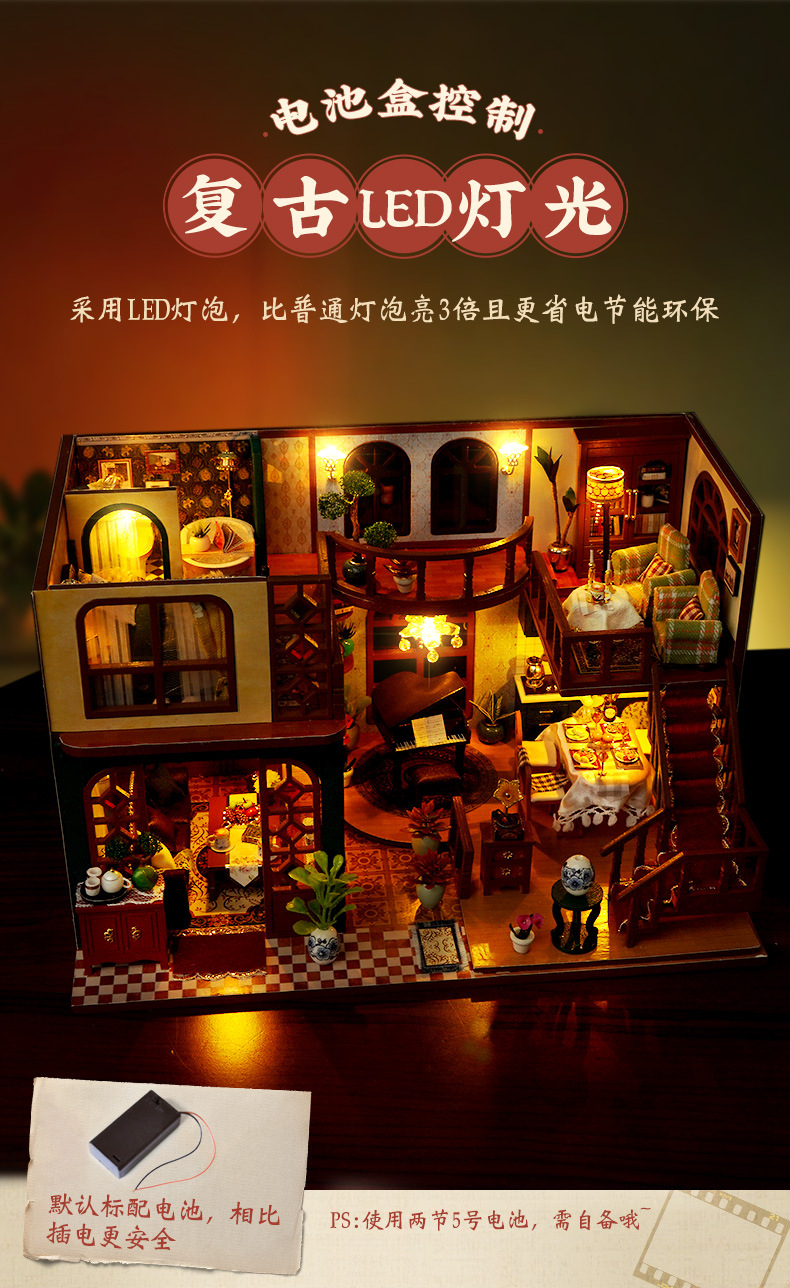 DIY 소형 주택, 중화민국 스타일 복고풍 조립식 빌라 모델, 다락방 중국식 건축 모델 하우스 장난감, 수제 선물