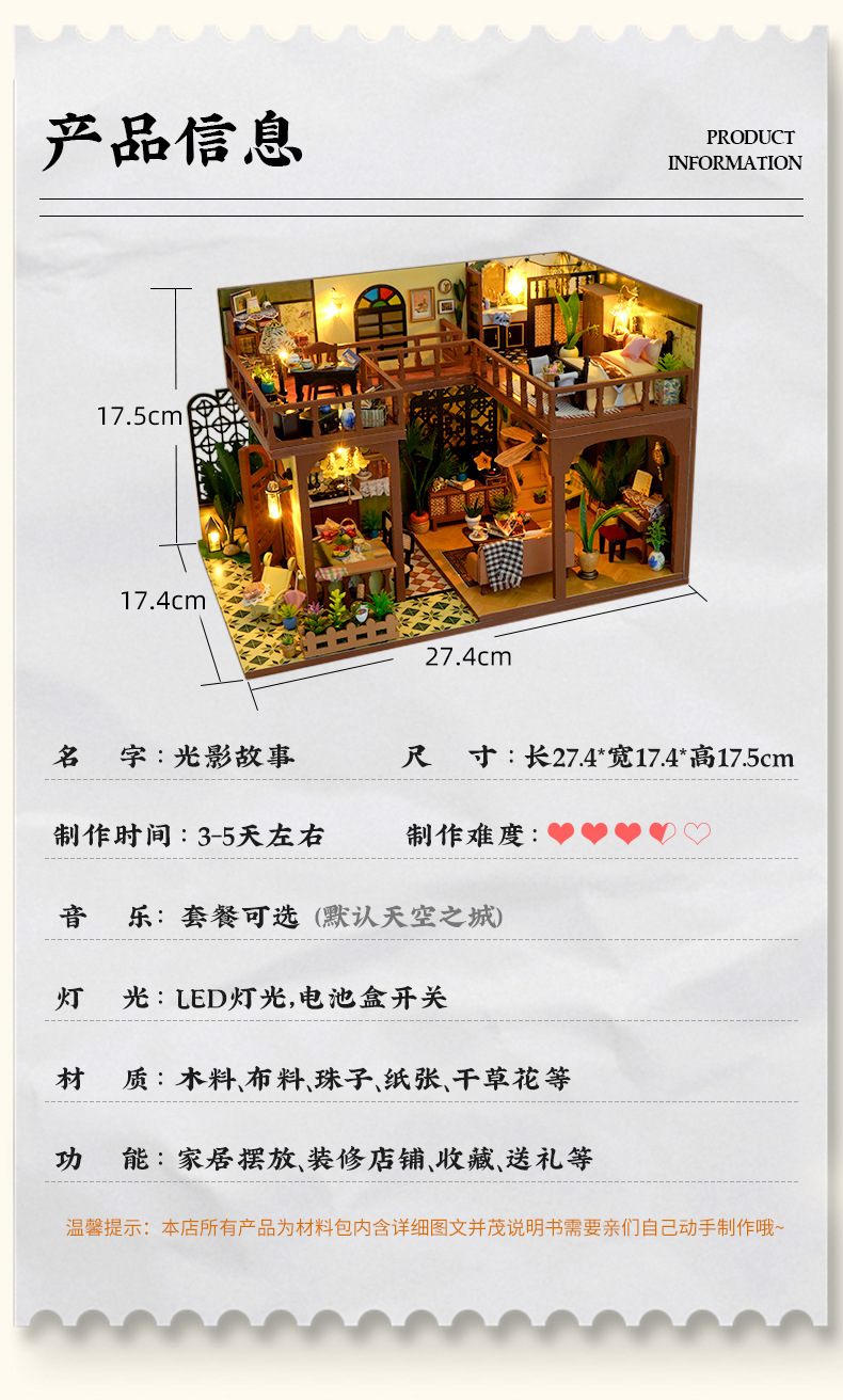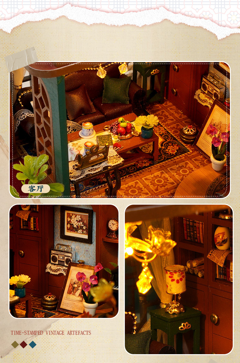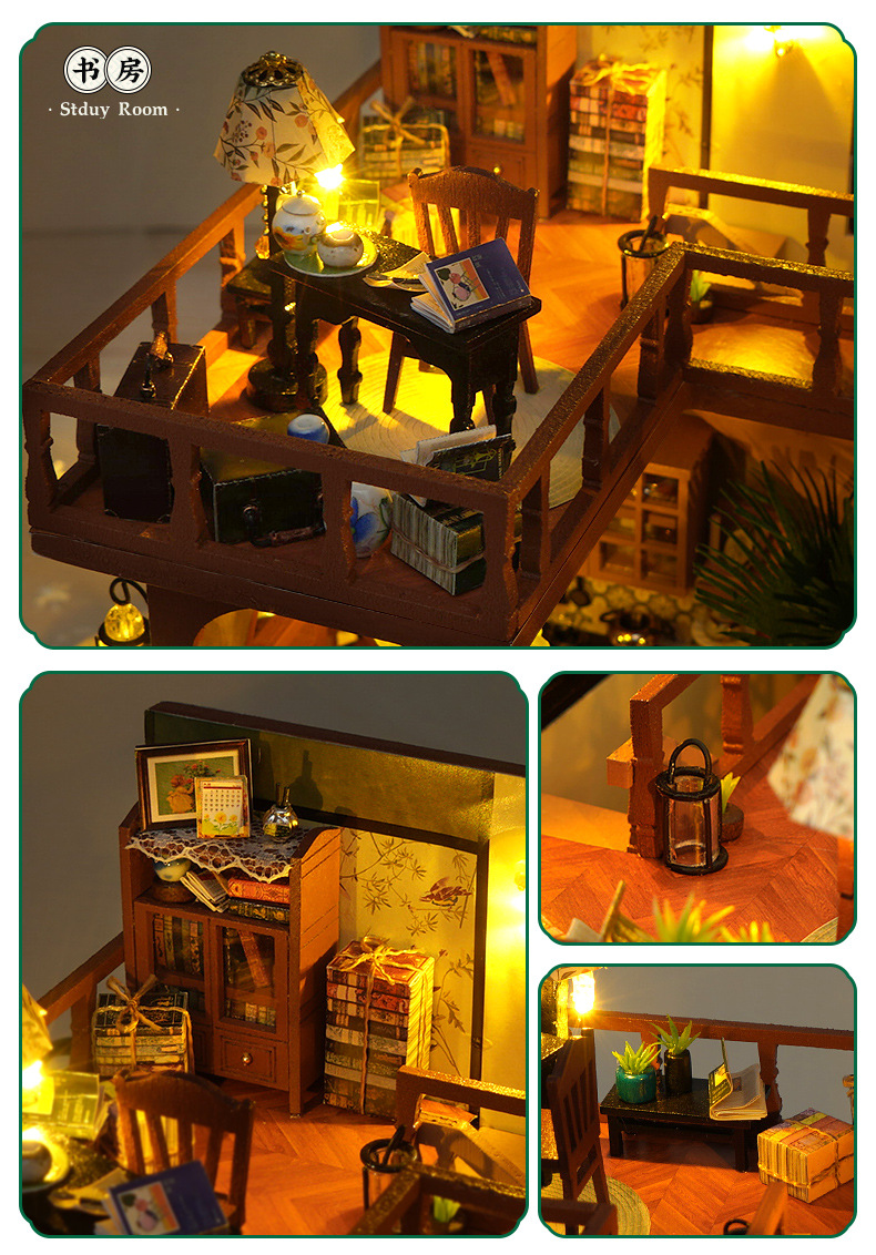 DIY 소형 주택, 중화민국 스타일 복고풍 조립식 빌라 모델, 다락방 중국식 건축 모델 하우스 장난감, 수제 선물스토어 가기