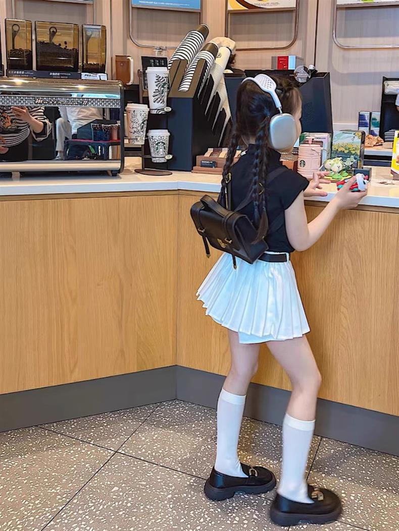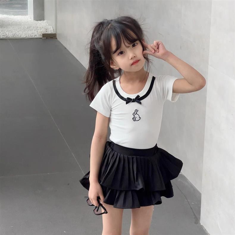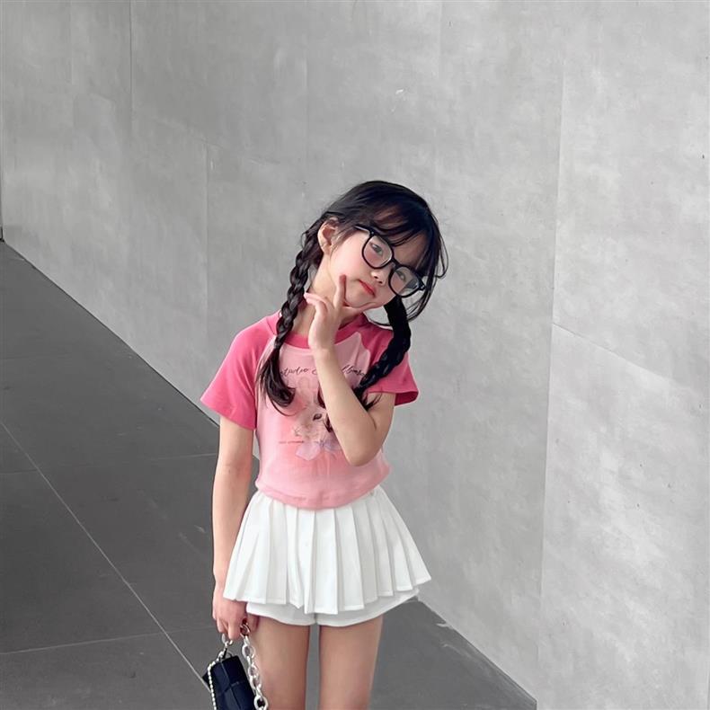 어린이 의류 새로운 여름 소녀의 노출 방지 퀼로트 주름 치마 어린이 틈새 스커트 높은 허리 슬리밍 JK 스커트