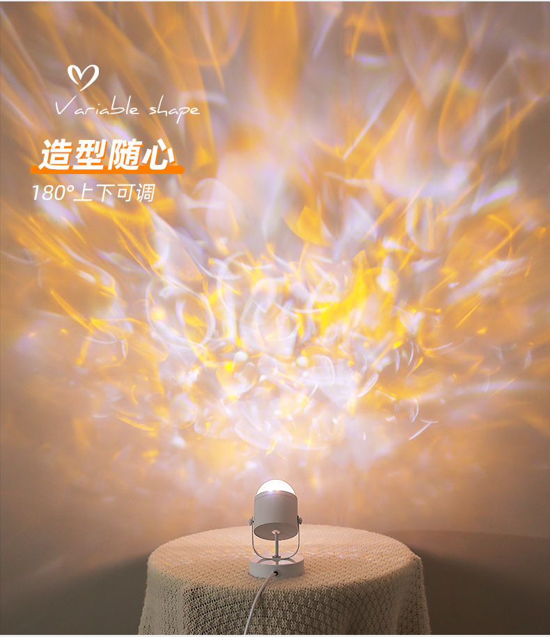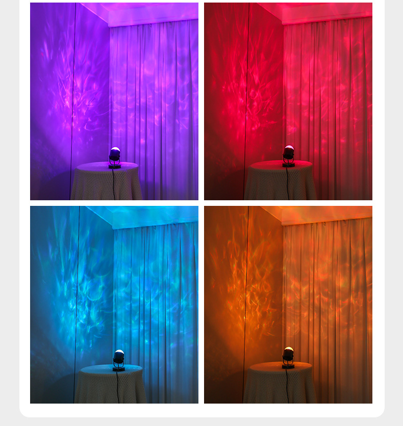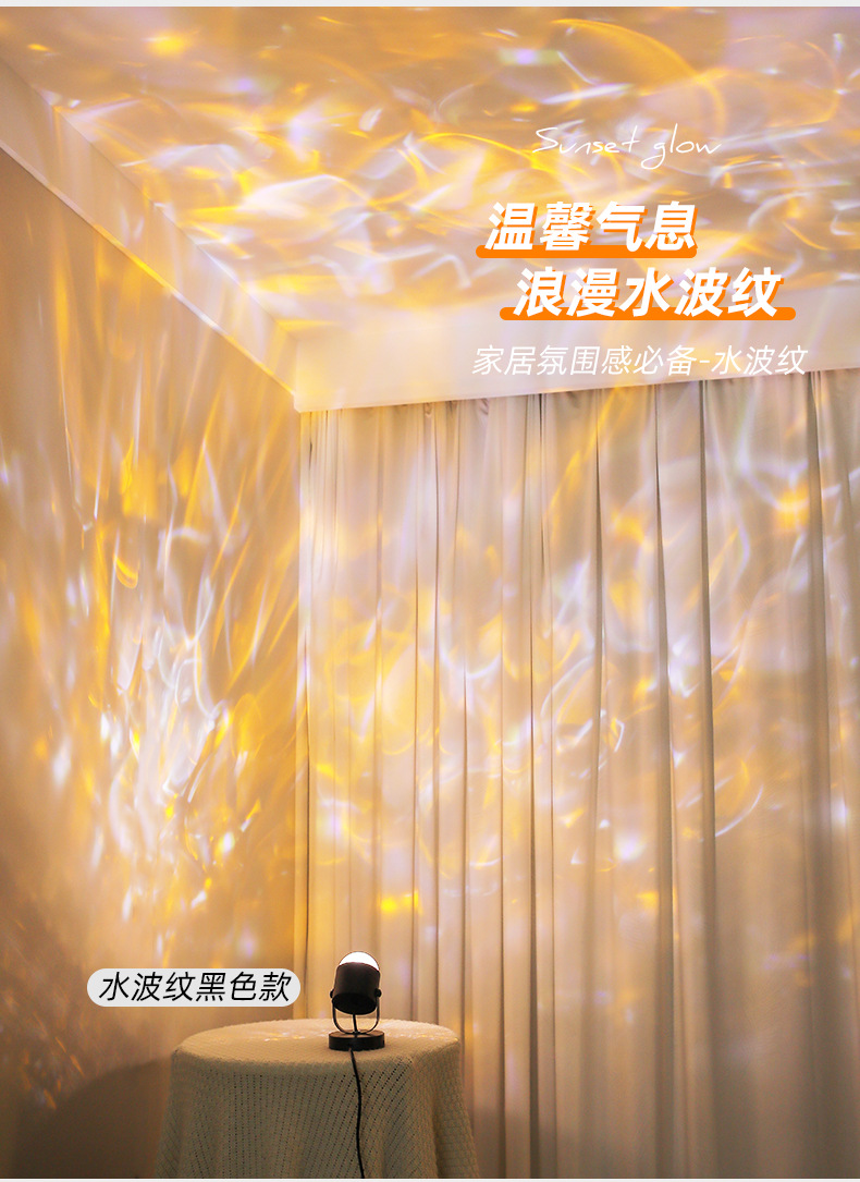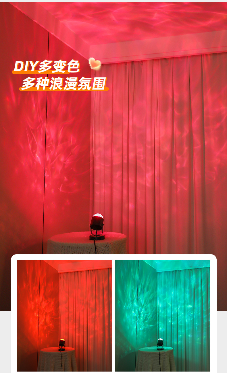 동적 회전 물 리플 헤드 램프 라이브 스튜디오 배경 장식 일몰 빨간색 테이블 램프 침실 원격 제어 물 패턴 벽 램프