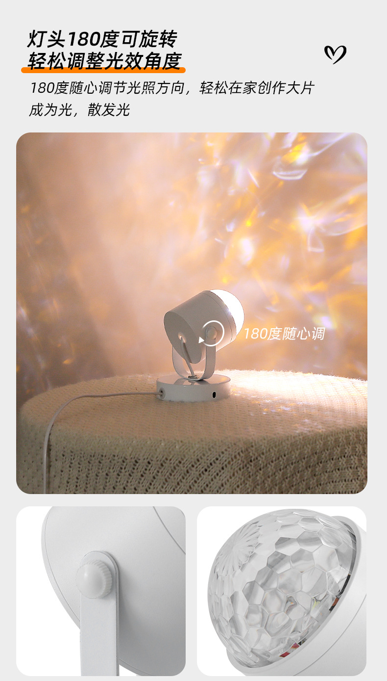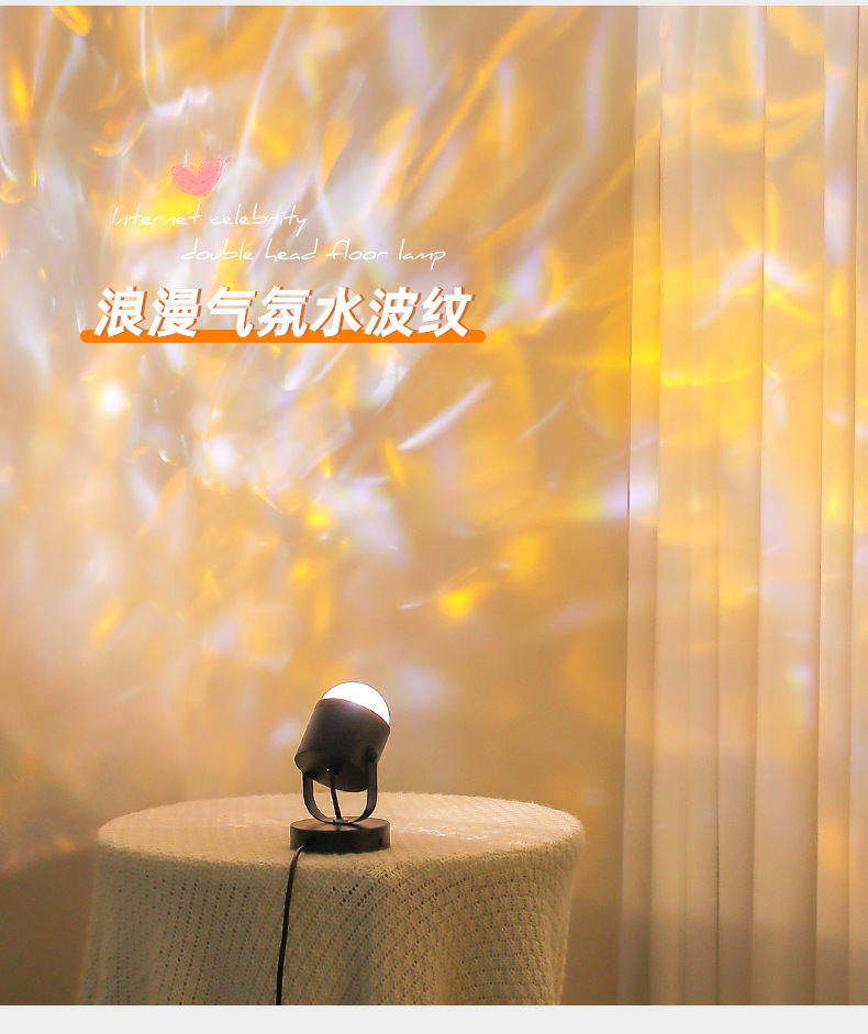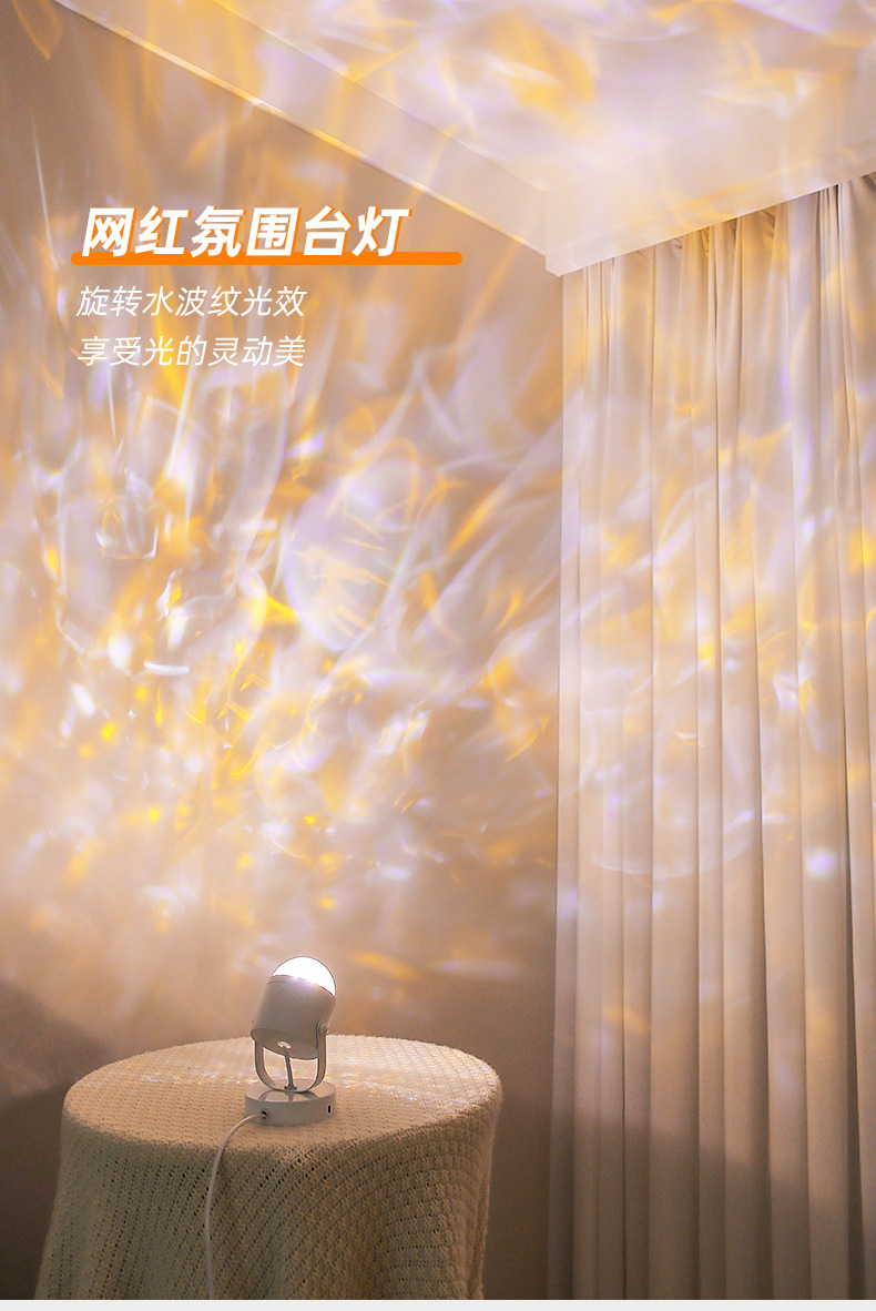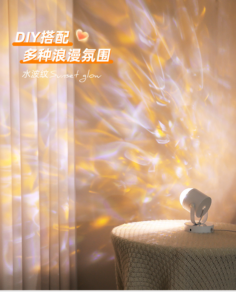 동적 회전 물 리플 헤드 램프 라이브 스튜디오 배경 장식 일몰 빨간색 테이블 램프 침실 원격 제어 물 패턴 벽 램프