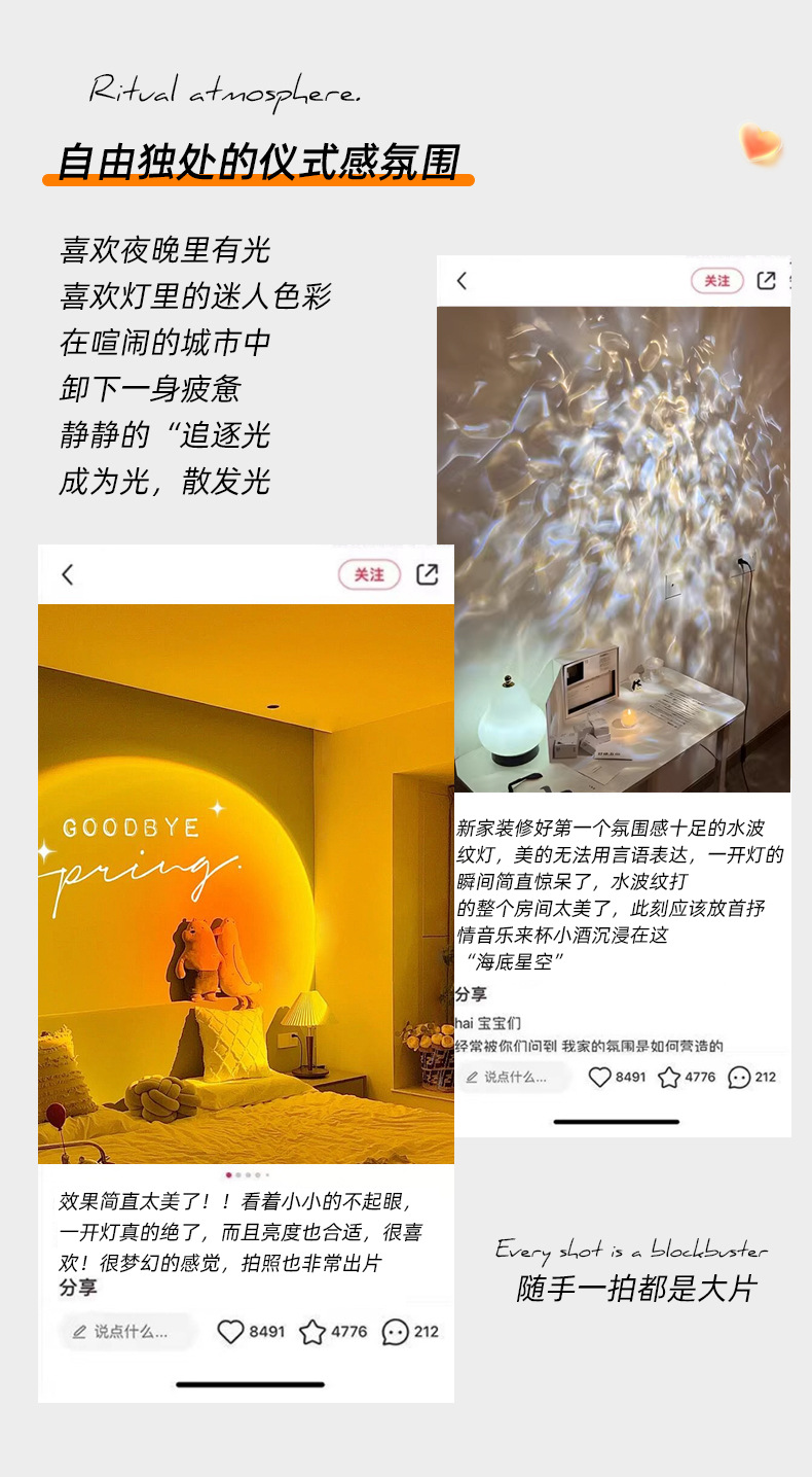 동적 회전 물 리플 헤드 램프 라이브 스튜디오 배경 장식 일몰 빨간색 테이블 램프 침실 원격 제어 물 패턴 벽 램프스토어 가기