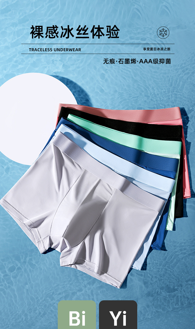 새로운 아이스 실크 남성 속옷 초박형 미드 웨이스트 여름 복서 통기성 원활한 복서 반바지 원피스 배달