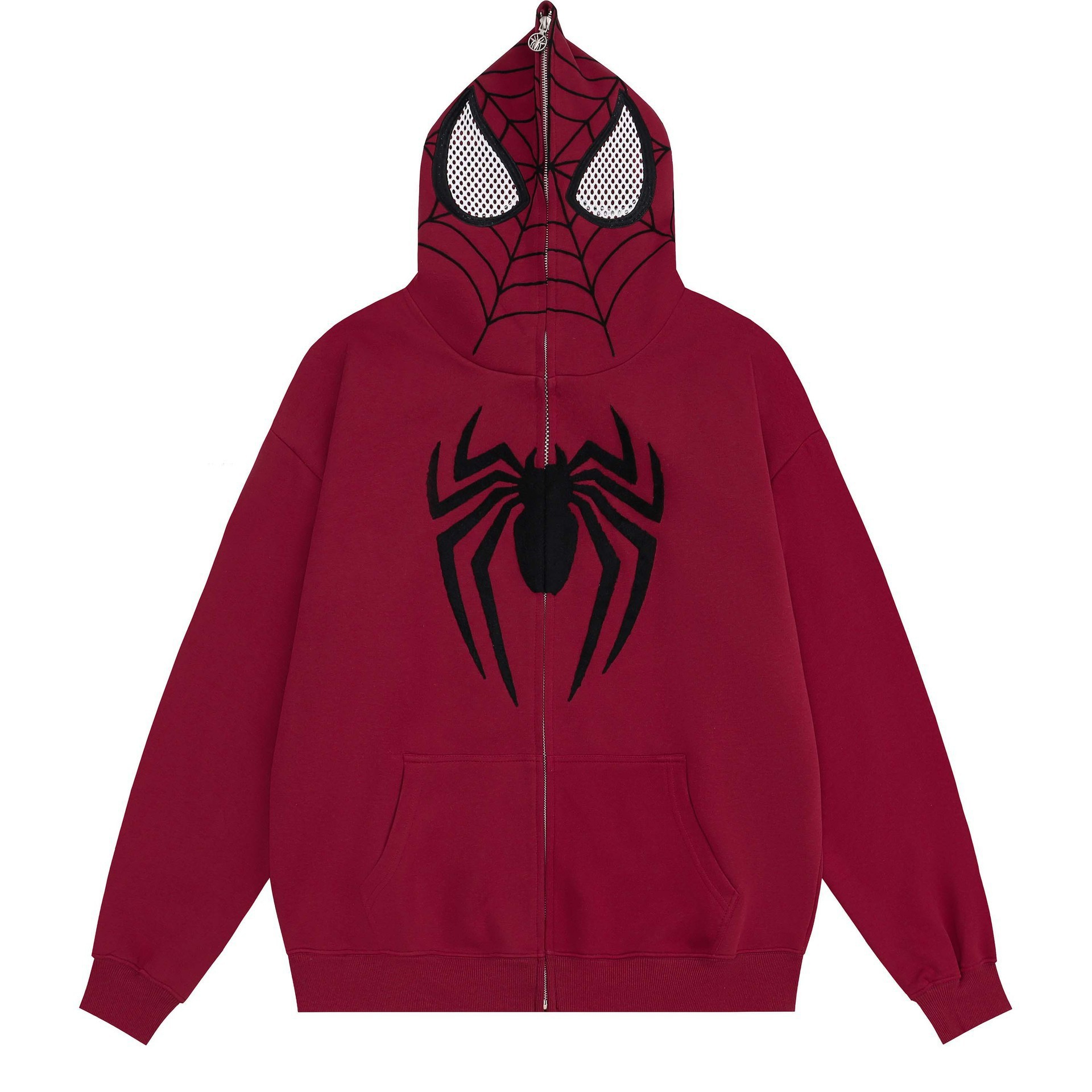미국 스타일 레트로 틈새 디자인 스파이더 맨 인쇄 후드 스웨터 지퍼 카디건 가을 거리 느슨한 재킷 남성용