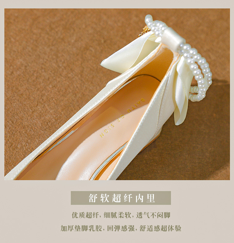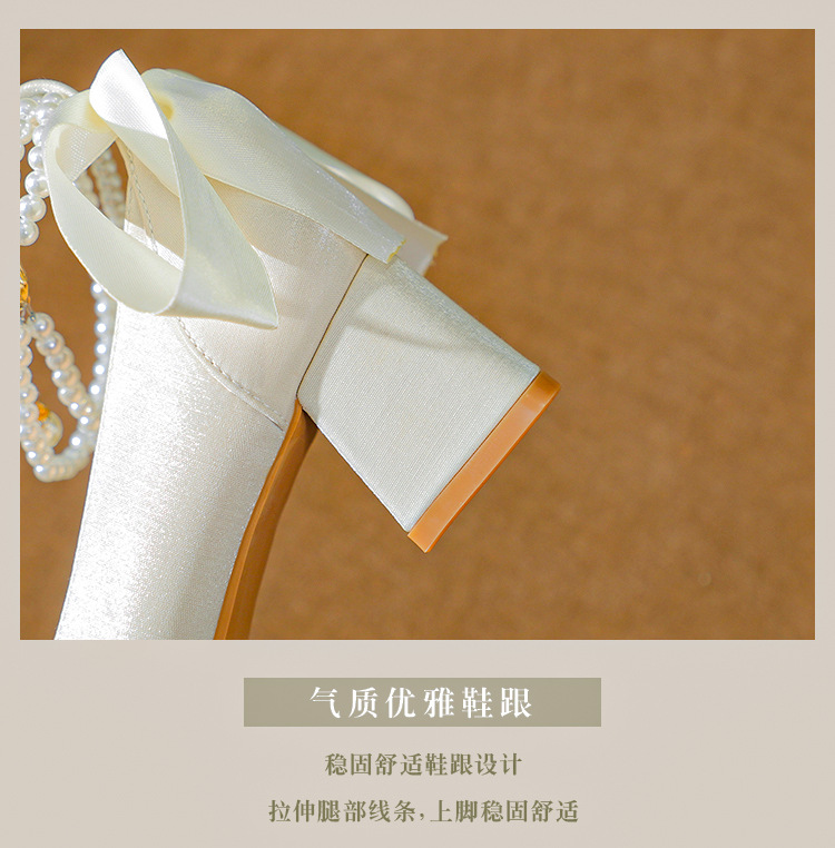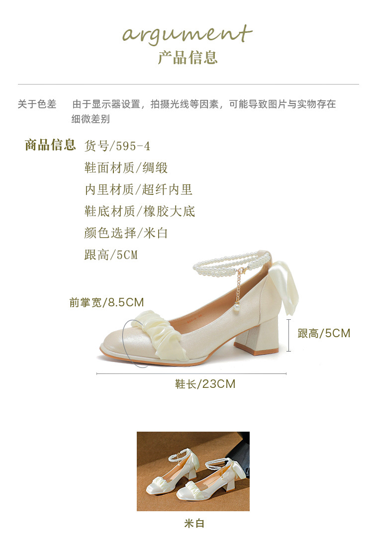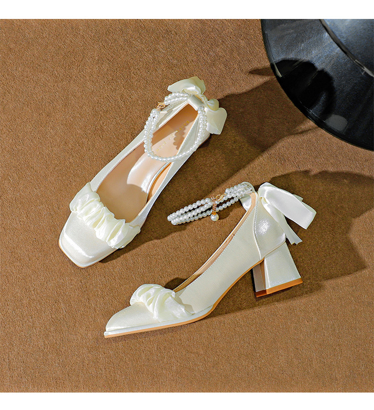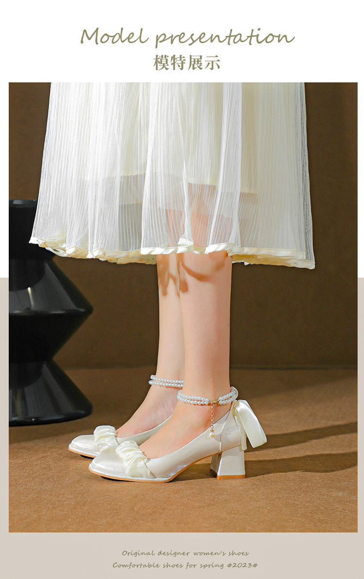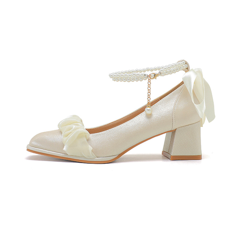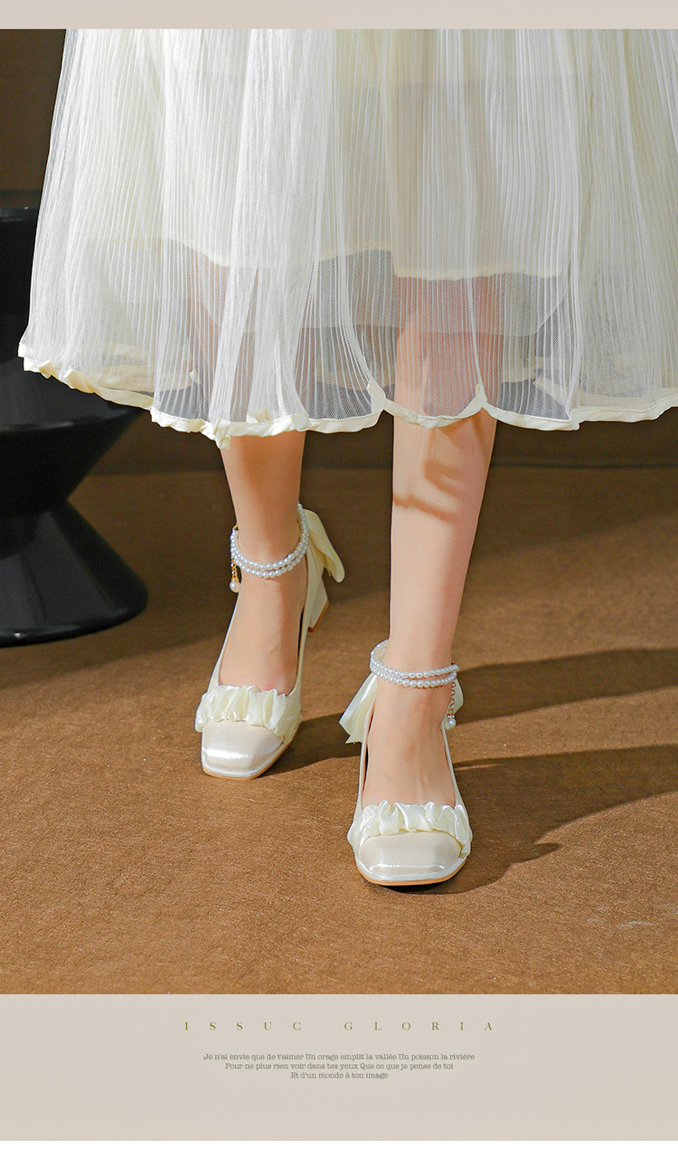 푸 스프링 싱글 레이어 신발 여성 청키 힐 하이힐 2024 메리 제인 신발 진주 스트랩 스퀘어 토 패션 캐주얼 신발