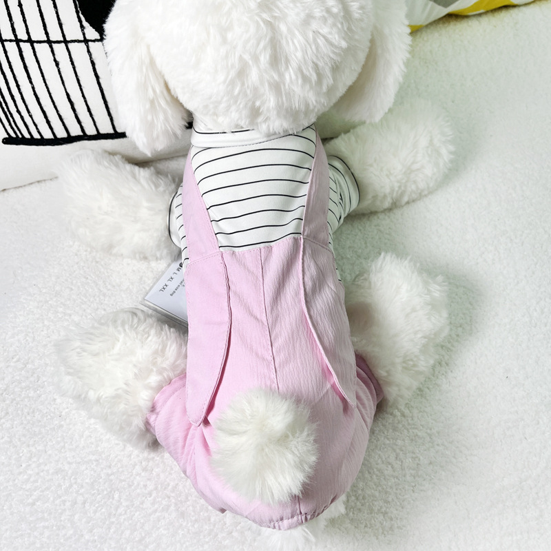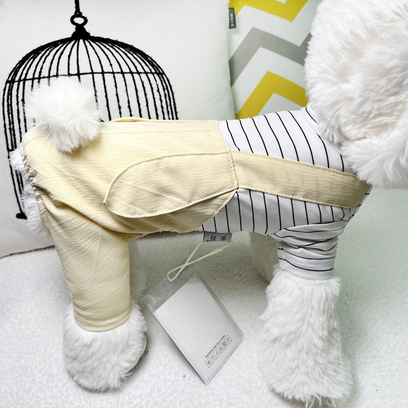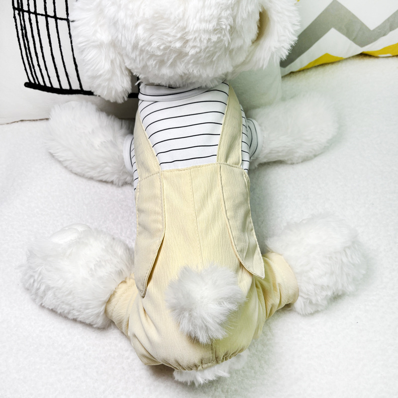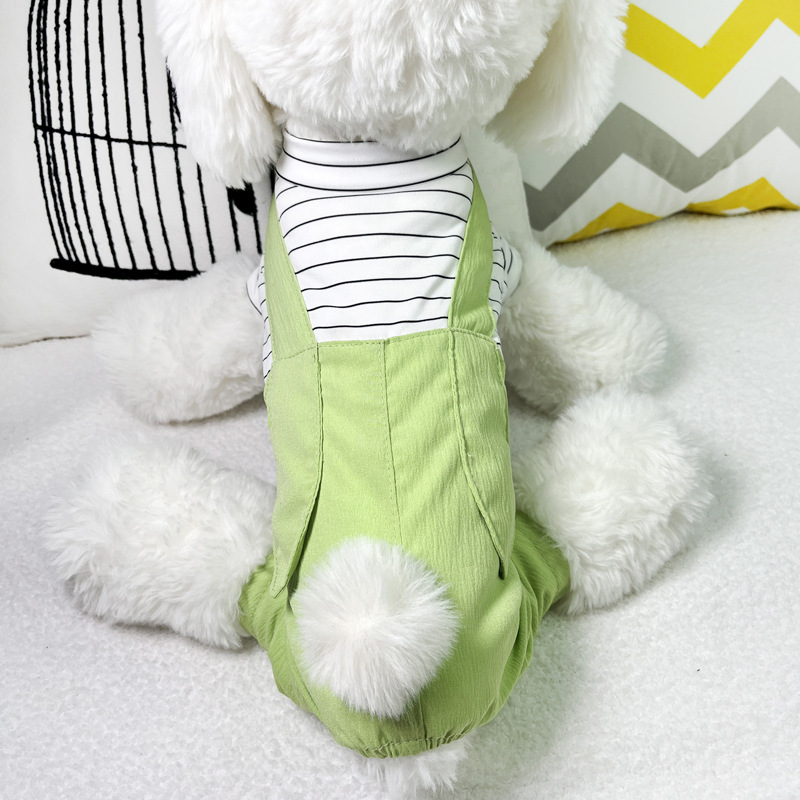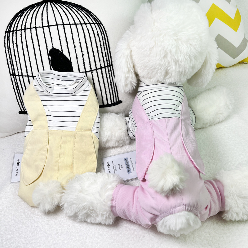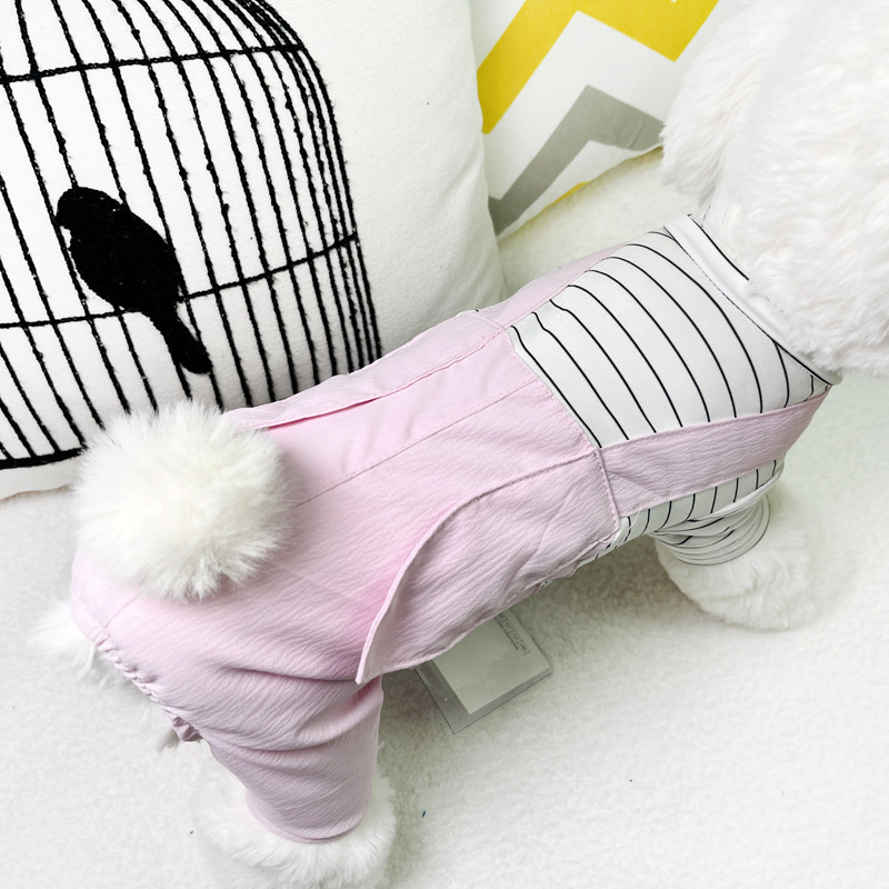 애완 동물 옷 봄과 여름 새로운 가짜 투피스 테디 베어 강아지 편안한 네 다리 옷 애완 동물 고양이 홈 웨어