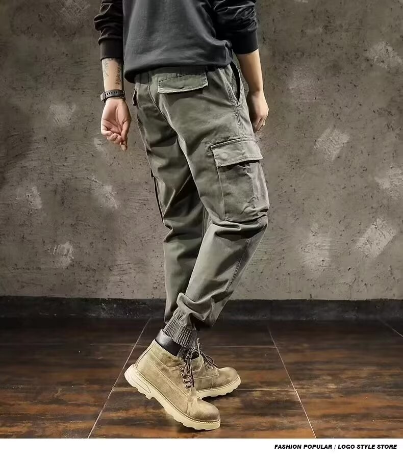 대외 무역 새로운 군사 바지 남성 패션 브랜드 느슨한 발목 묶인 멀티 포켓 바지 야외 등산 캐주얼 바지 남성