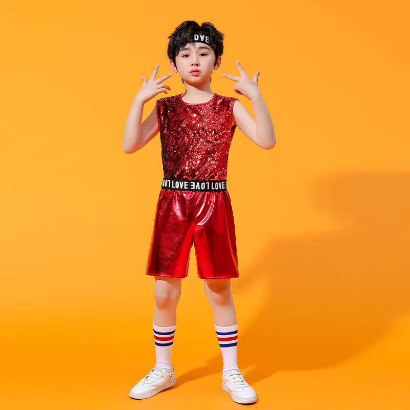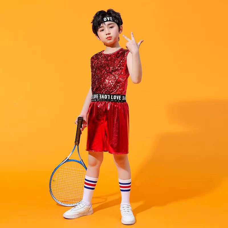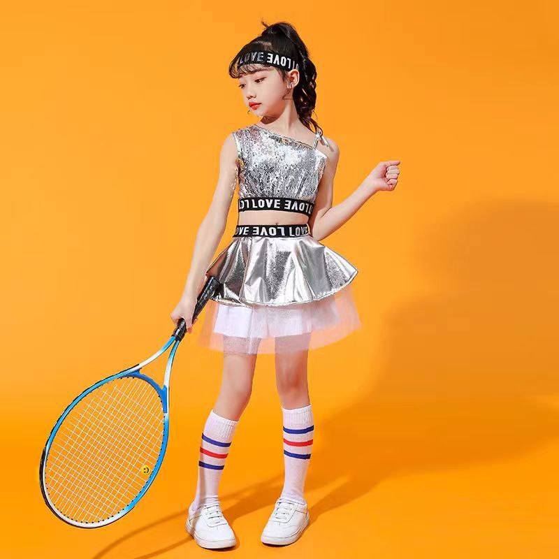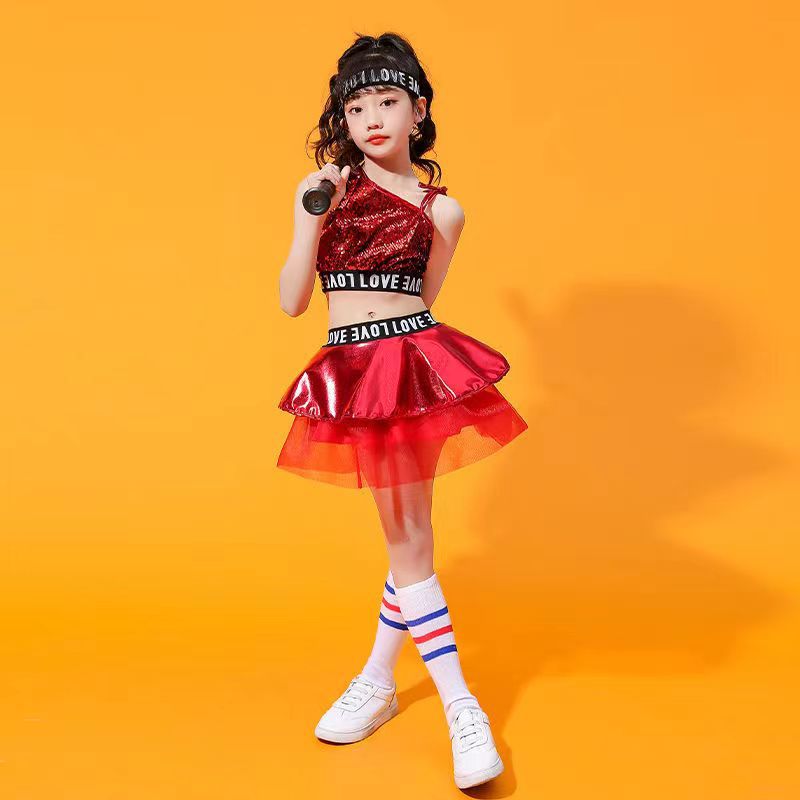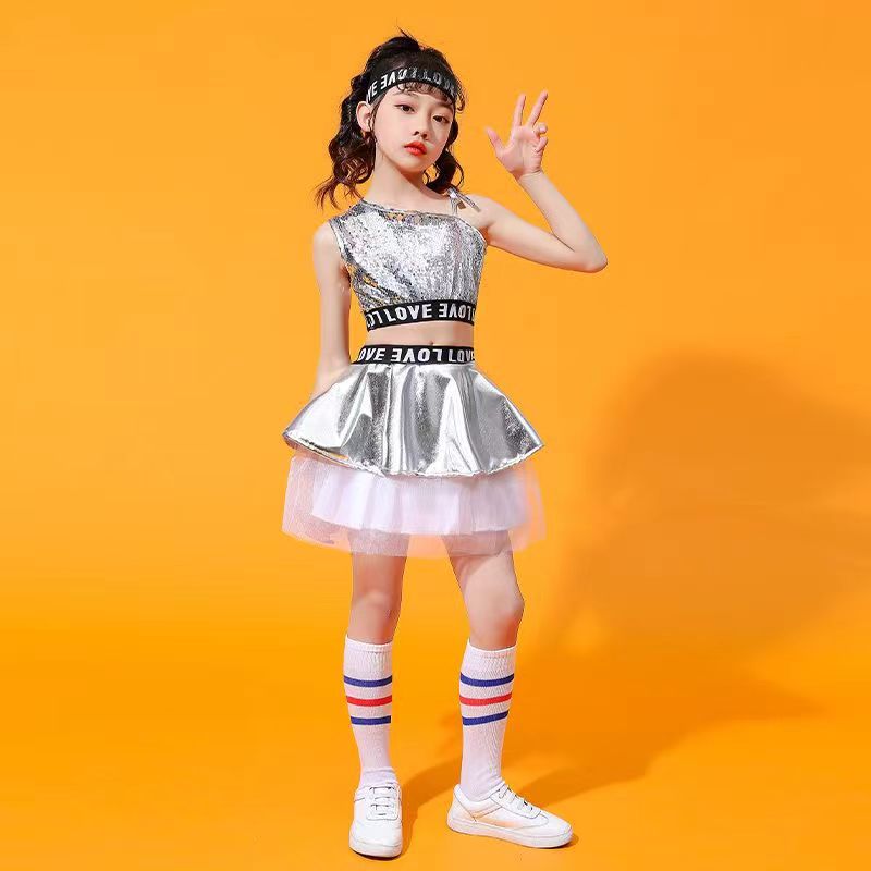 어린이 소년 소녀 공연 의류 힙합 재즈 댄스 치어 리더 현대 힙합 스팽글 패션 의류 새로운 세트