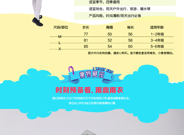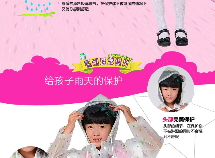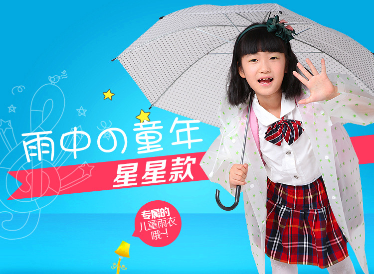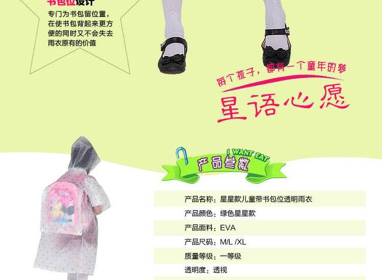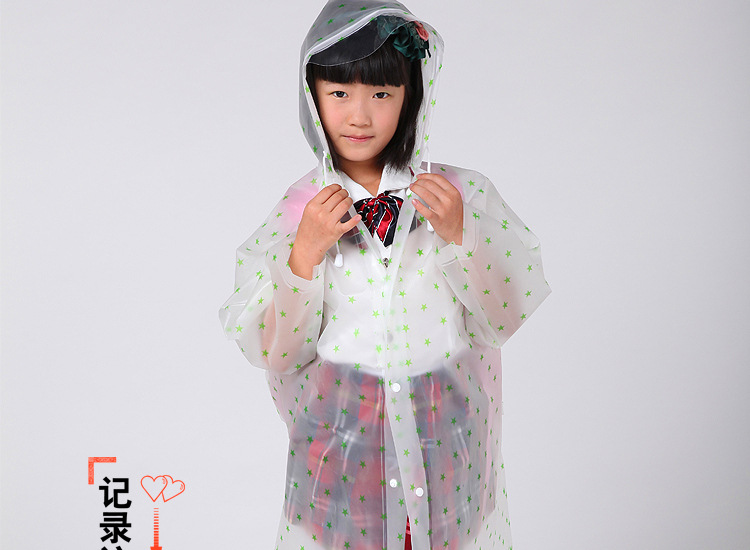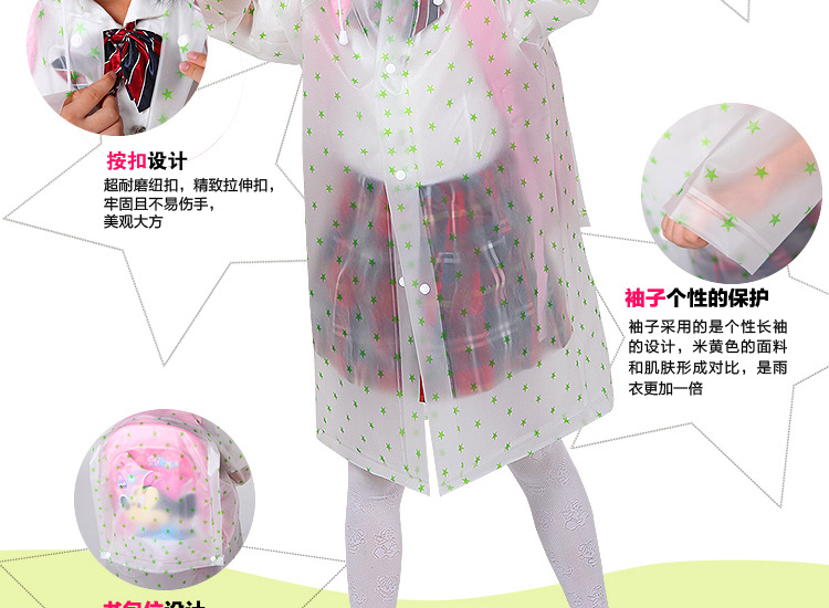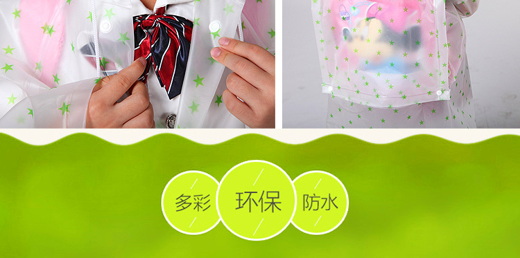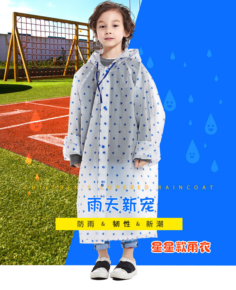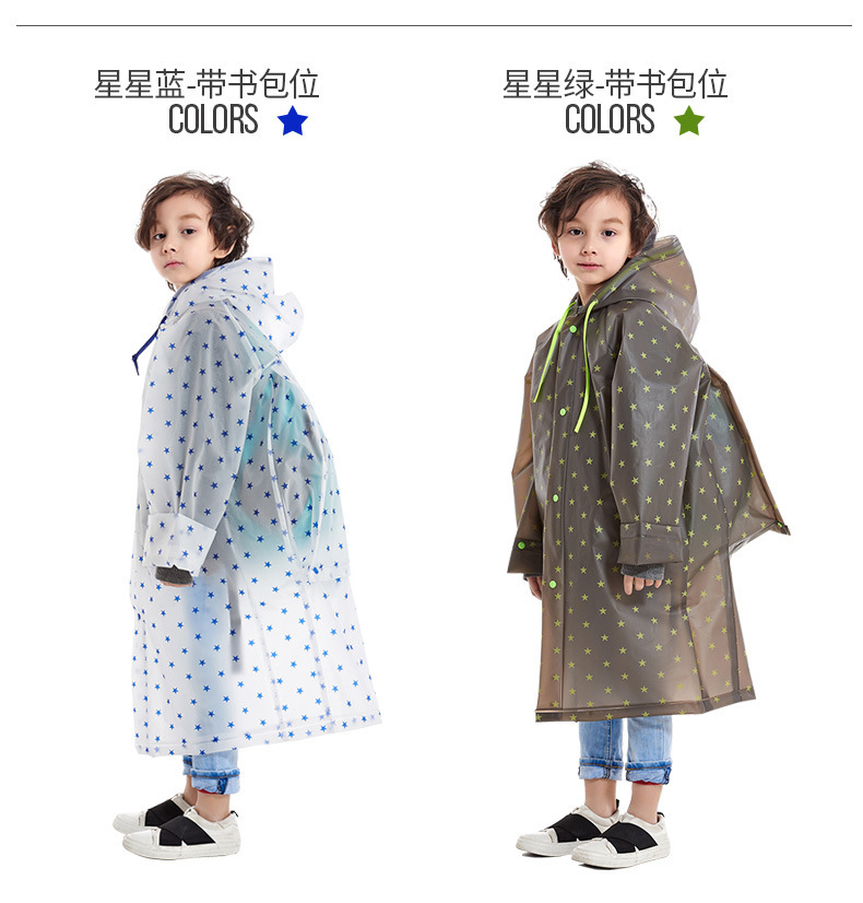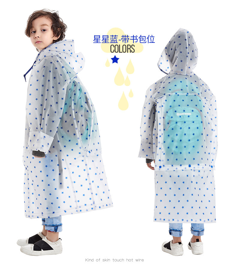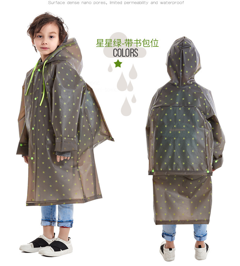 크로스보더 학생용 레인코트, 책가방, EVA 프린트 버튼, 챙이 큰 중간 길이 레인코트, 어린이 야외 하이킹스토어 가기