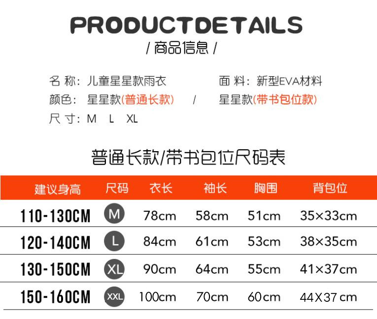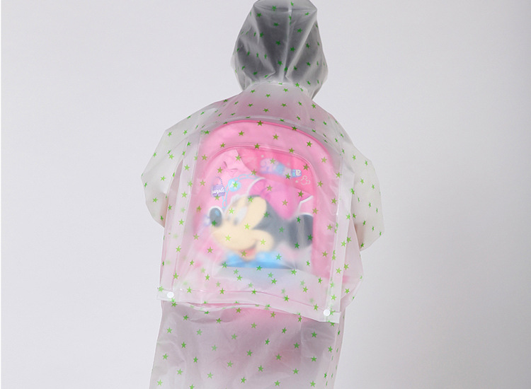 크로스보더 학생용 레인코트, 책가방, EVA 프린트 버튼, 챙이 큰 중간 길이 레인코트, 어린이 야외 하이킹