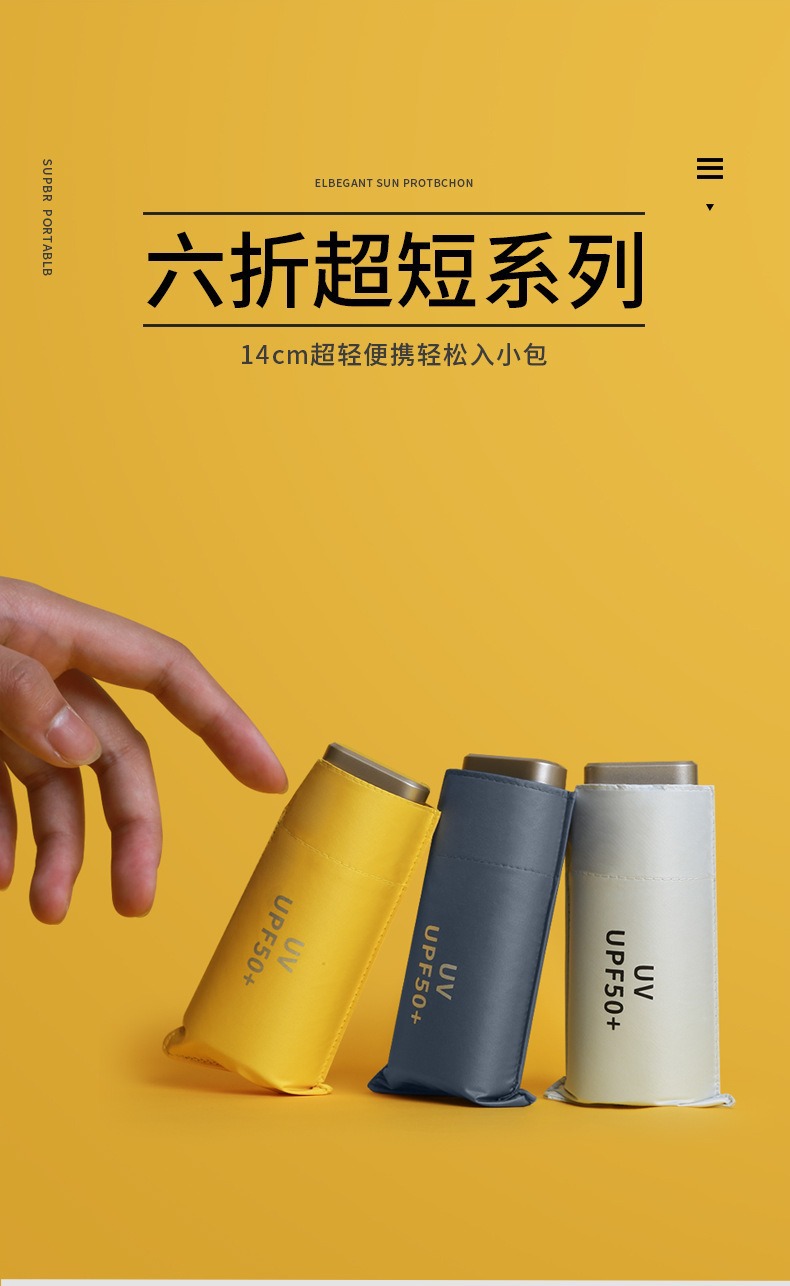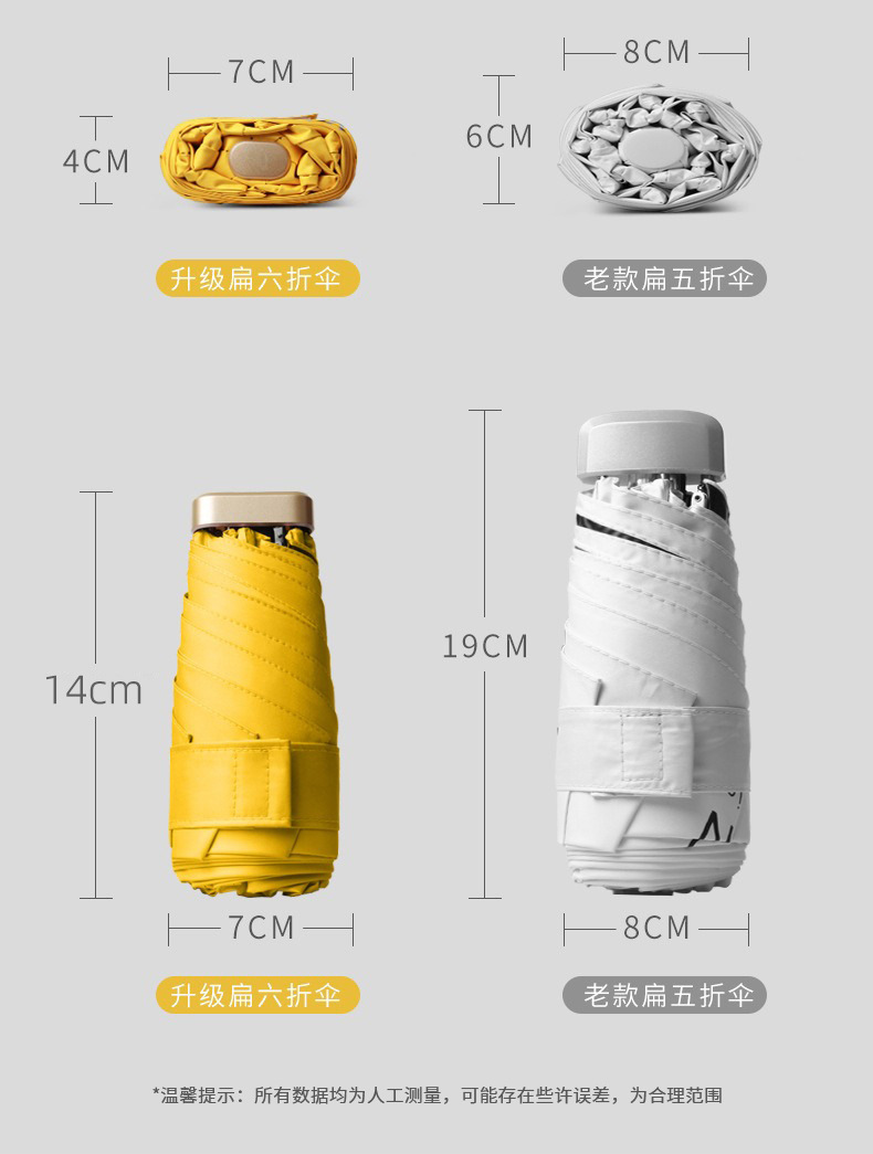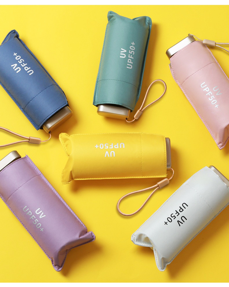 6 배 미니 소형 휴대용 포켓 우산 태양 방지 자외선 방지 높은 모양의 태양 우산 비 방지 이중 사용 우산