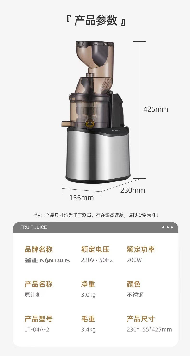 국경 스테인레스 스틸 새로운 과즙 주스 잔류 물 분리 과즙 기 가정용 자동 크고 작은 구경 선물 배달스토어 가기