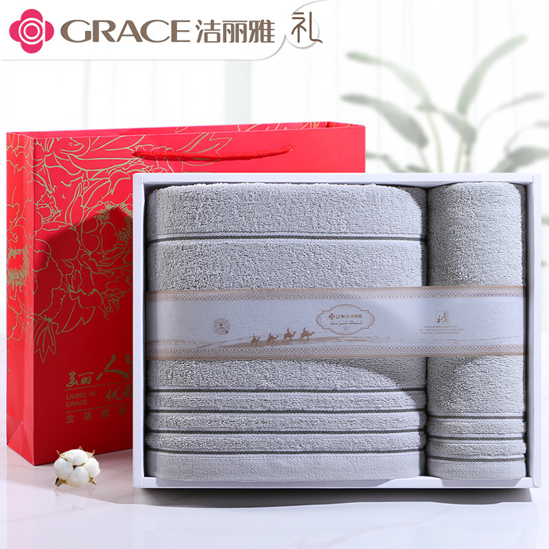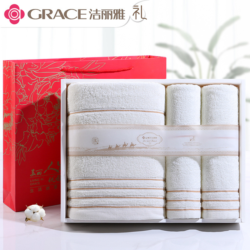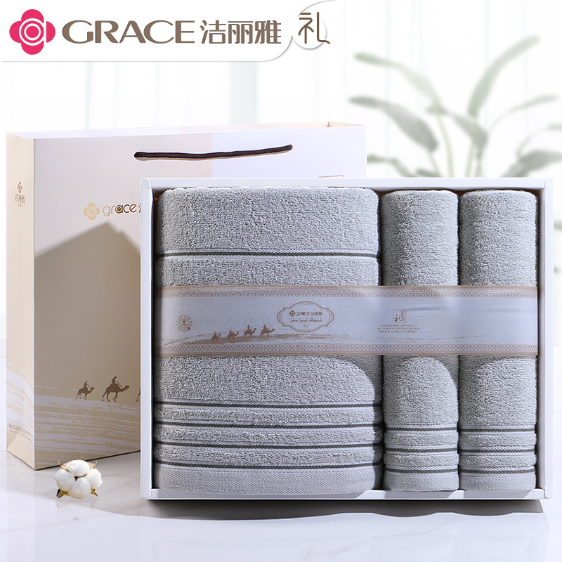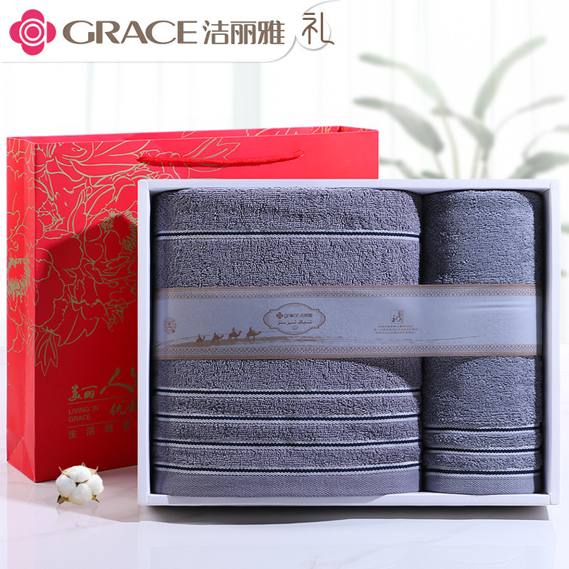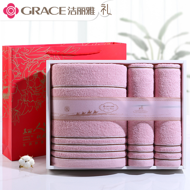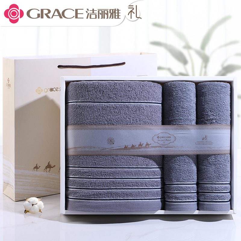 Jielia 목욕 수건 선물 상자 면 도매 수건 목욕 타월 3 피스 세트 면 비즈니스 결혼 선물