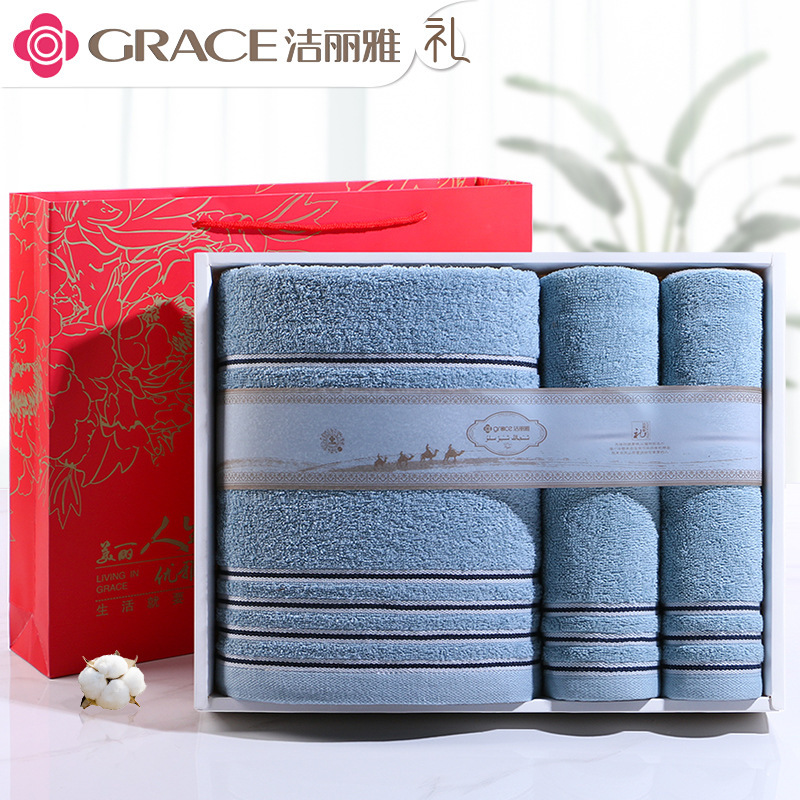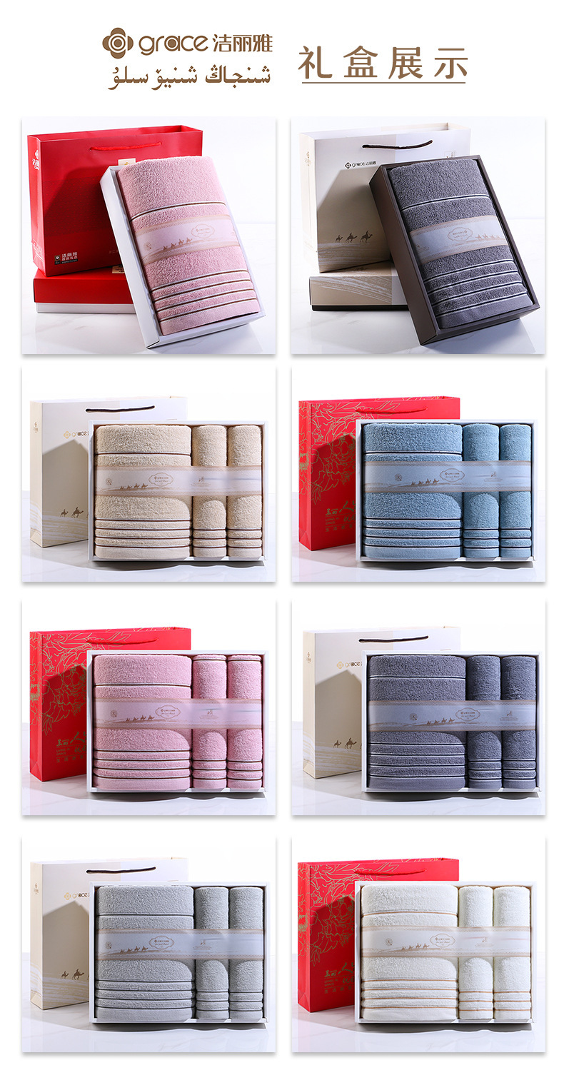 Jielia 목욕 수건 선물 상자 면 도매 수건 목욕 타월 3 피스 세트 면 비즈니스 결혼 선물스토어 가기
